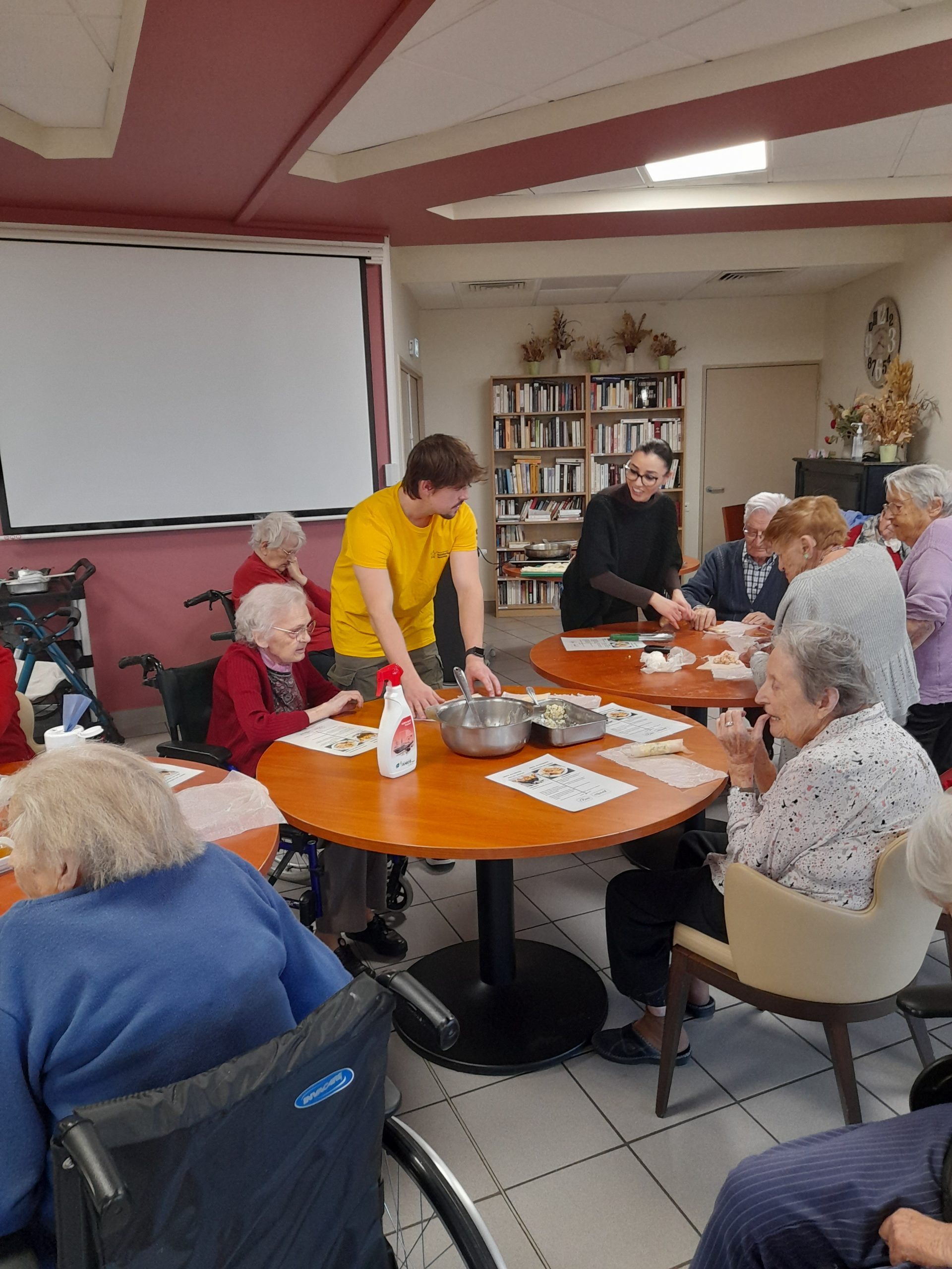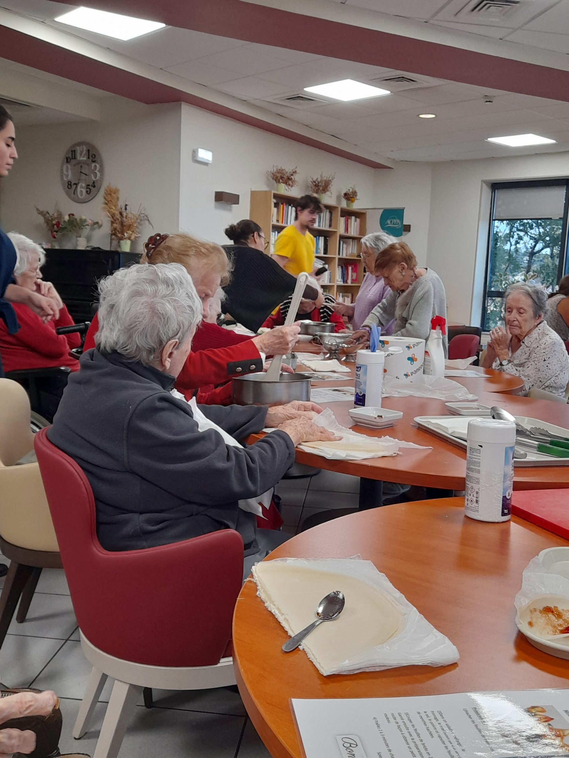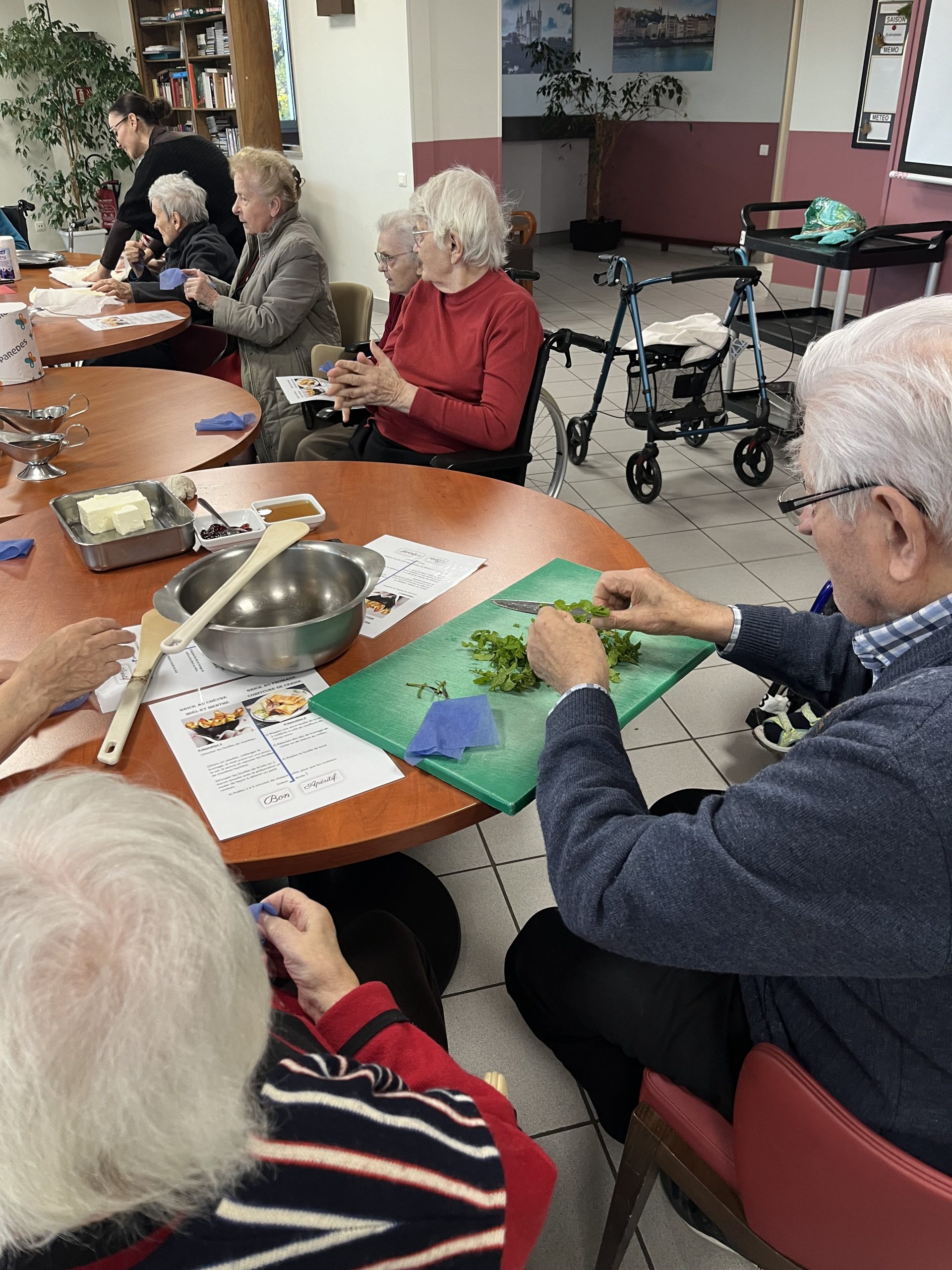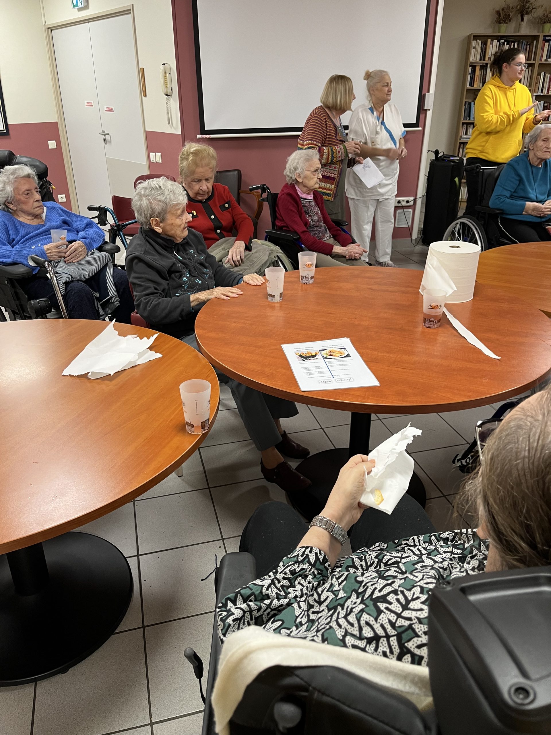 Pour notre pot d’accueil mensuel, nous confectionnons avec les résidents une partie de l’apéritif avec les idées originales et l’aide d’Anissa la responsable hôtelière. Cette fois-ci c’était des bricks de chèvre à la menthe et au miel. Les résidents aiment préparer cet apéritif. Nous nous retrouvons ensuite en fin de journée pour la dégustation avec un verre de kir ou de sangria en musique. Chacun se présente pour apprendre à connaitre les nouveaux résidents arrivés aux Amandines. Ces apéritifs de bienvenue sont très appréciés.