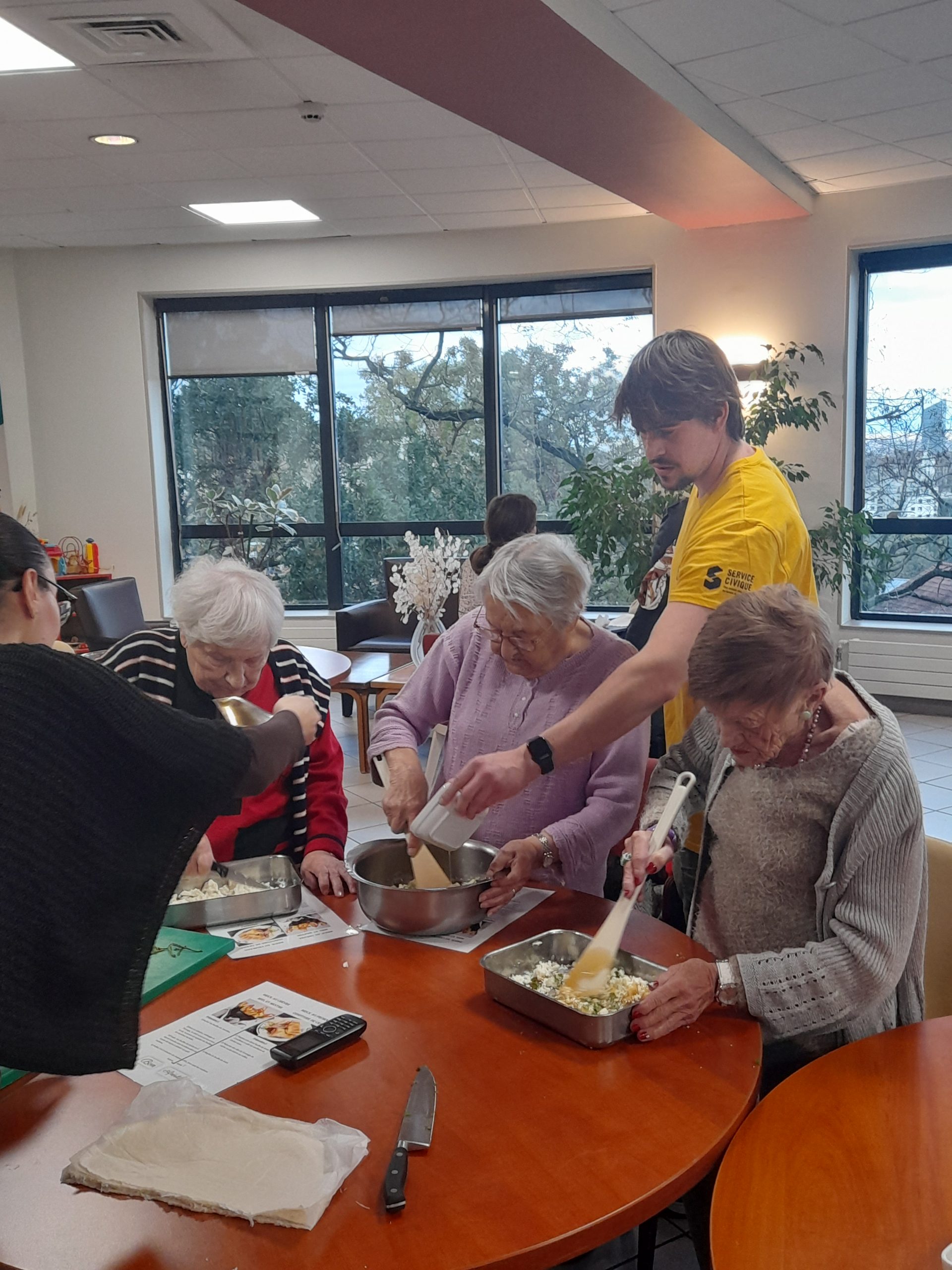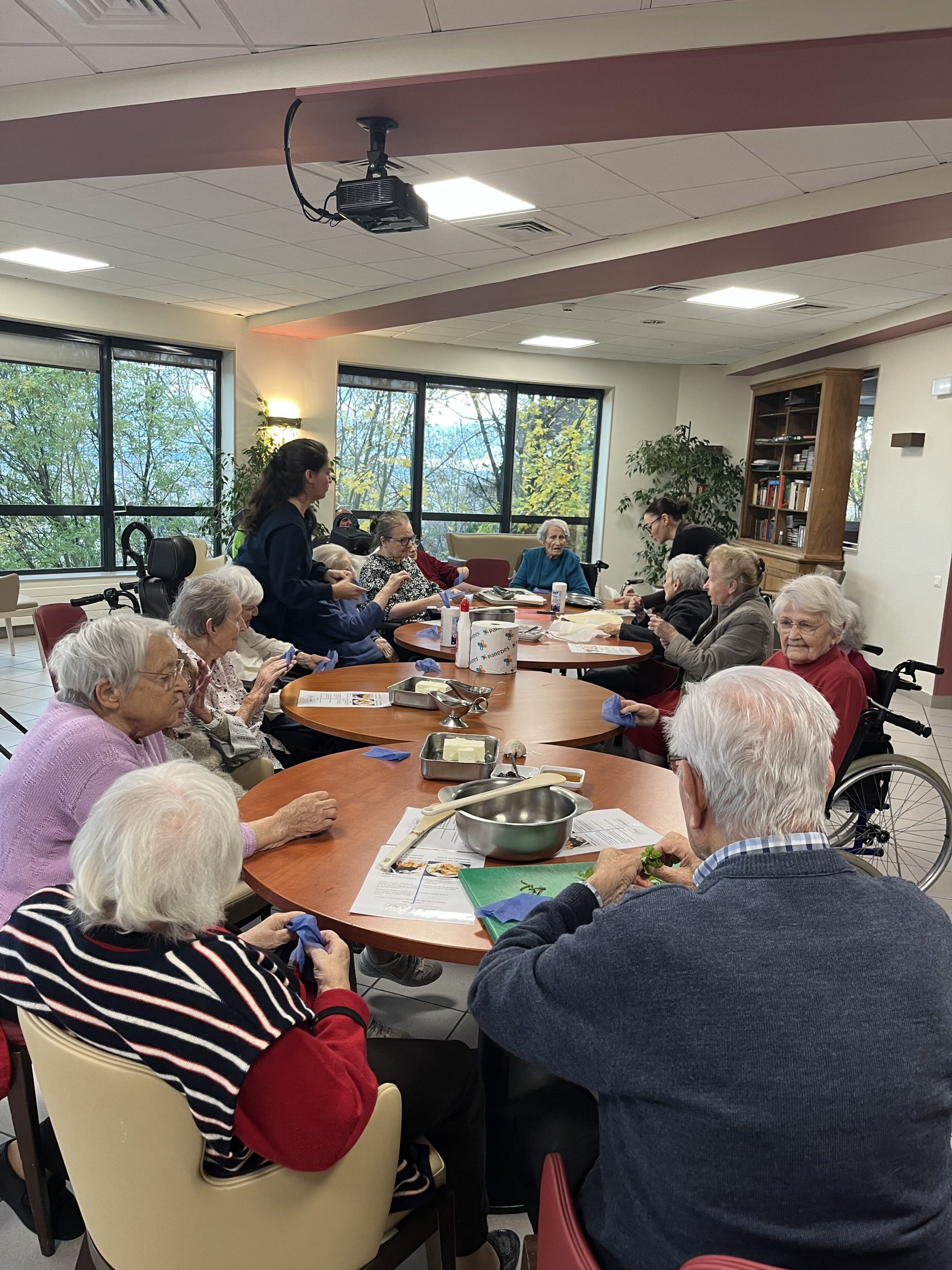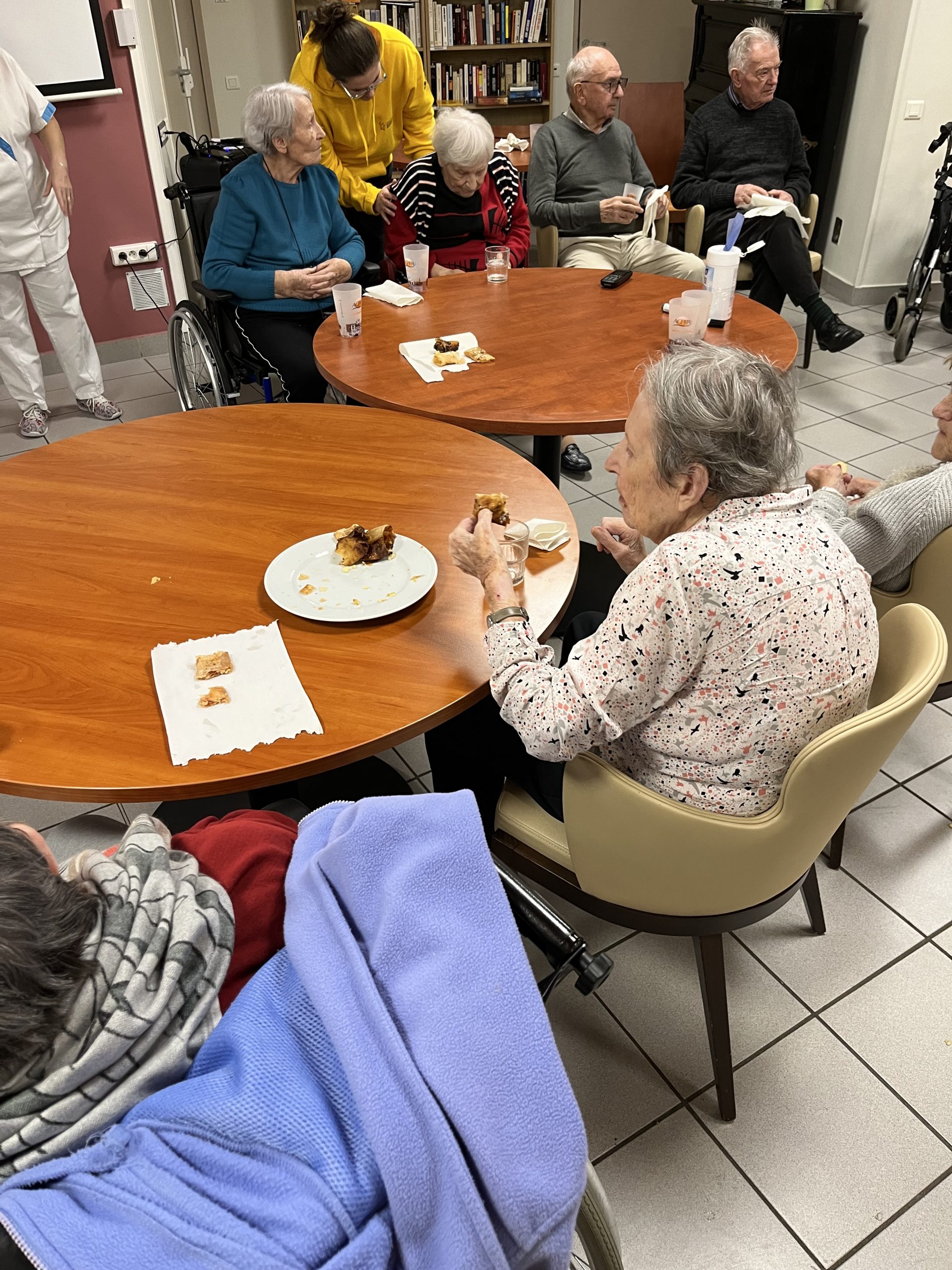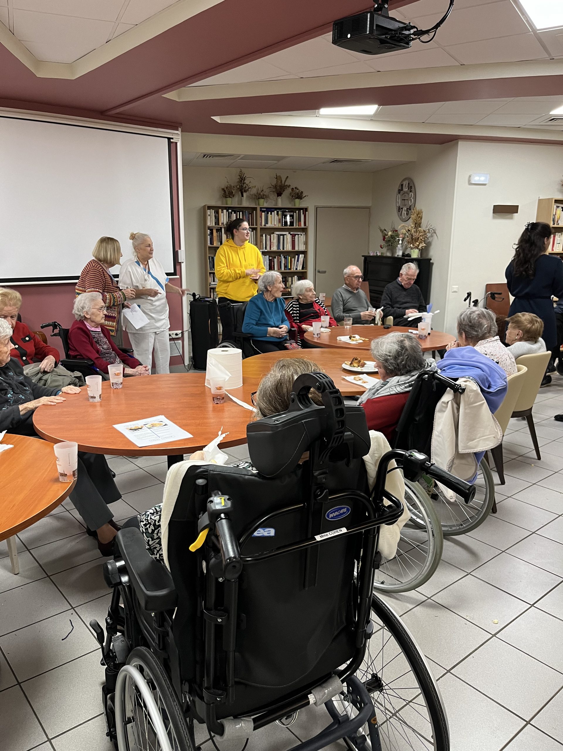 Pour notre pot d’accueil mensuel, nous confectionnons avec les résidents une partie de l’apéritif avec les idées originales et l’aide d’Anissa la responsable hôtelière. Cette fois-ci c’était des bricks de chèvre à la menthe et au miel. Les résidents aiment préparer cet apéritif. Nous nous retrouvons ensuite en fin de journée pour la dégustation avec un verre de kir ou de sangria en musique. Chacun se présente pour apprendre à connaitre les nouveaux résidents arrivés aux Amandines. Ces apéritifs de bienvenue sont très appréciés.