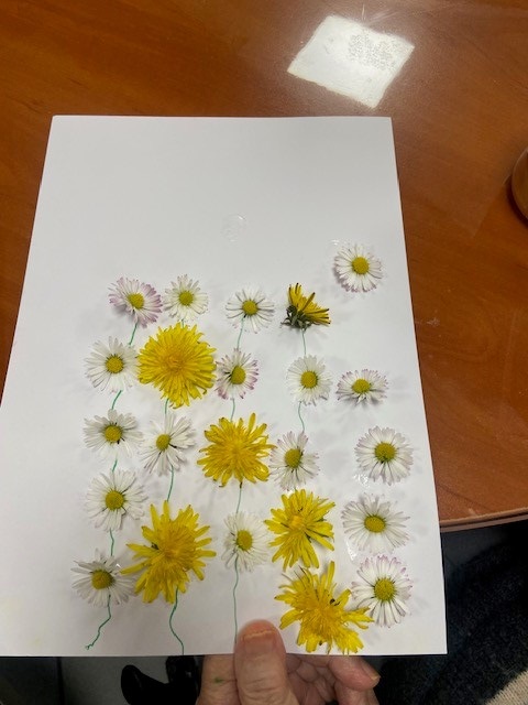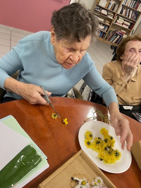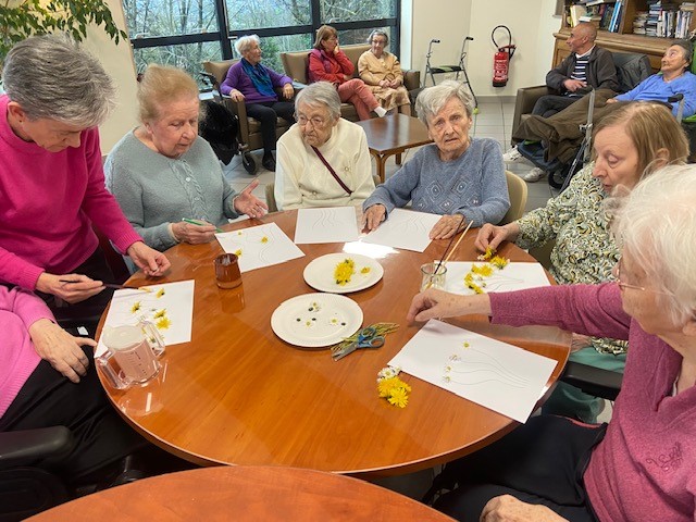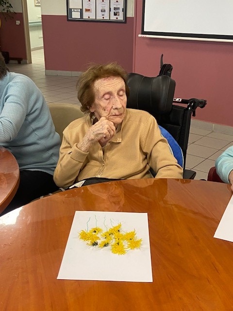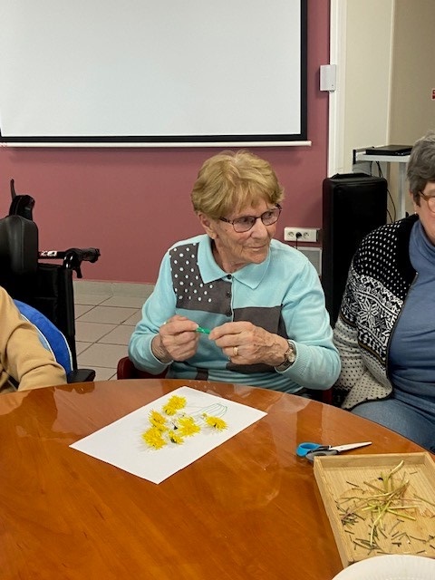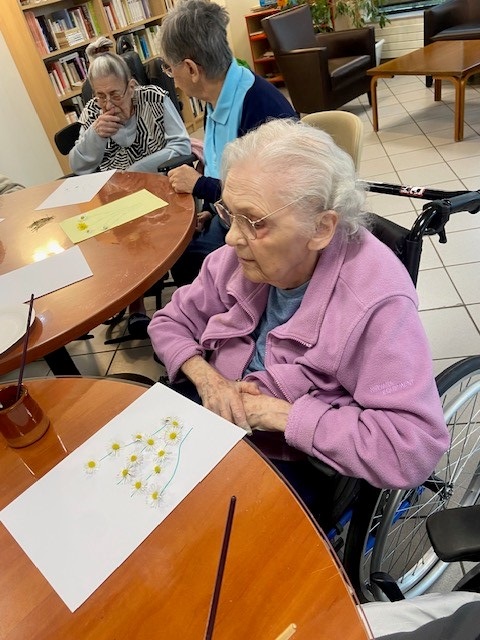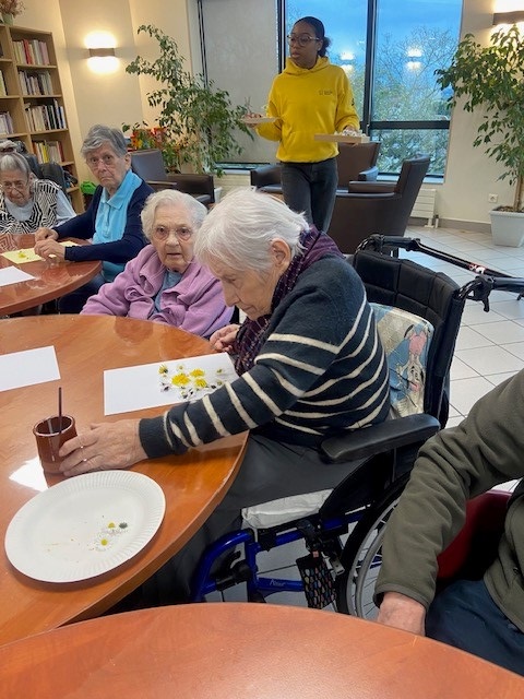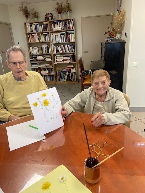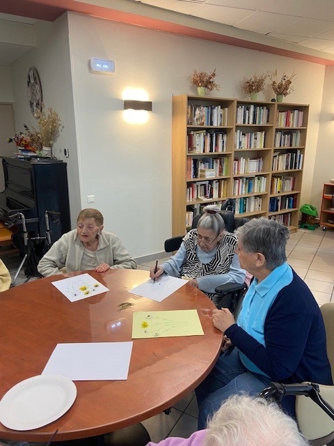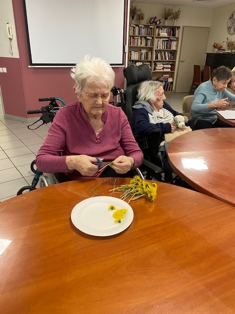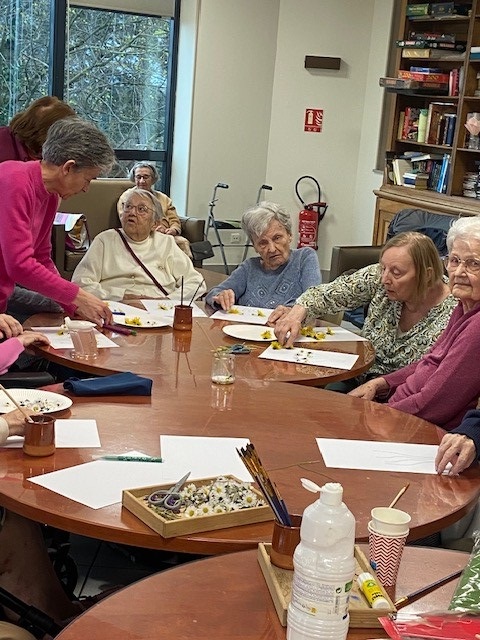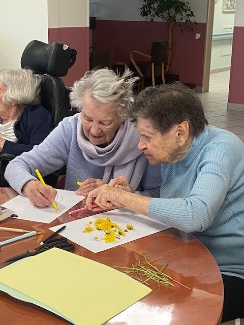 Avec l’arrivée du printemps, l’animatrice a organisé un atelier floral avec les résidents en recueillant des fleurs dans le parc des Amandines.