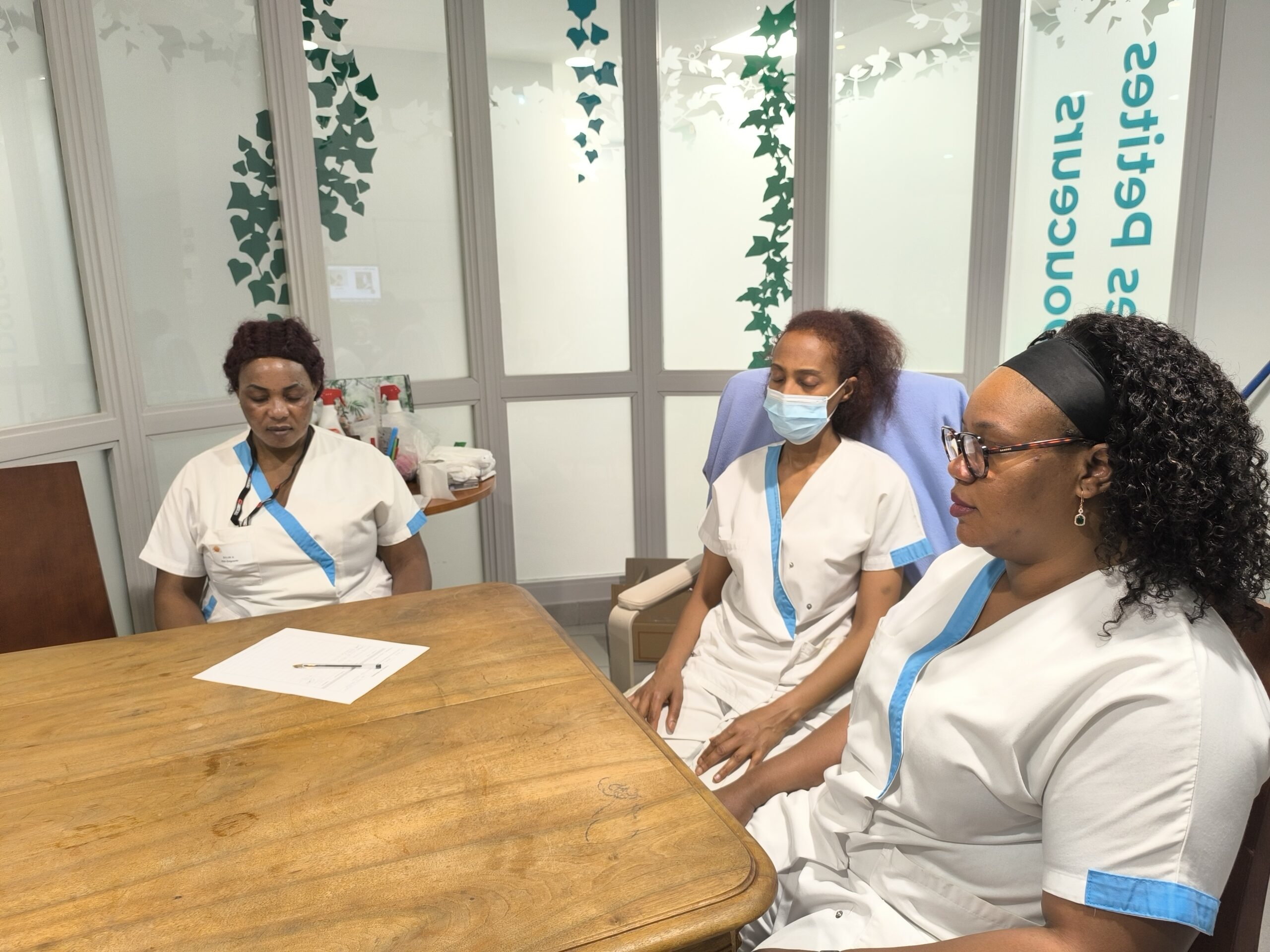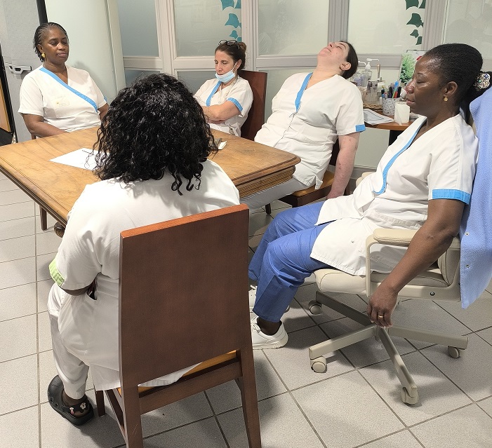 Dans le cadre de la QVCT (Qualité de Vie et Conditions de Travail), Liina et Lenaïg, deux stagiaires Psychologue ont animé plusieurs ateliers de méditation de pleine conscience auprès des professionnels des Amandines. La méditation de pleine conscience consiste à un entrainement de notre attention à être dans l’instant présent, c’est-à-dire dans le moment que l’on vit, dans l’ici et maintenant. Elle améliore notre état général à travers une baisse de notre niveau de stress et améliore notre sommeil. Elle permet d’augmenter sa capacité de concentration, d’écoute et permet de façon plus générale d’être en relation avec ses émotions. Merci à elles pour ces ateliers !