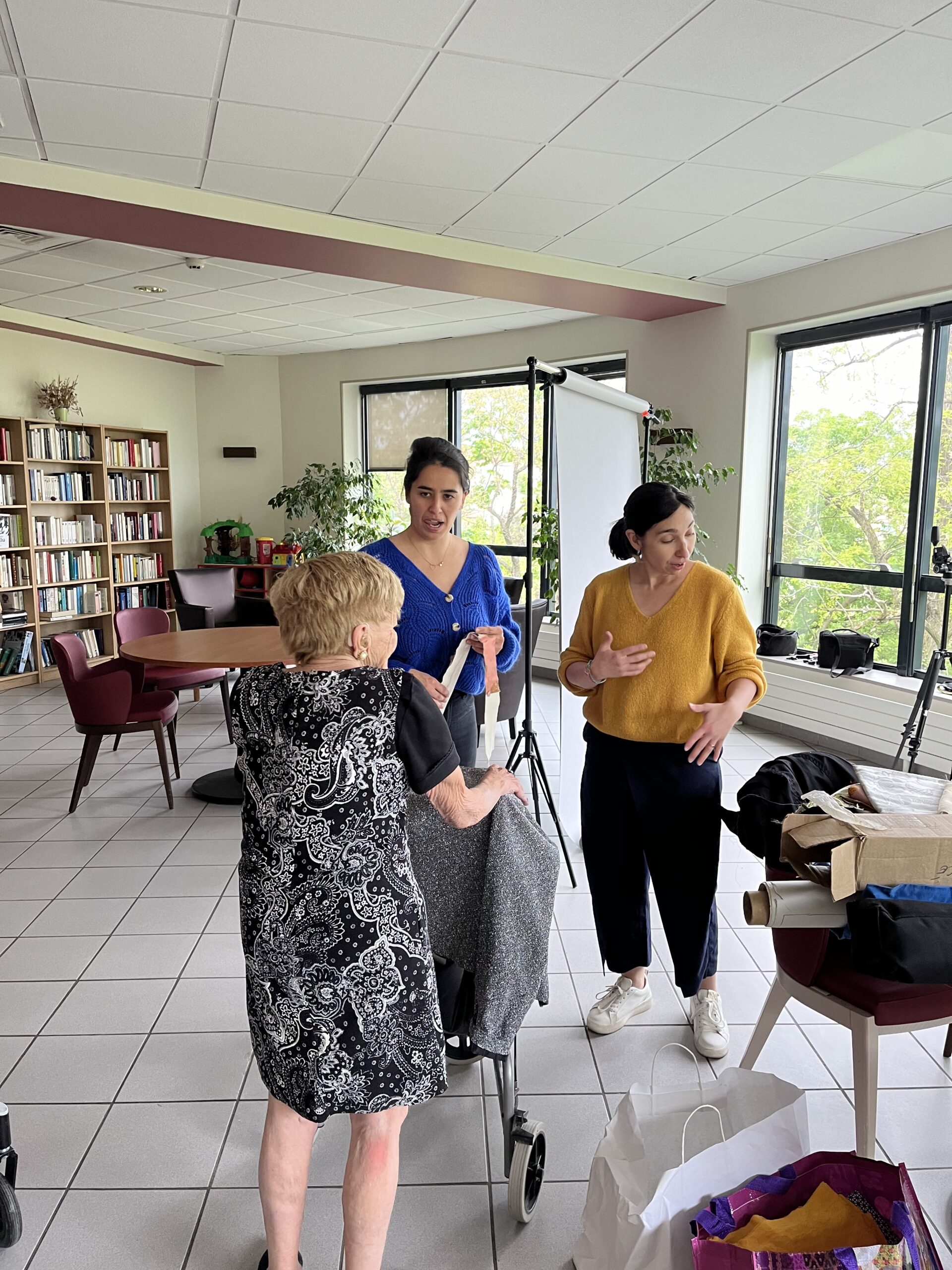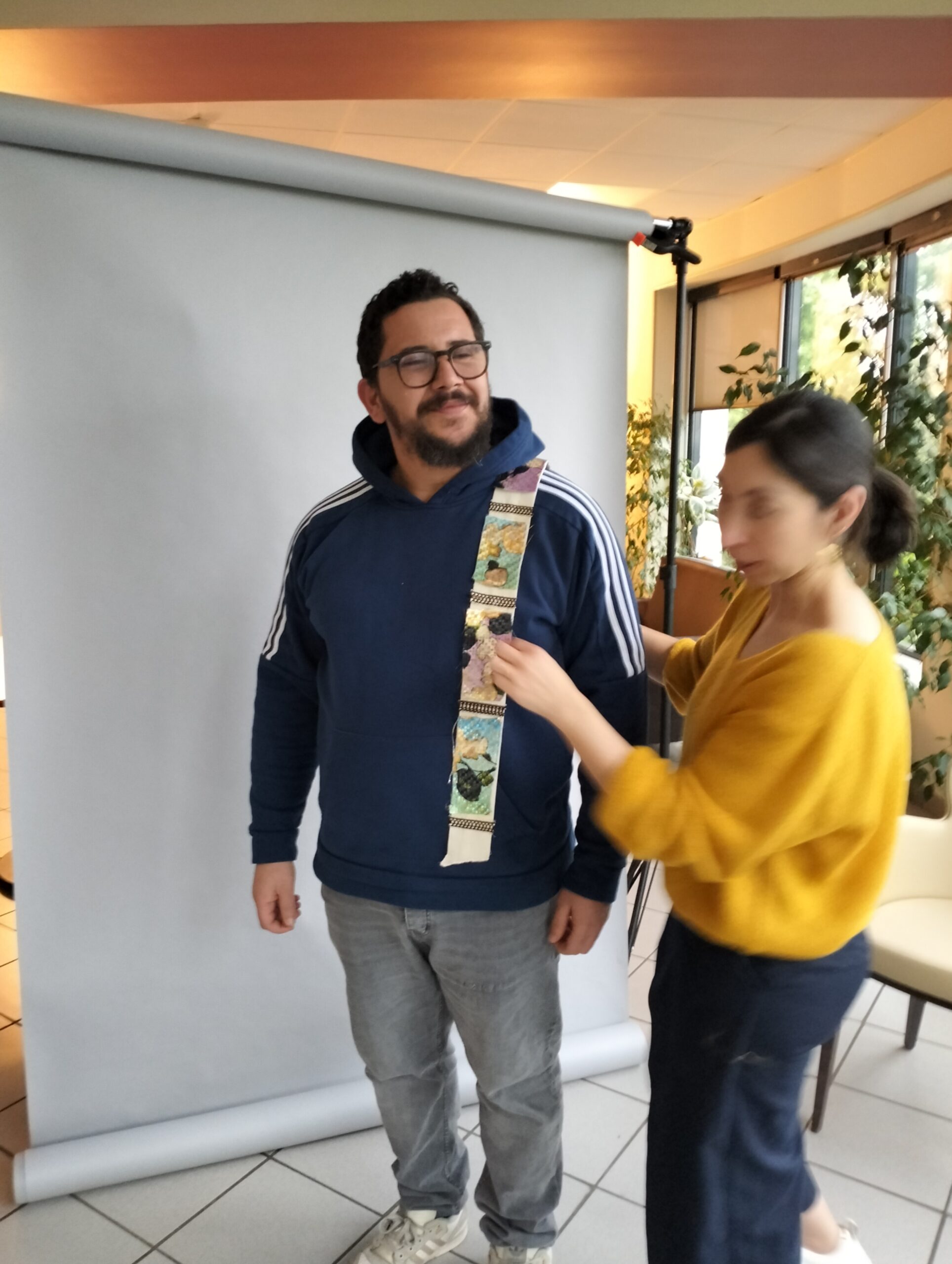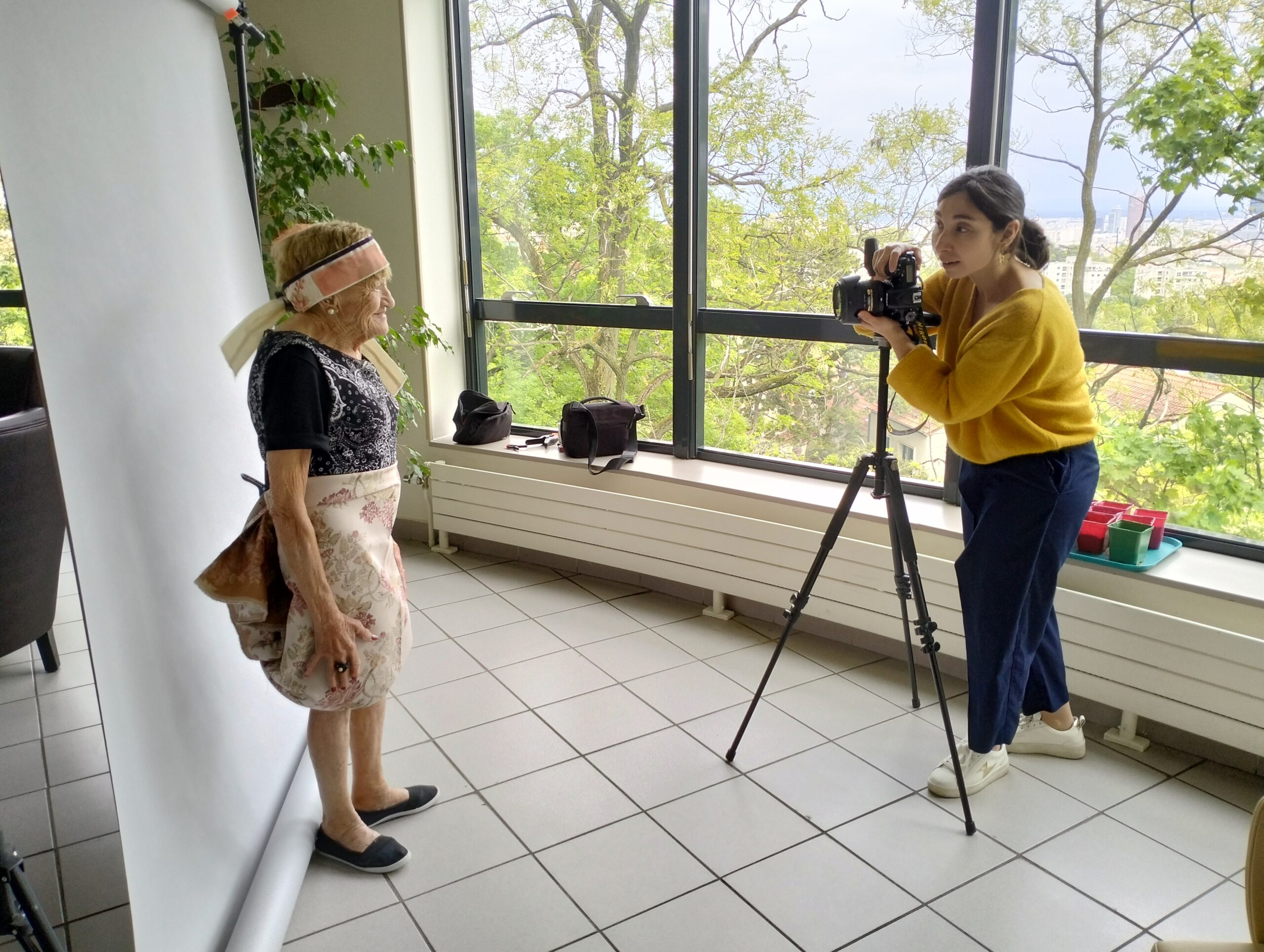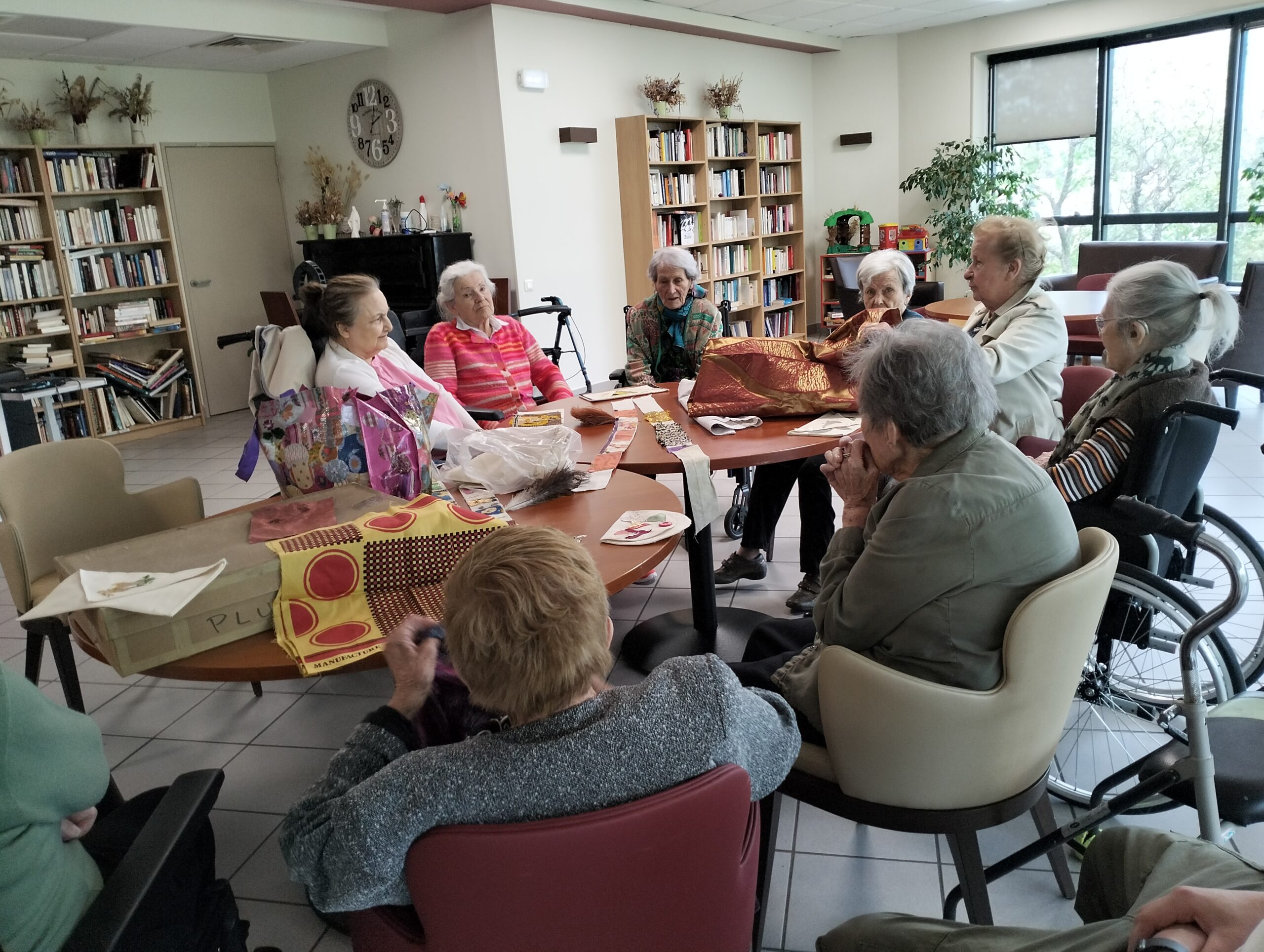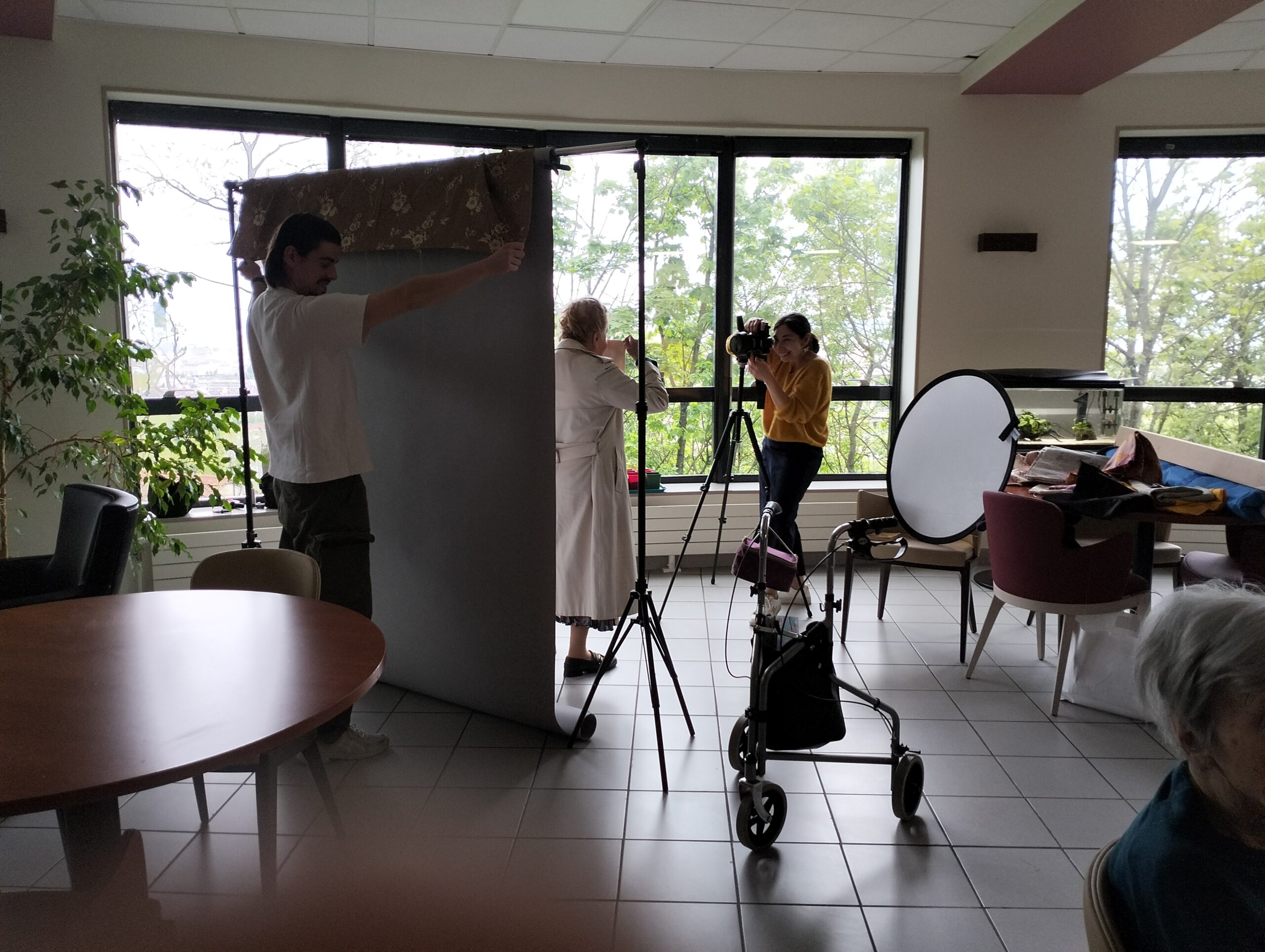 Pour clôturer le projet avec le musée des tissus, une photographe Pauline est venue faire un atelier photos avec les résidents comme modèles. Tout le monde s’est prêté au jeu en utilisant des accessoires confectionnés par nos résidents. Les photographies prises seront utilisées pour l’exposition finale en juin.