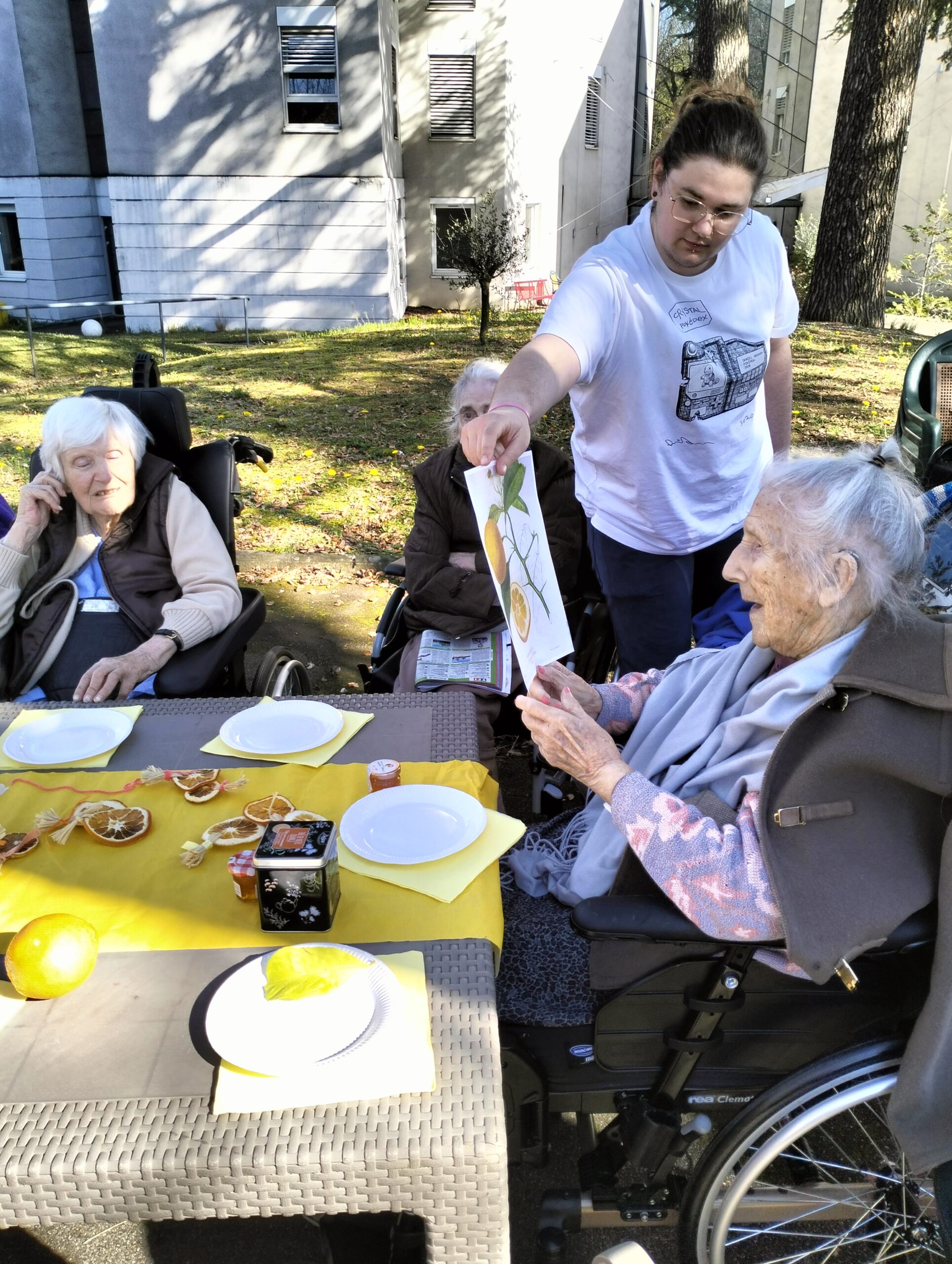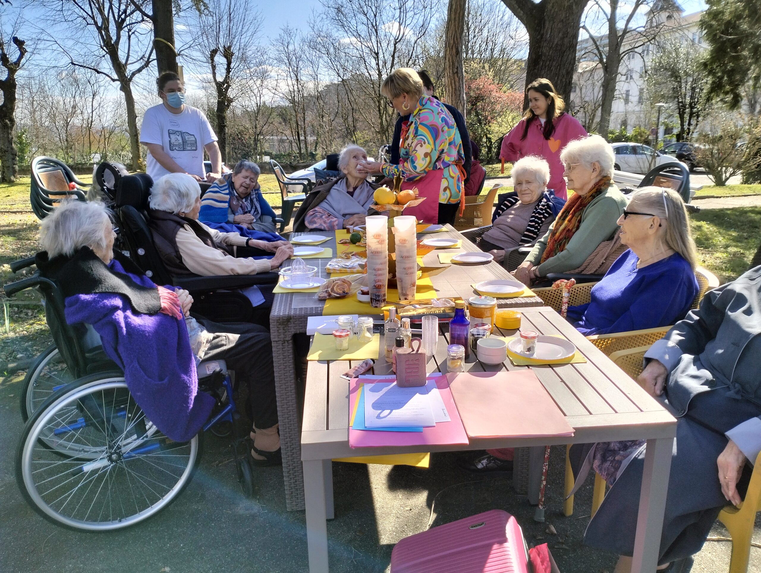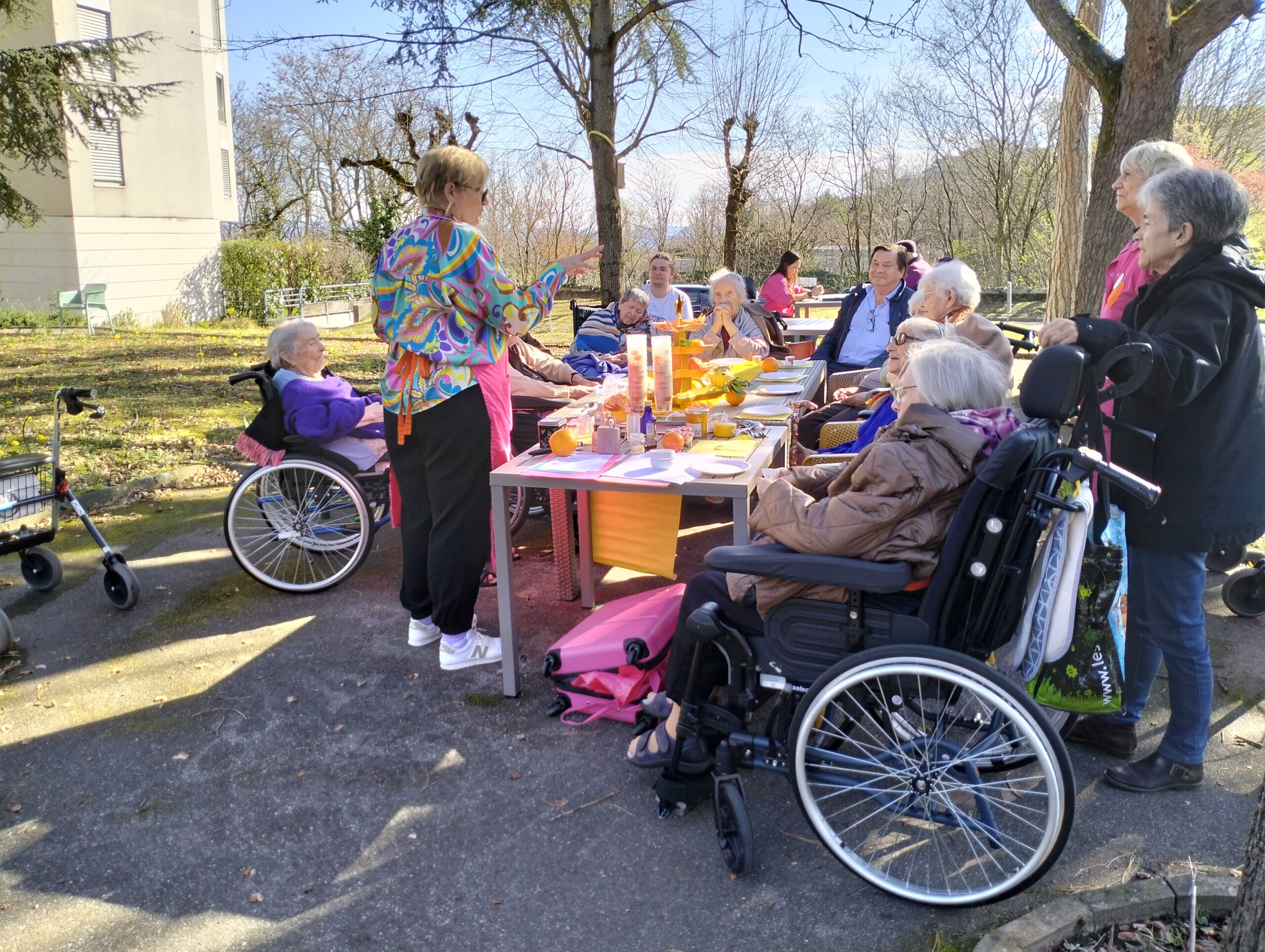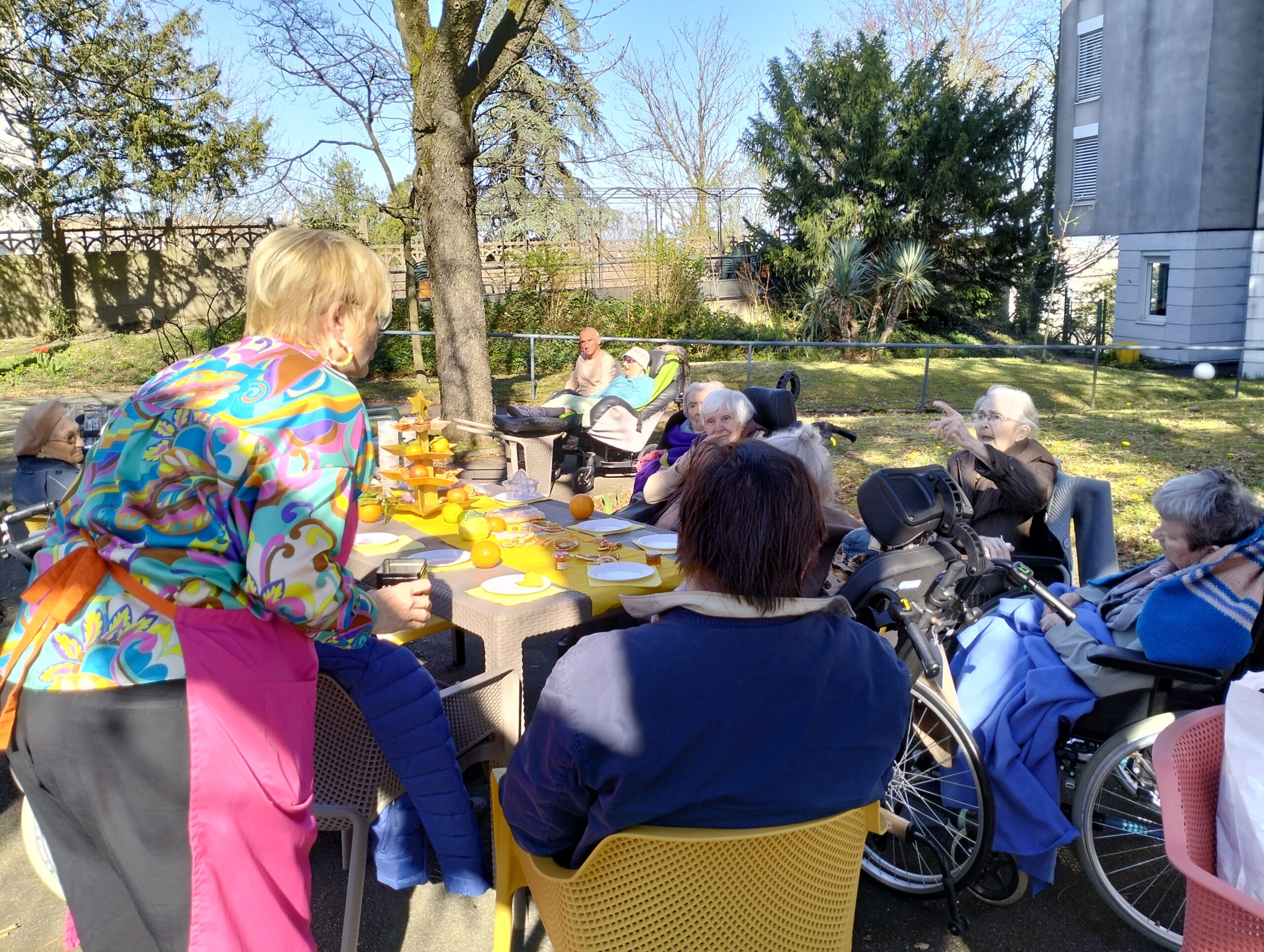 Une bénévole des Blouses Roses a fait un atelier sur les cinq sens en lien avec les agrumes. Ce moment a permis aux résidents de parler de leurs souvenirs, de déguster de bons agrumes et d’apprendre de nouvelles choses. Ils sont repartis avec une rondelle d’orange séchée pour embaumer leurs vêtements d’une odeur agréable et d’un bracelet en tissus avec de la fleur d’oranger pour apprécier cette senteur. Cet après-midi a été un moment agréable de découverte et de partage.