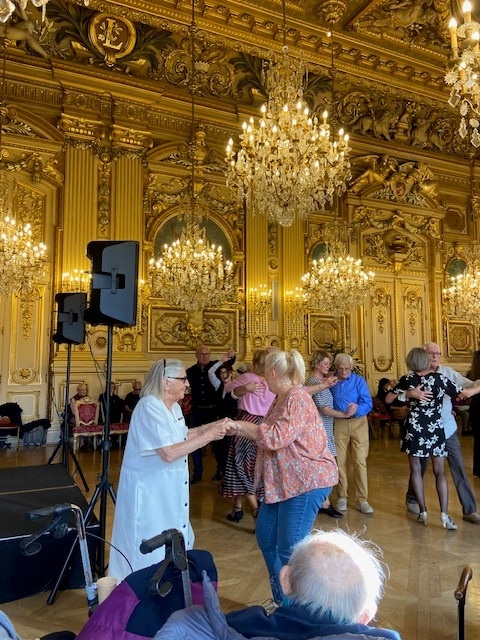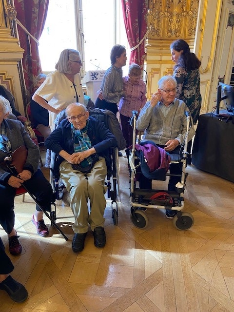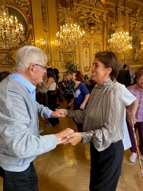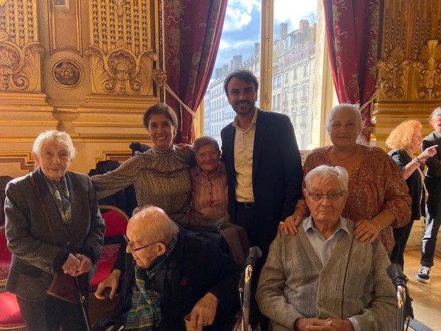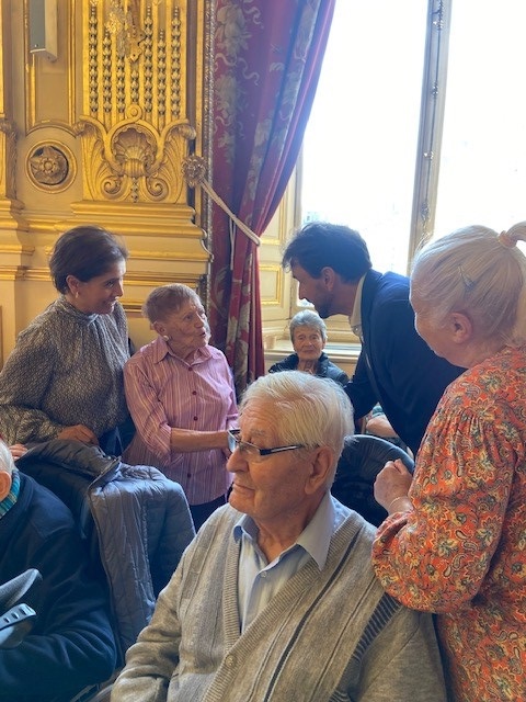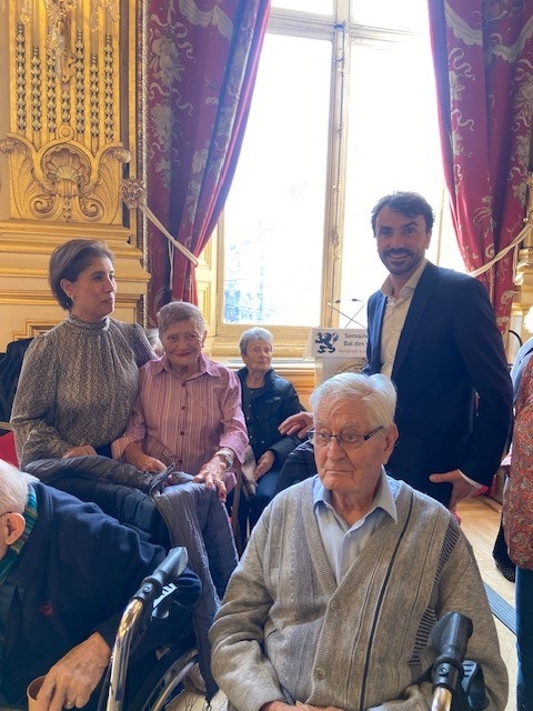 Dans le cadre de la Semaine Bleue, le vendredi 4 octobre, un groupe de résidents des Amandines a participé au bal des séniors, un après-midi musical et dansant dans les salons de l’Hôtel de ville. Les résidents ont adoré, ils ont pu discuter et prendre des photos avec M. Grégory Doucet Maire de Lyon.