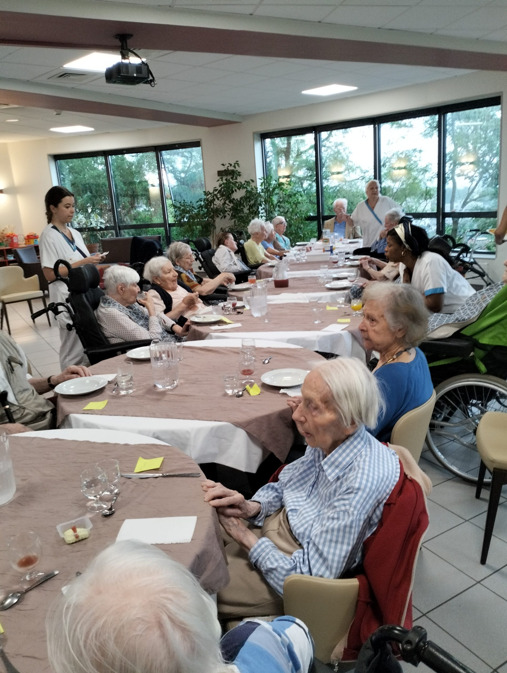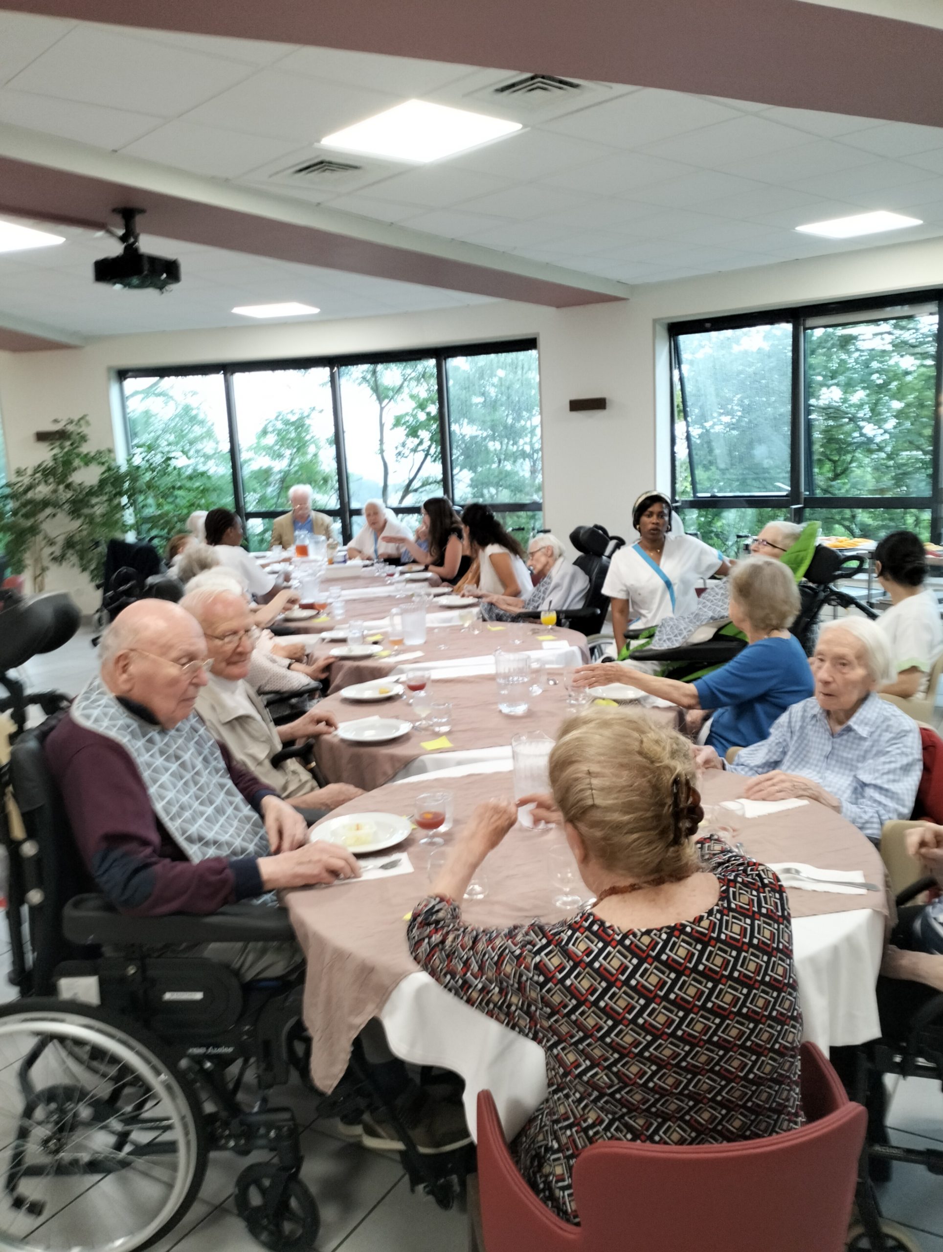 Les résidents du 2ème étage ont profité d’un moment convivial lors du barbecue du jeudi 22 juin. La météo n’étant pas bonne, la tablée a été installée à l’intérieur. Les résidents et les salariés ont passé un bon moment avec un bon repas préparé par nos cuisiniers : melons et charcuterie, chipolatas merguez accompagnés de frites et en dessert des glaces. Merci aux cuisiniers et aux équipes pour leur implication.
