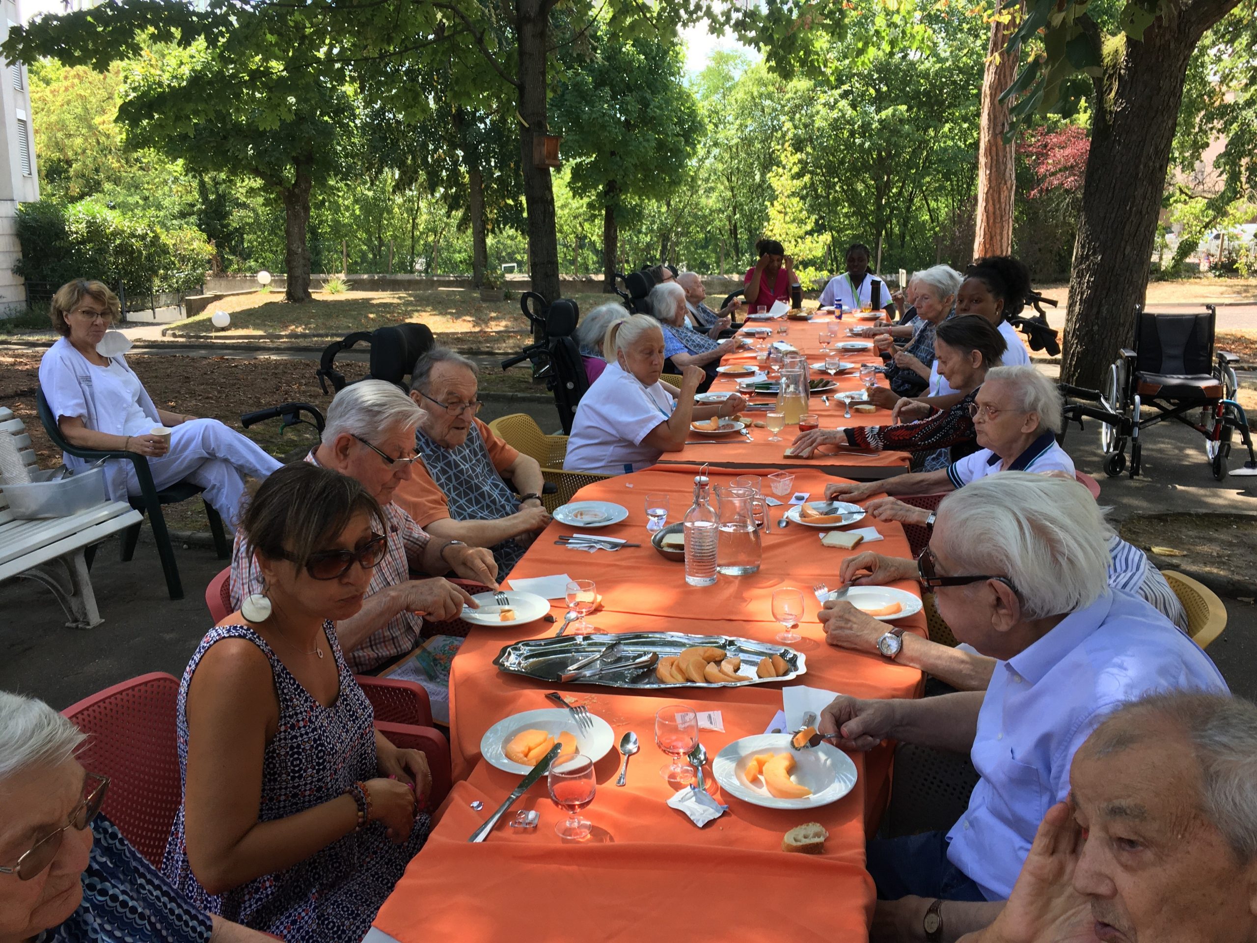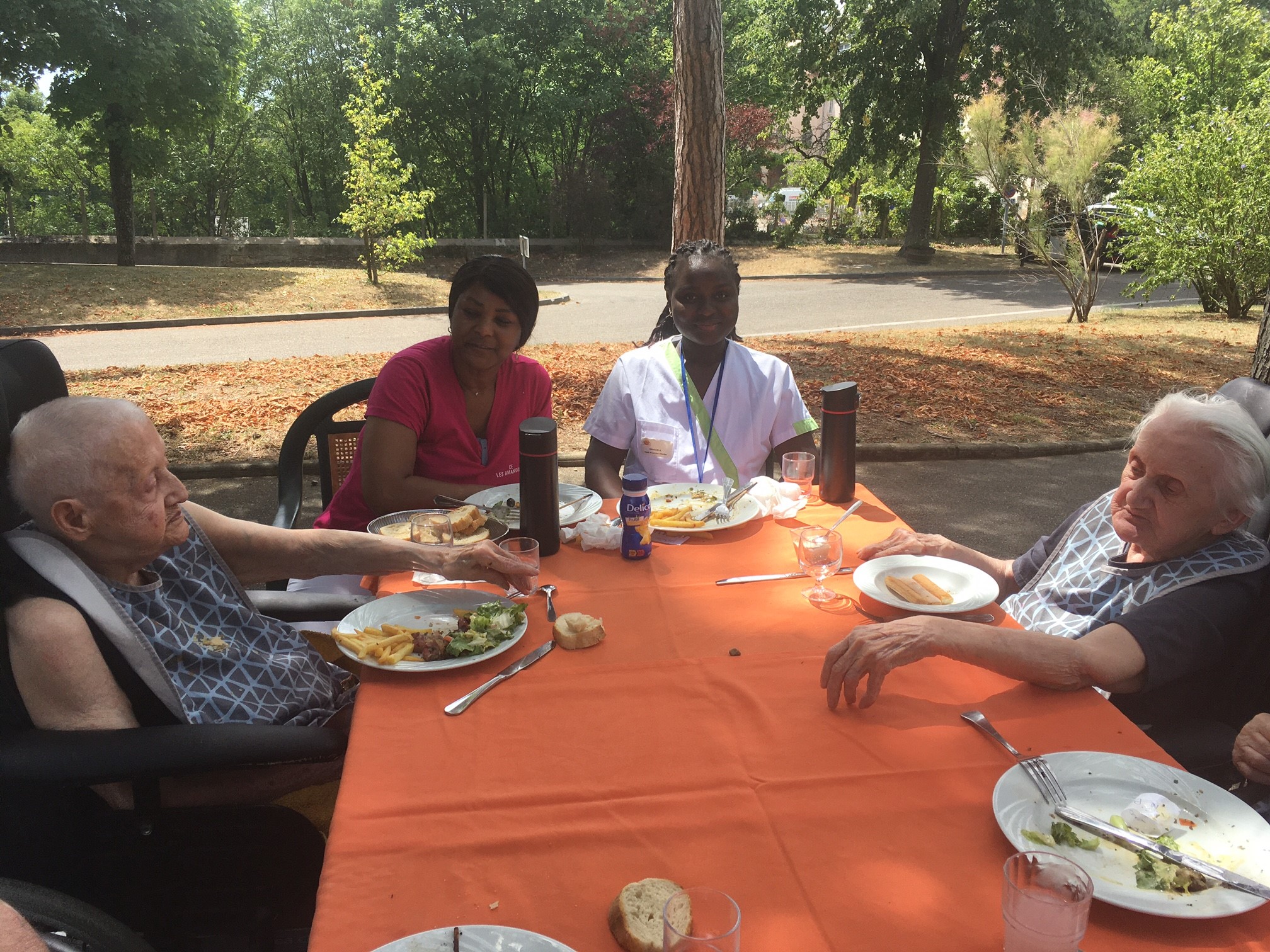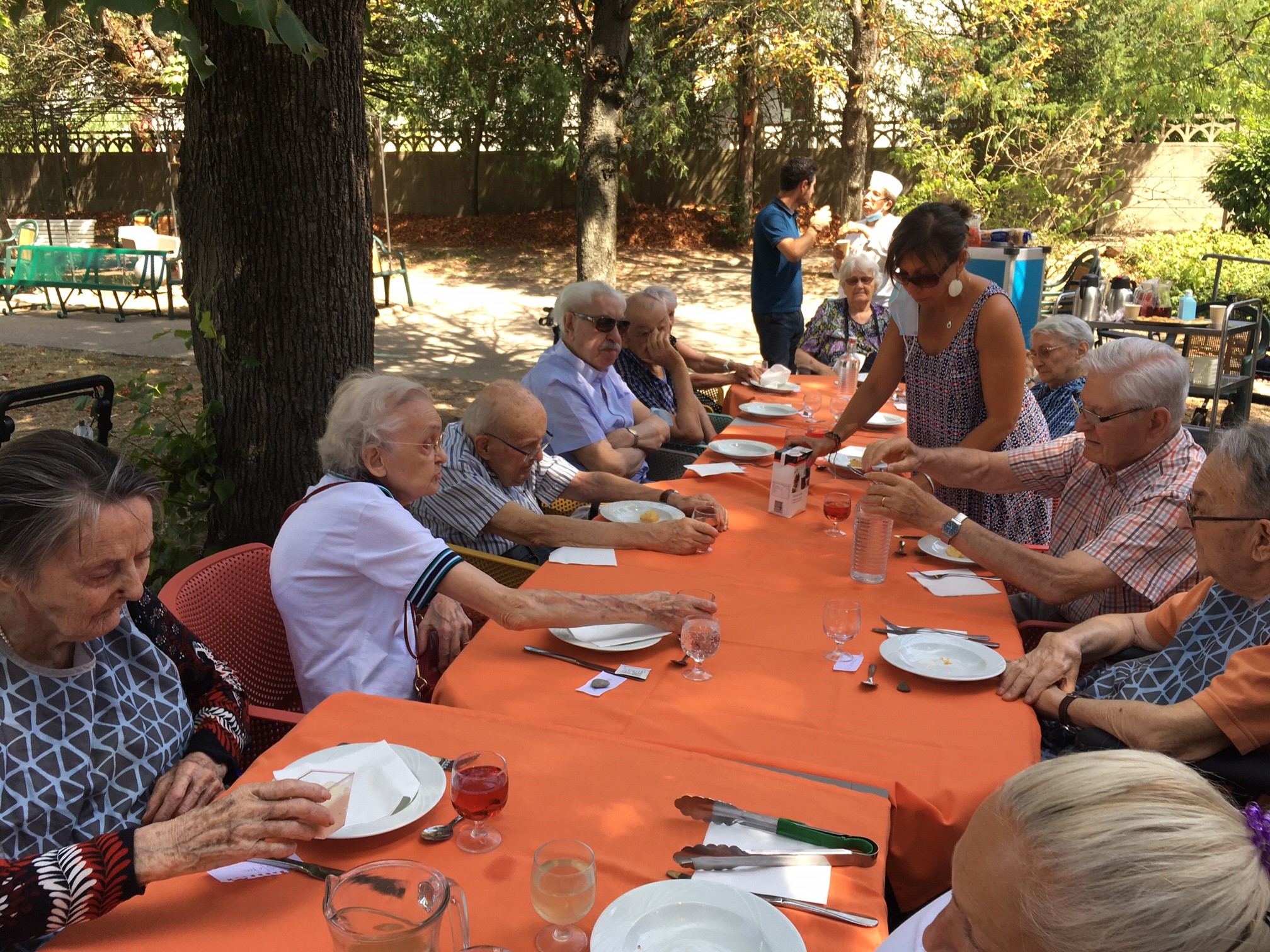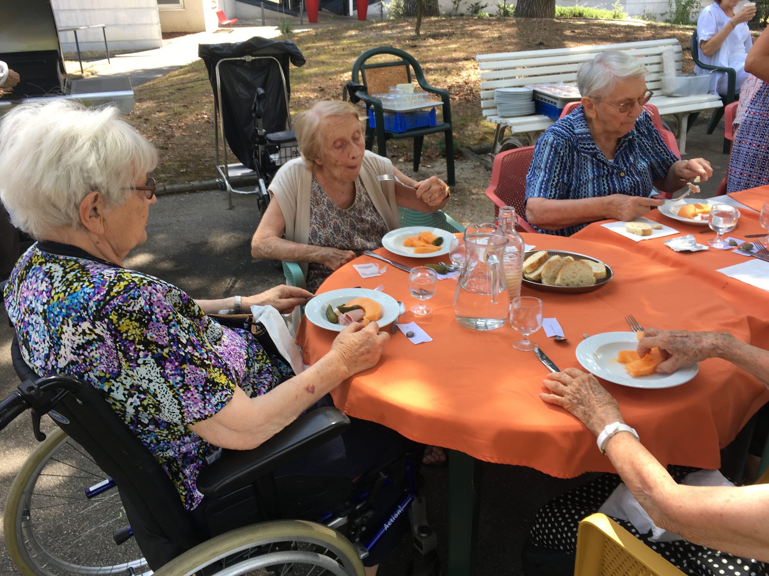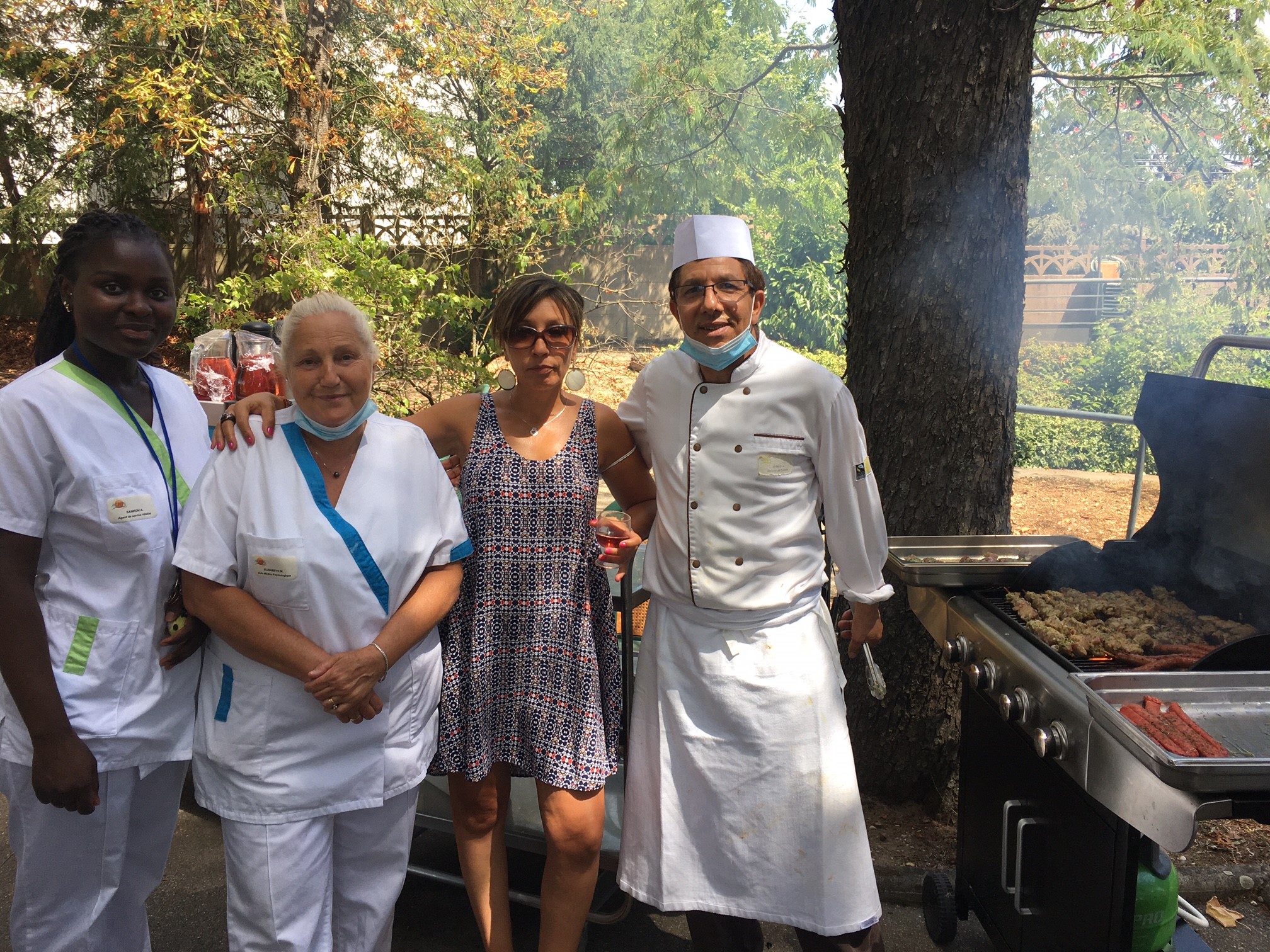 Pour finir notre saison des barbecues, nous nous sommes retrouvés le jeudi 28 juillet pour le barbecue avec les résidents du 4ème étage. Avec un peu de chance, la température était descendue et nous avons pu profiter d’un bon moment convivial. Le repas était copieux mais très bon, l’équipe de cuisine nous a encore bien régalés.