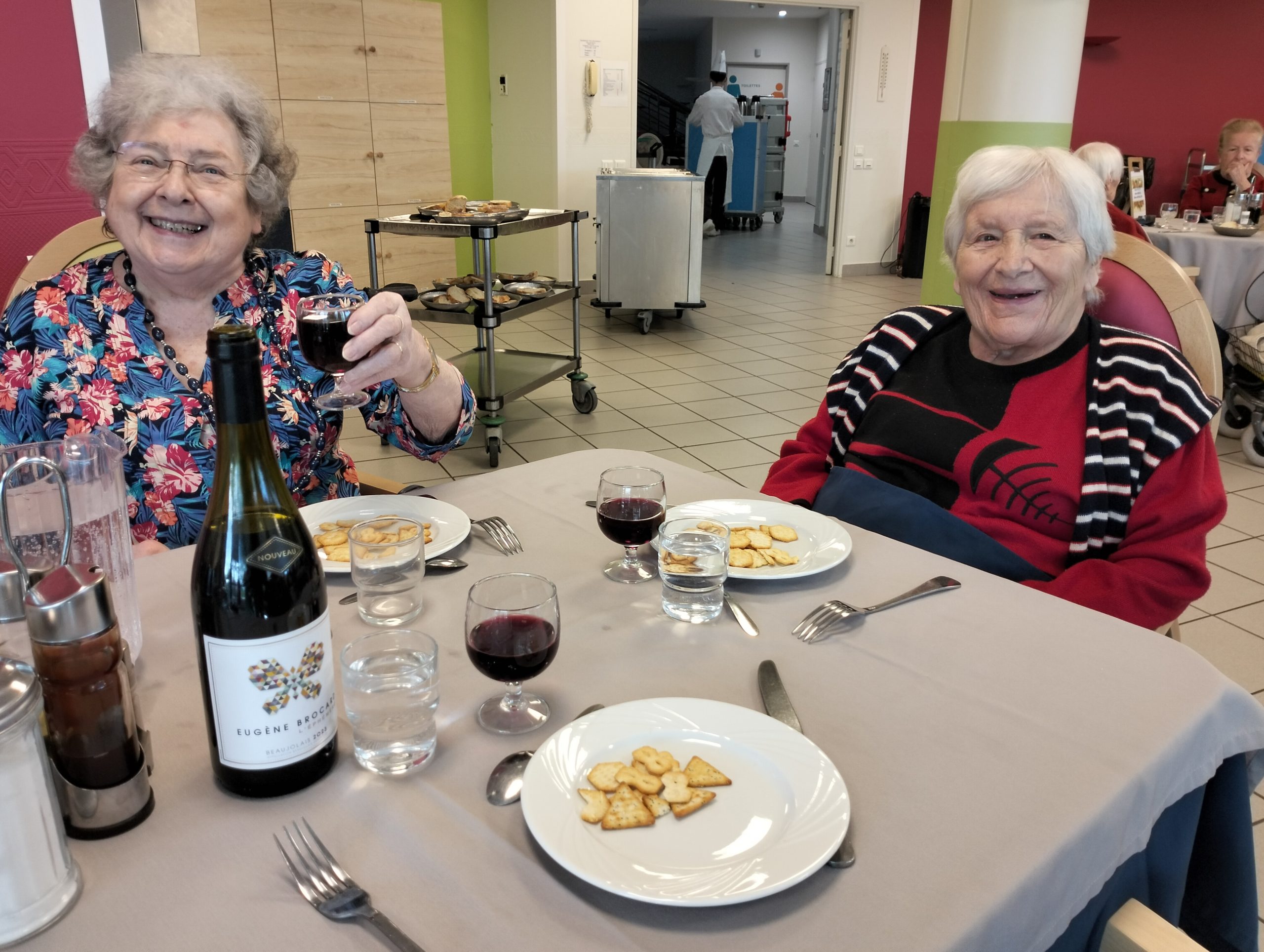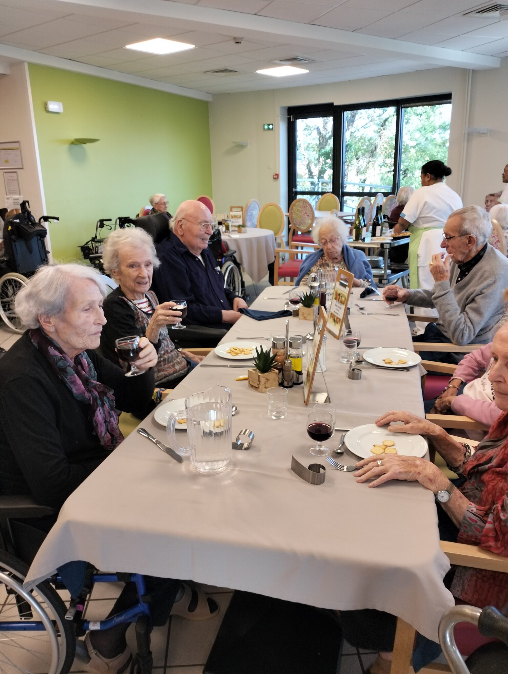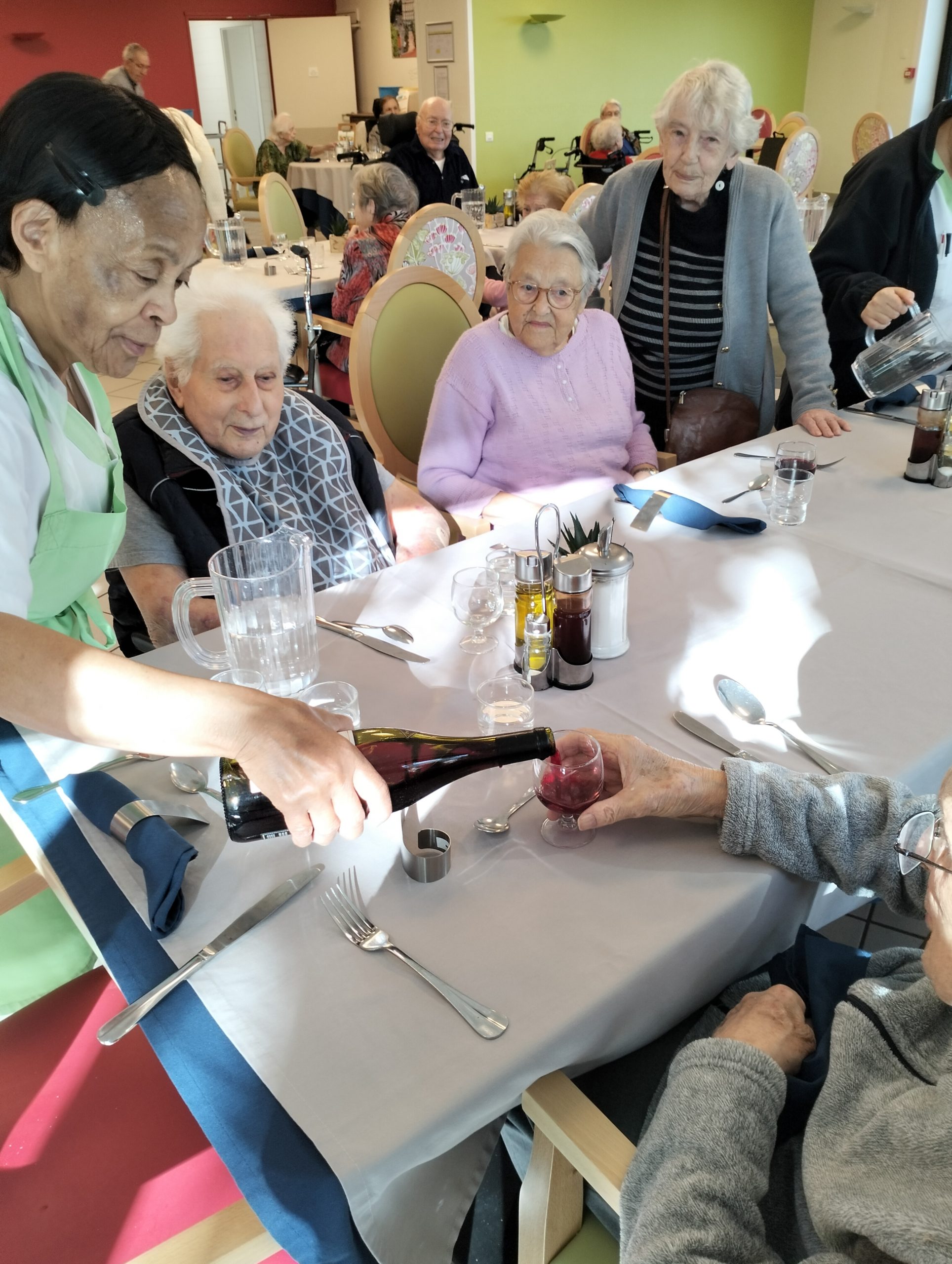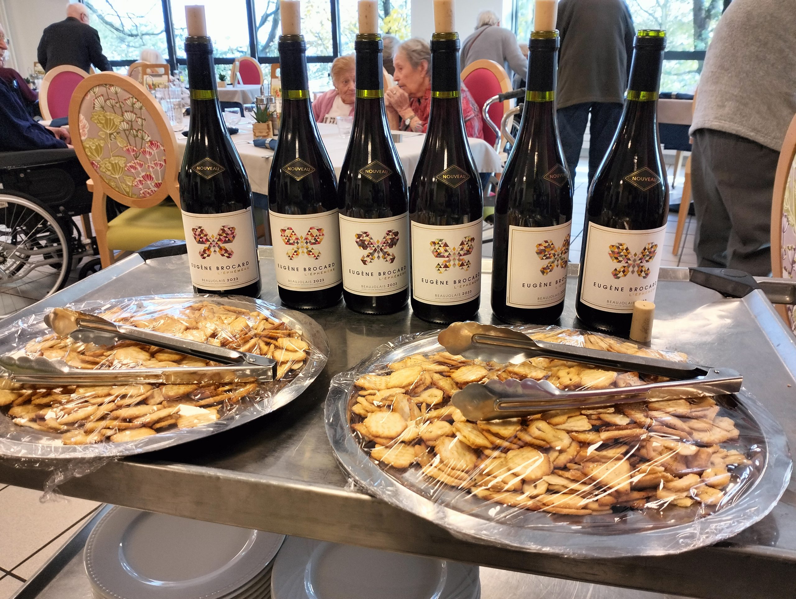 Aux Amandines, le midi même, était servi un apéritif avec la dégustation du beaujolais nouveau. Les résidents pour la plupart de la région lyonnaise ont apprécié cette attention qui leur rappelle des souvenirs lors des fêtes du beaujolais nouveau.