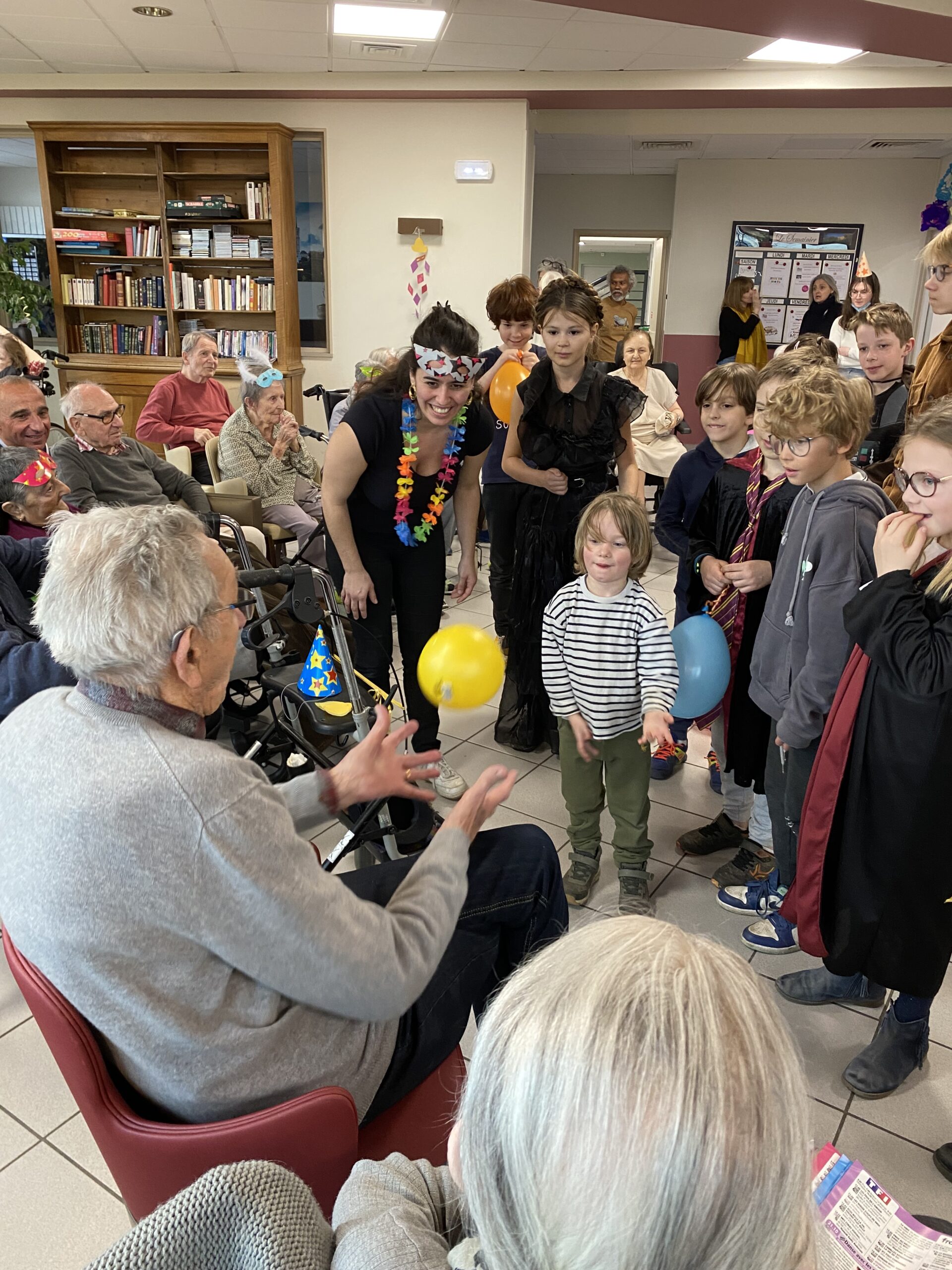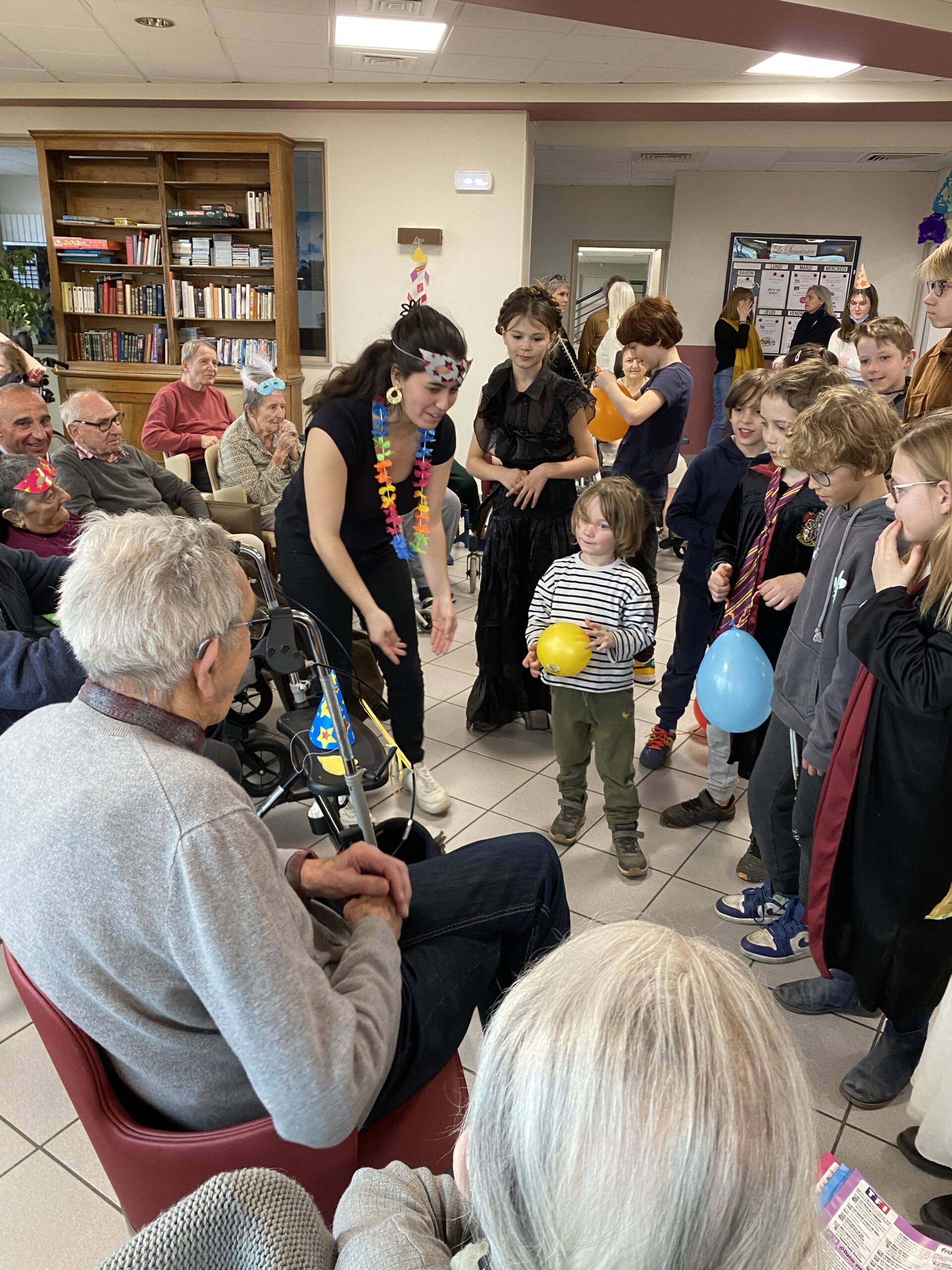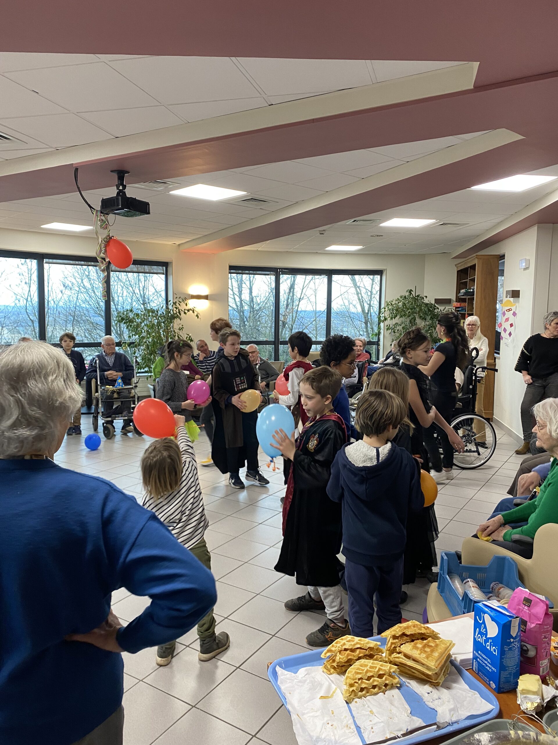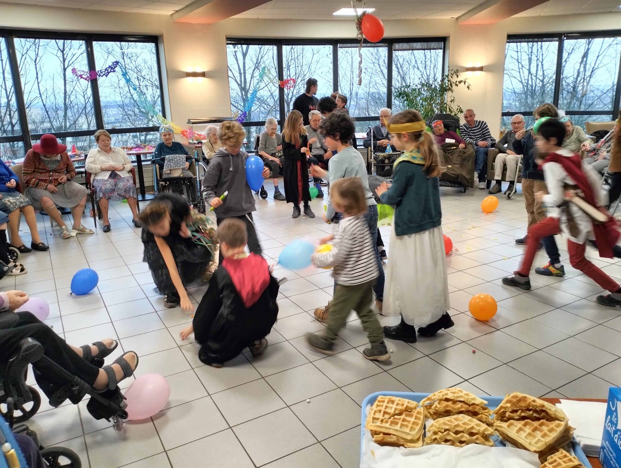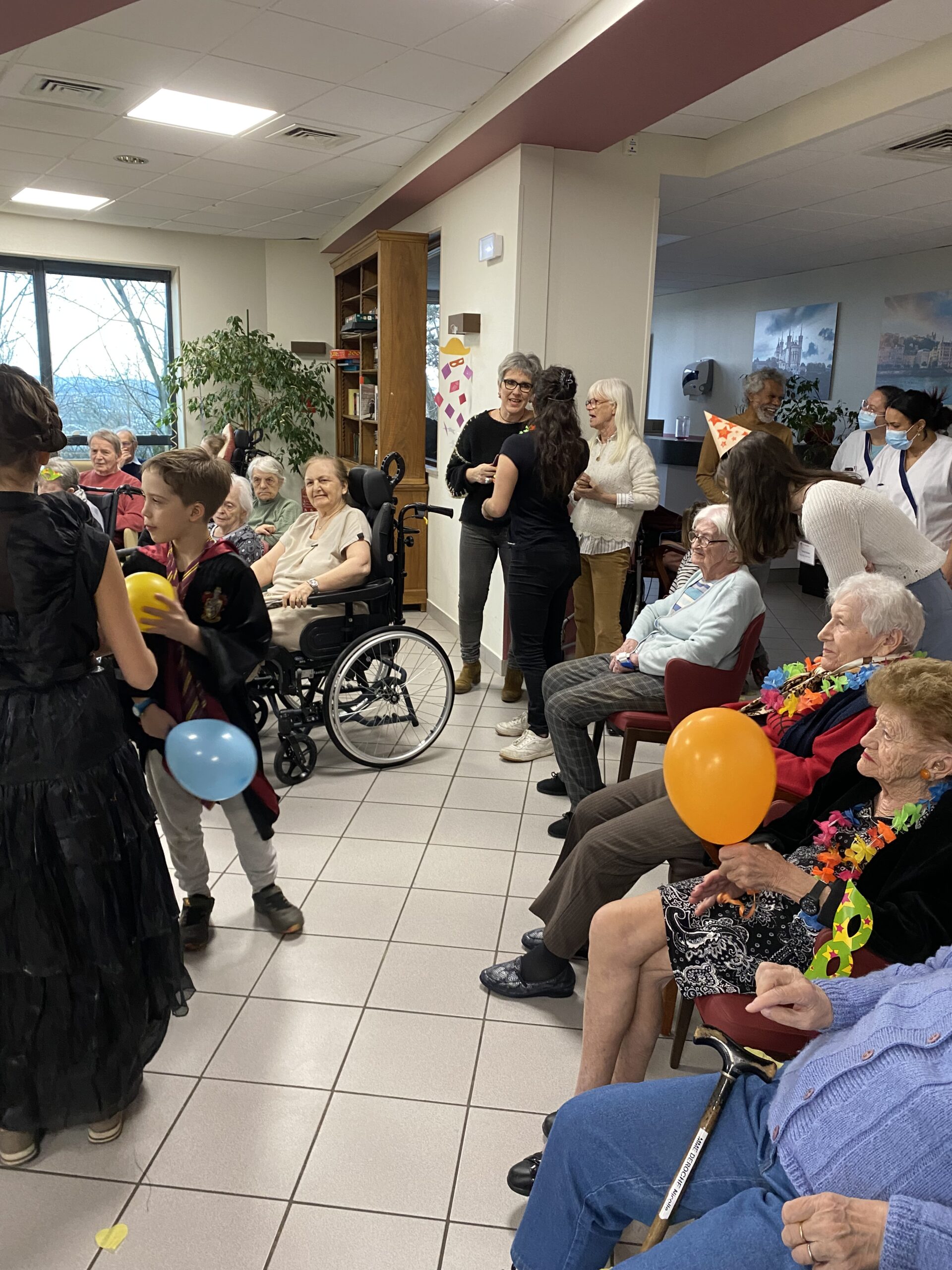 Pour fêter le carnaval, Les Amandines ont invité les enfants de l’école LMO Les Montessoriens de l’Ouest pour un après-midi festif. Au programme, jeux de ballons avec les résidents, partage d’un goûter avec des gaufres préparées par l’équipe des Amandines et défilé des enfants avec leurs costumes. Cet après-midi très convivial et dynamique a égayé la journée des résidents qui ont passé un moment agréable.