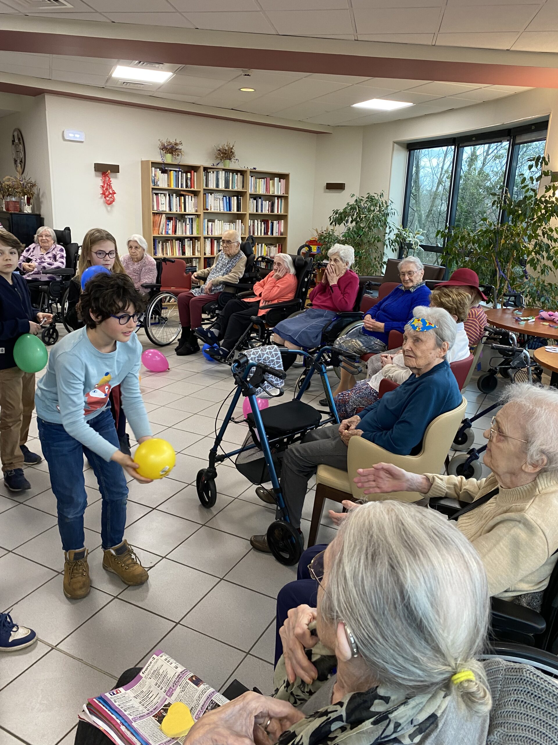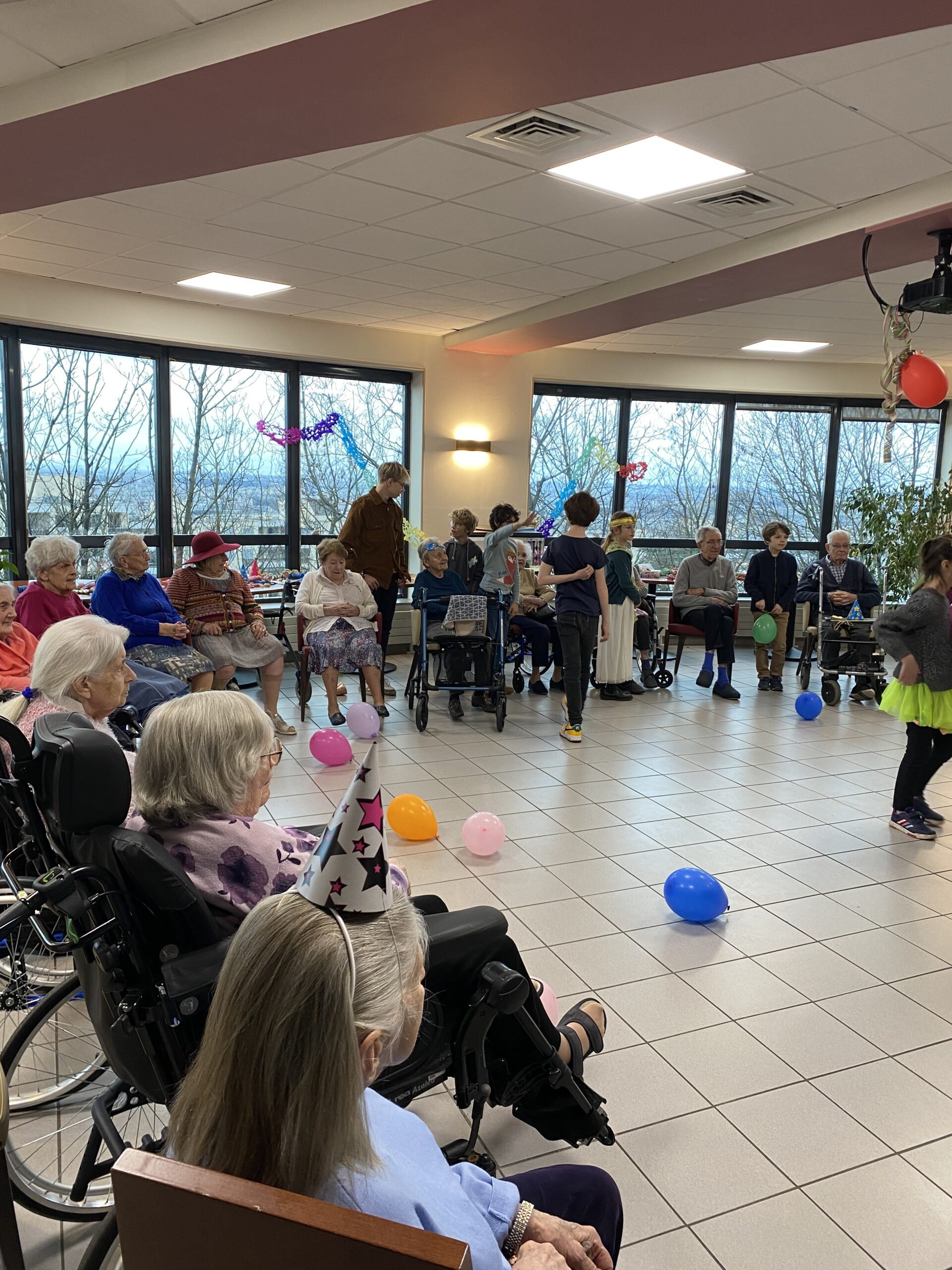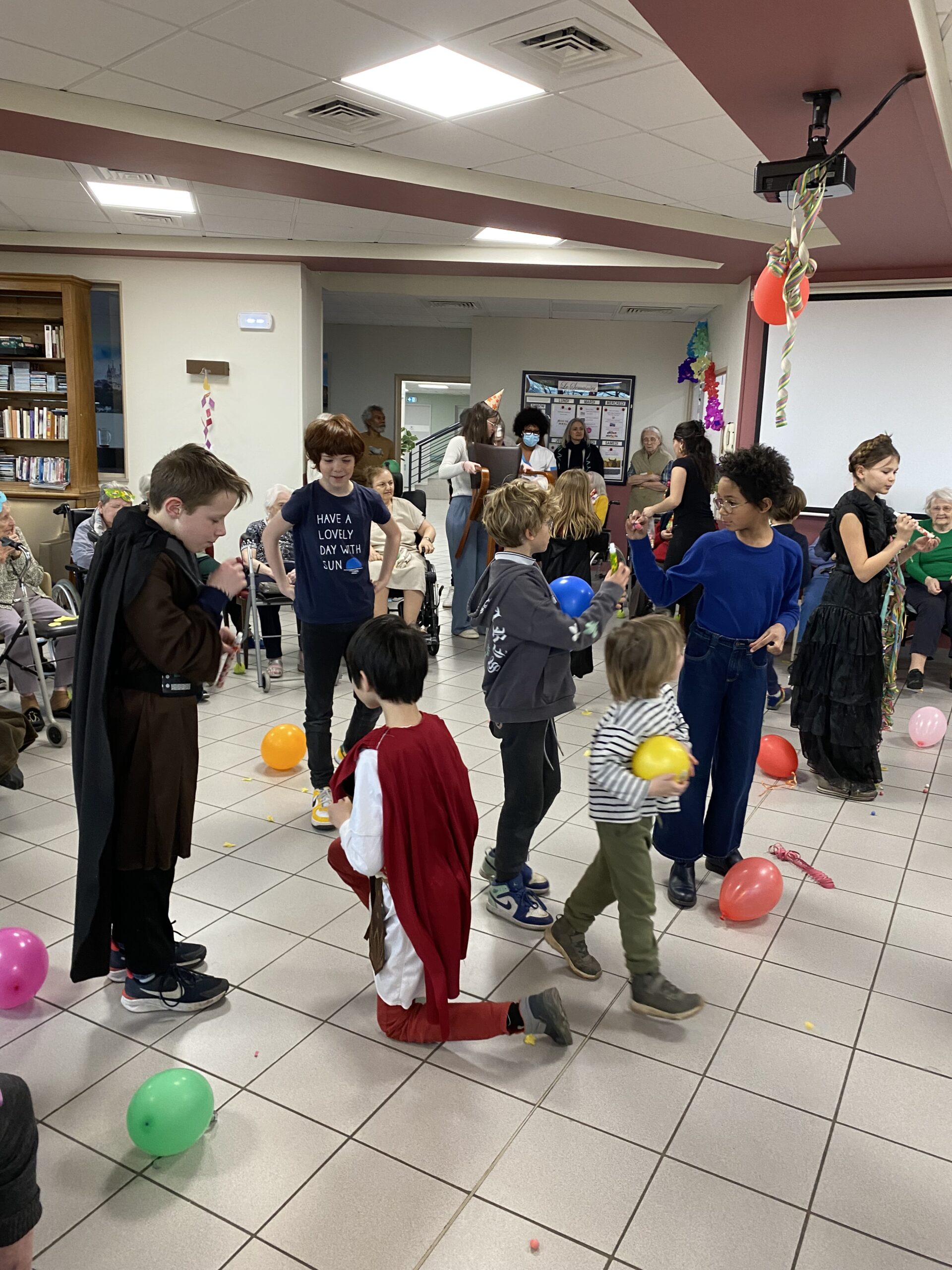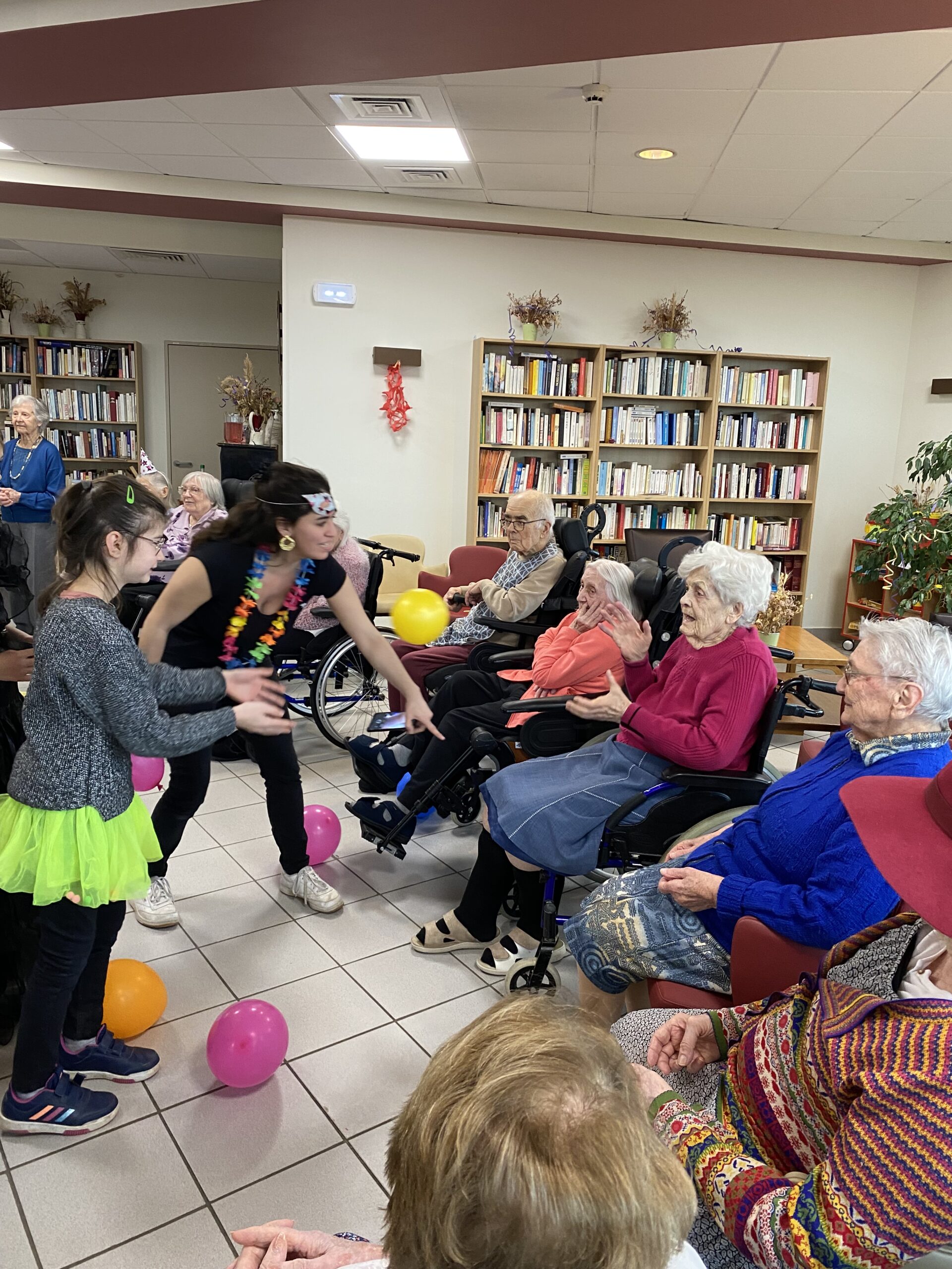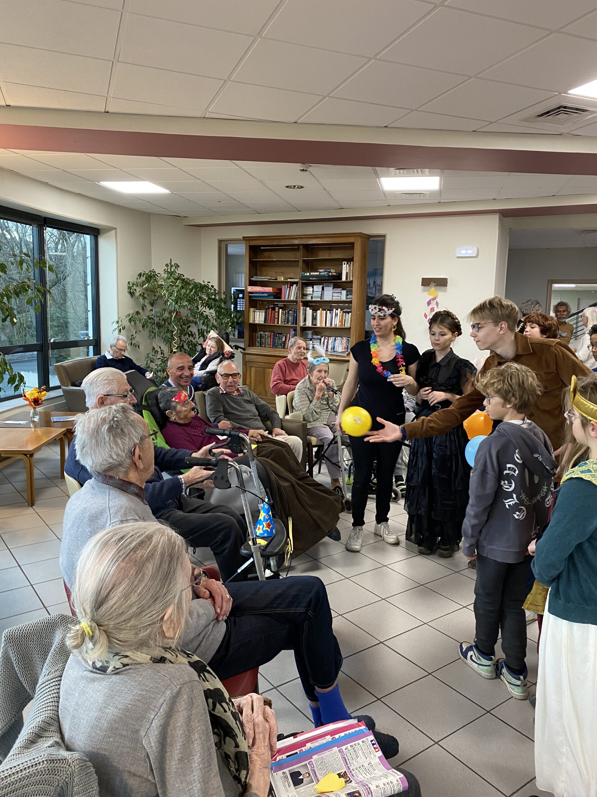 Pour fêter le carnaval, Les Amandines ont invité les enfants de l’école LMO Les Montessoriens de l’Ouest pour un après-midi festif. Au programme, jeux de ballons avec les résidents, partage d’un goûter avec des gaufres préparées par l’équipe des Amandines et défilé des enfants avec leurs costumes. Cet après-midi très convivial et dynamique a égayé la journée des résidents qui ont passé un moment agréable.