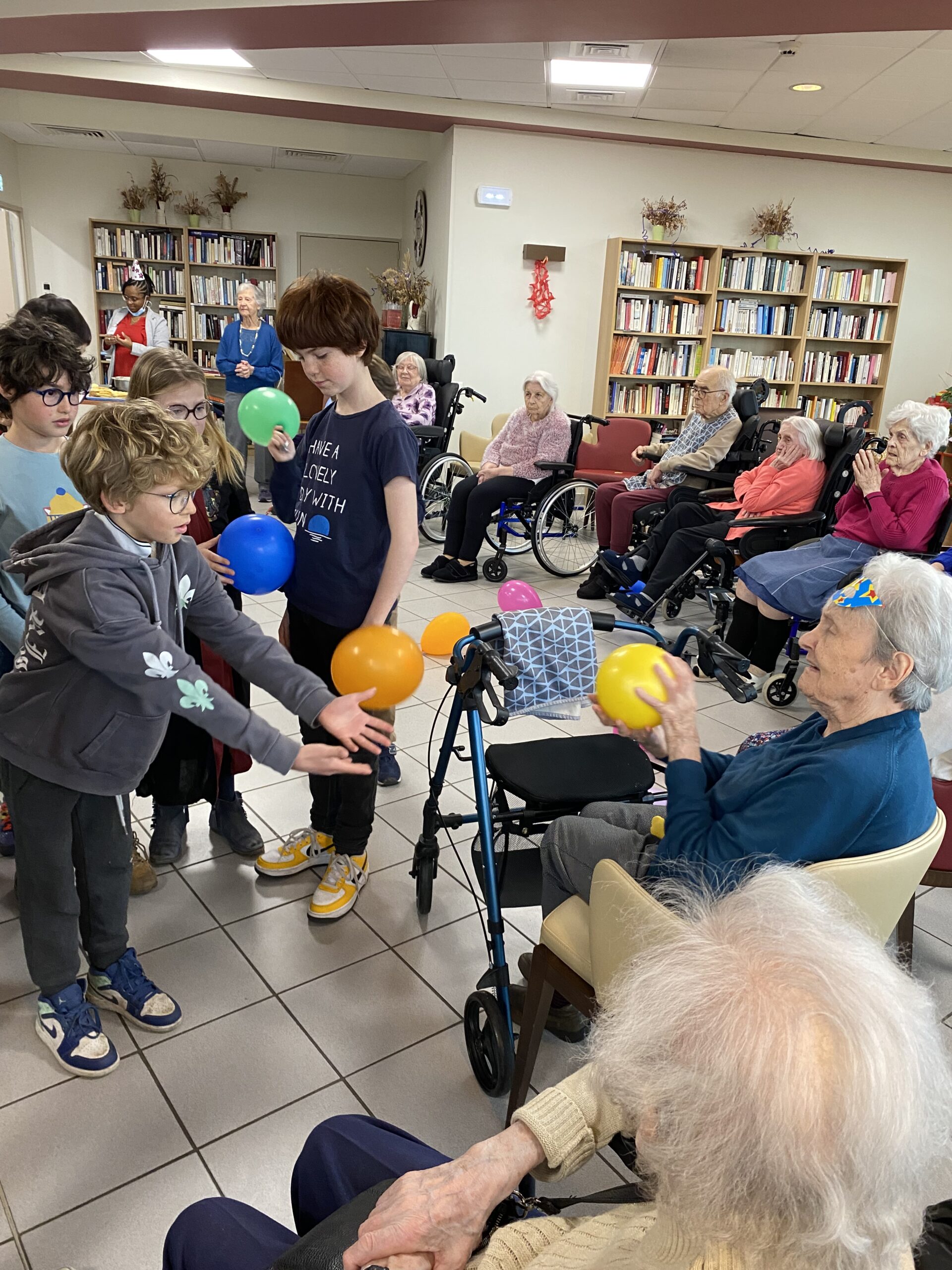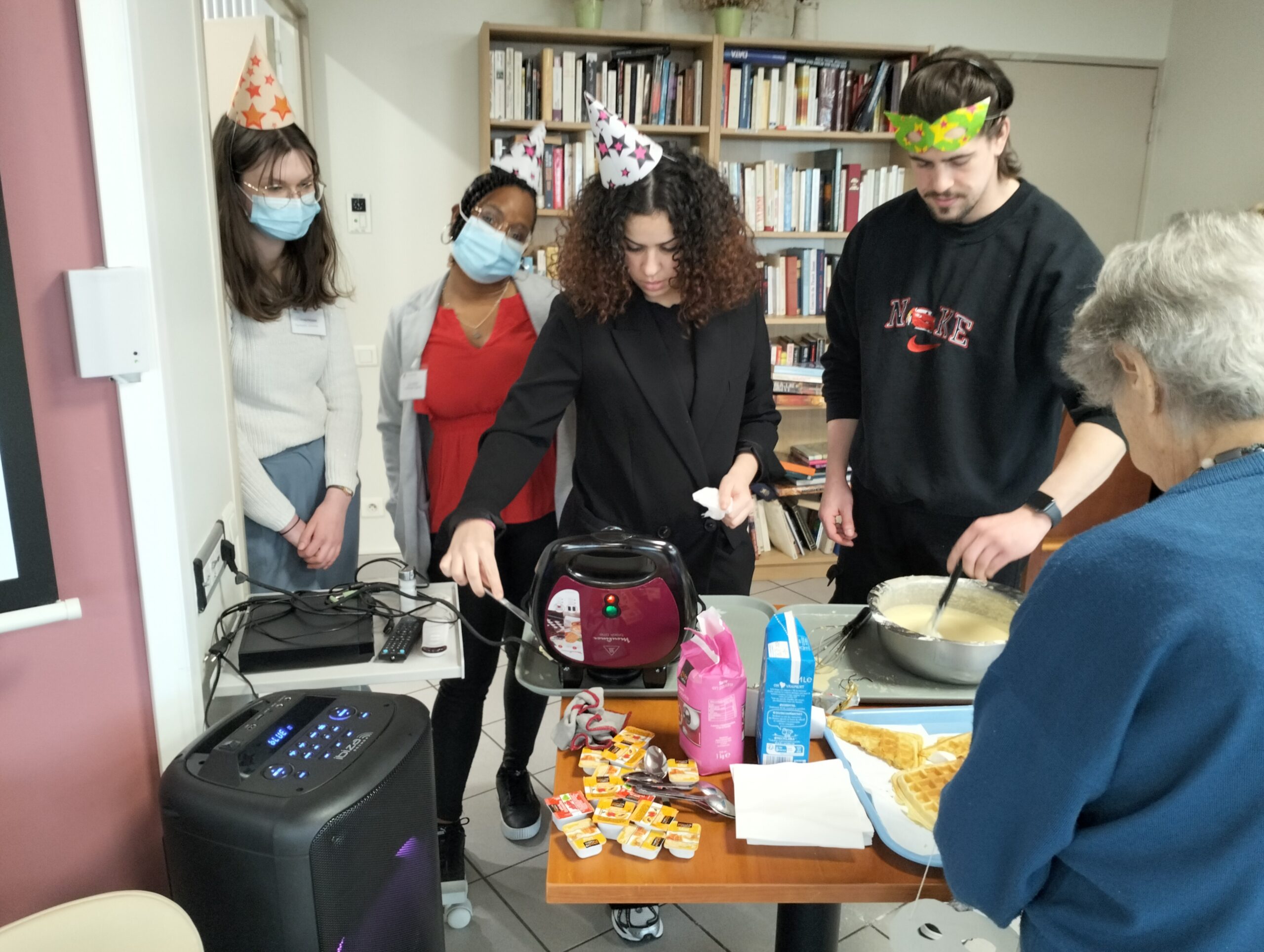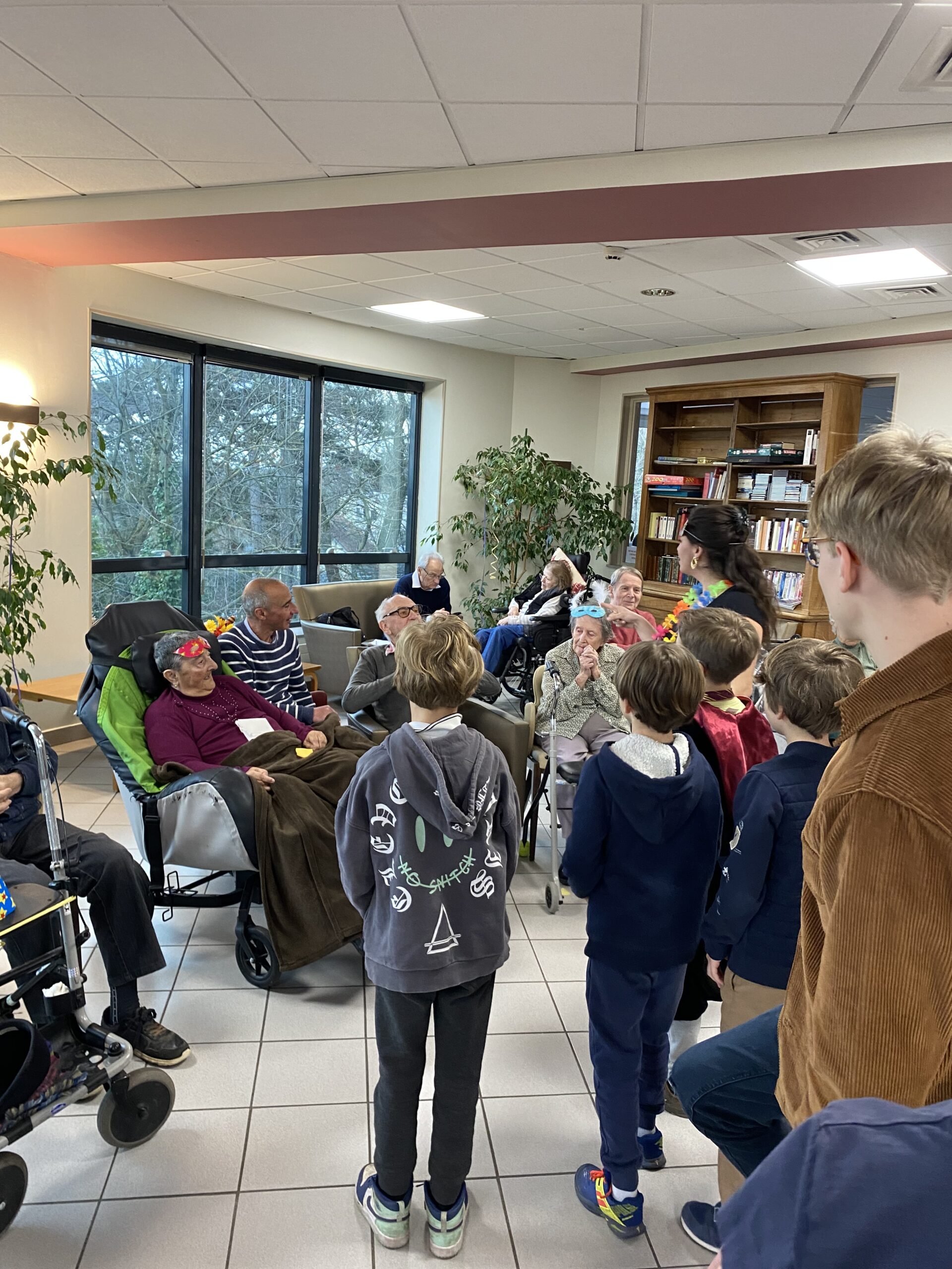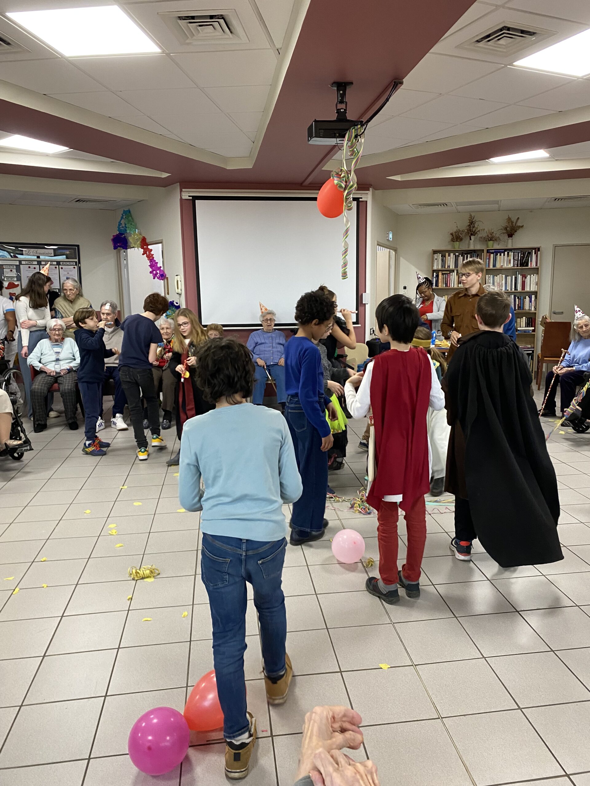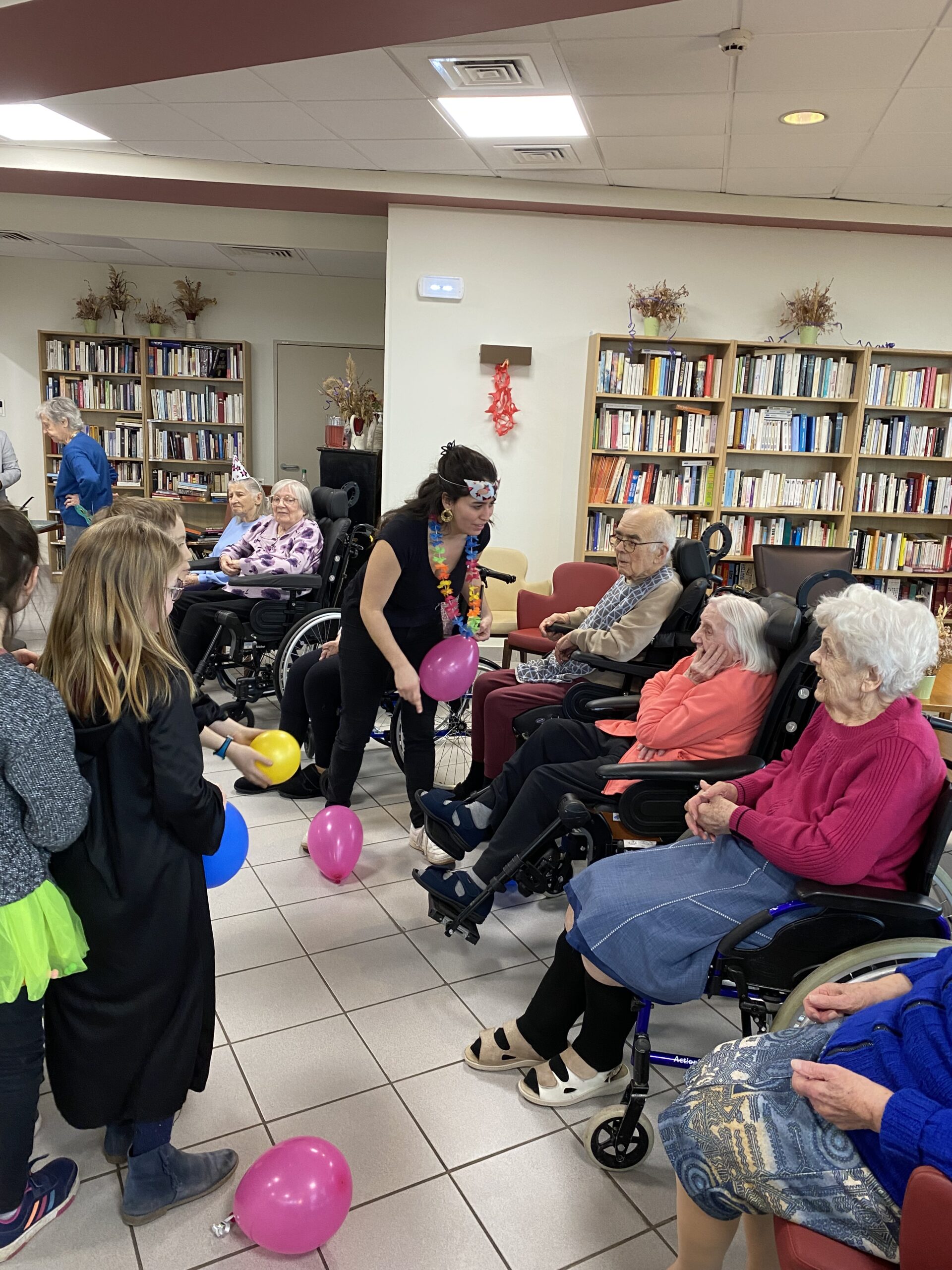 Pour fêter le carnaval, Les Amandines ont invité les enfants de l’école LMO Les Montessoriens de l’Ouest pour un après-midi festif. Au programme, jeux de ballons avec les résidents, partage d’un goûter avec des gaufres préparées par l’équipe des Amandines et défilé des enfants avec leurs costumes. Cet après-midi très convivial et dynamique a égayé la journée des résidents qui ont passé un moment agréable.