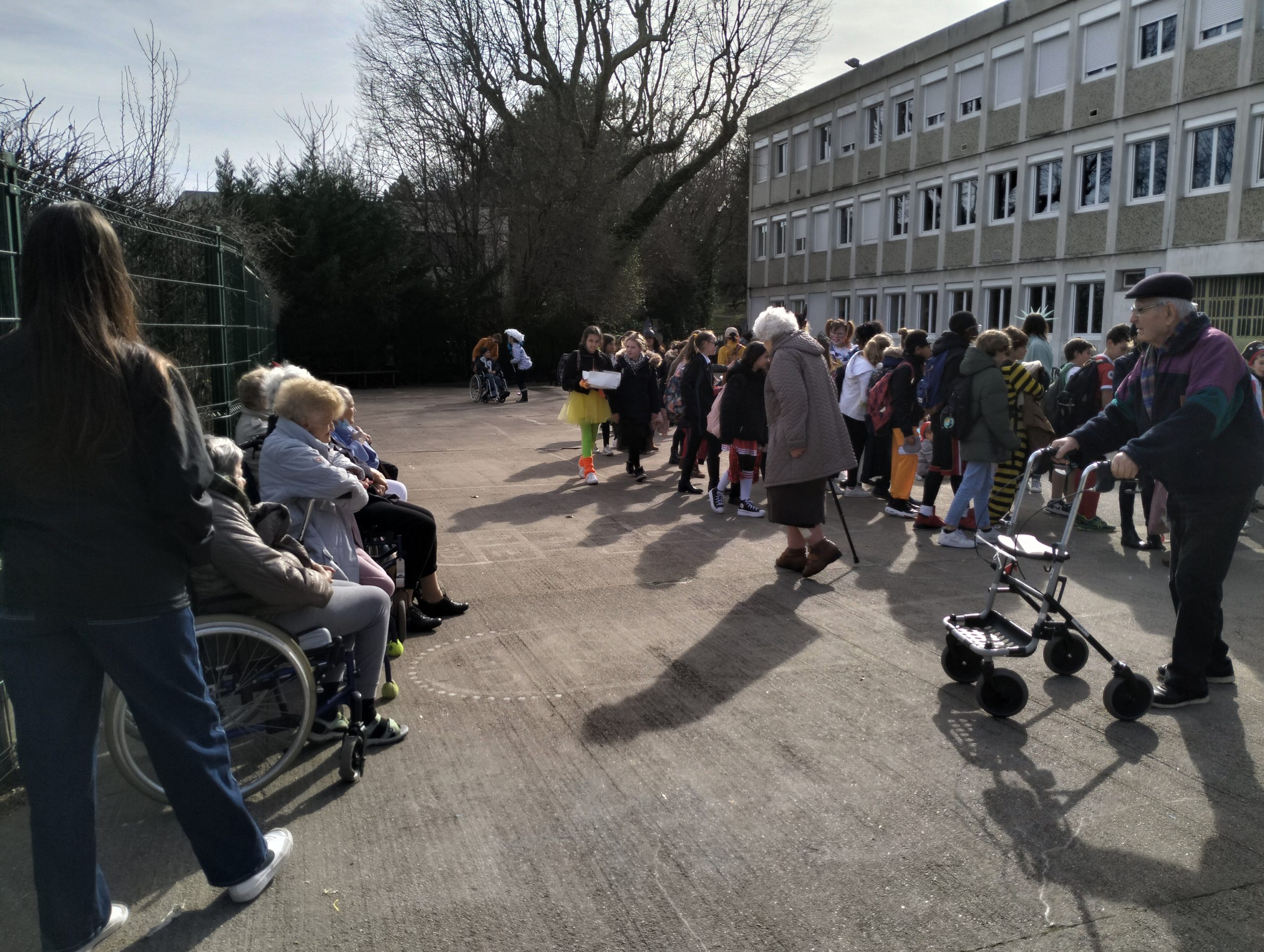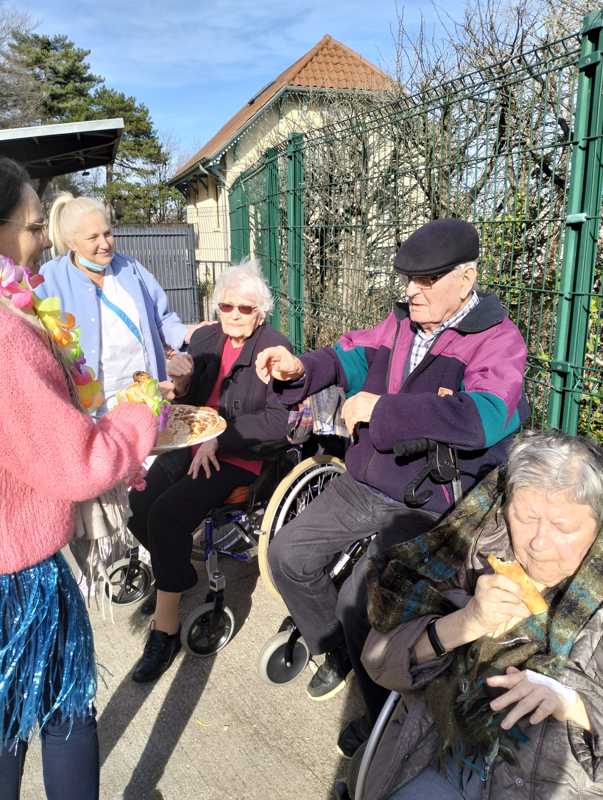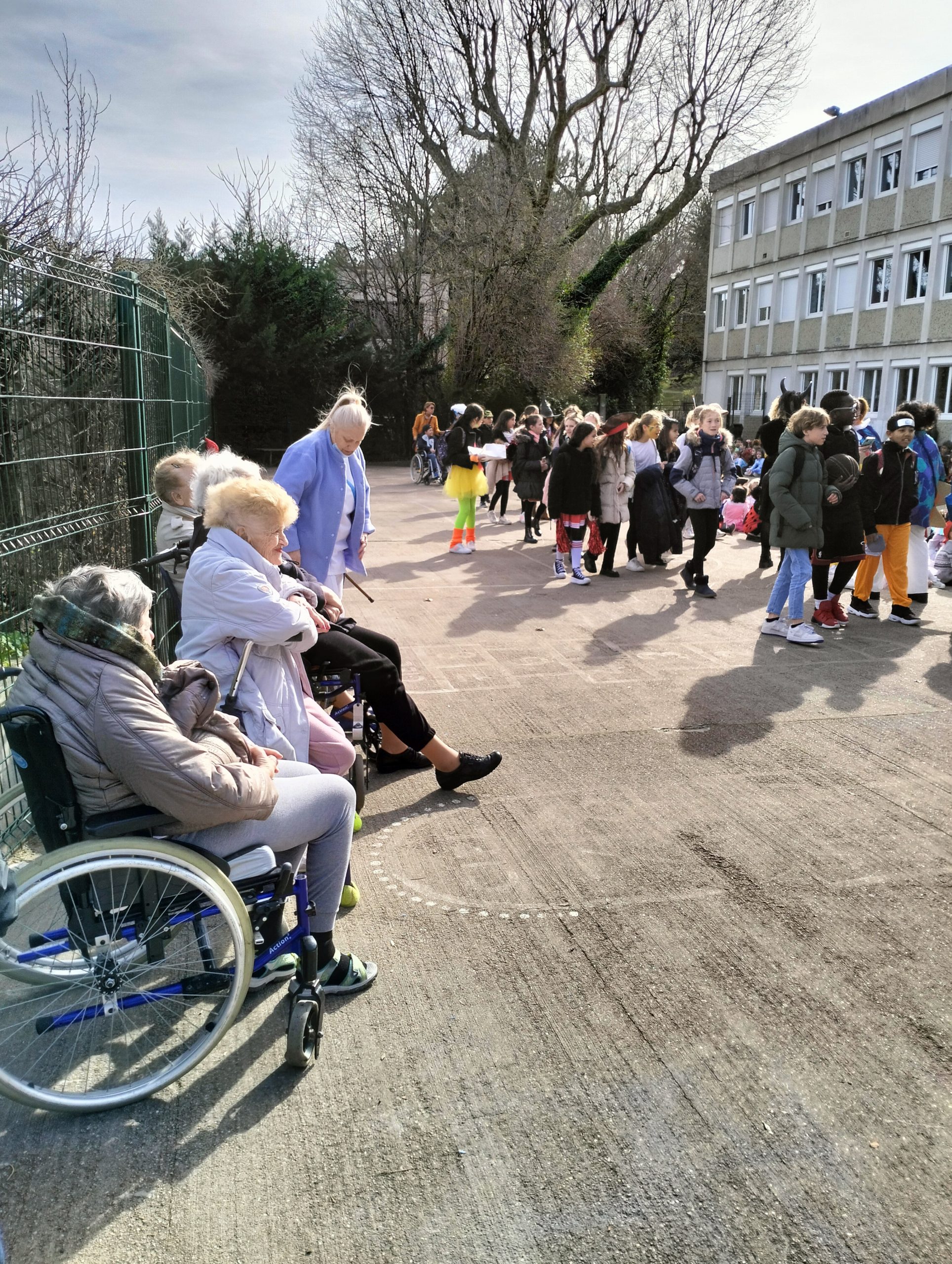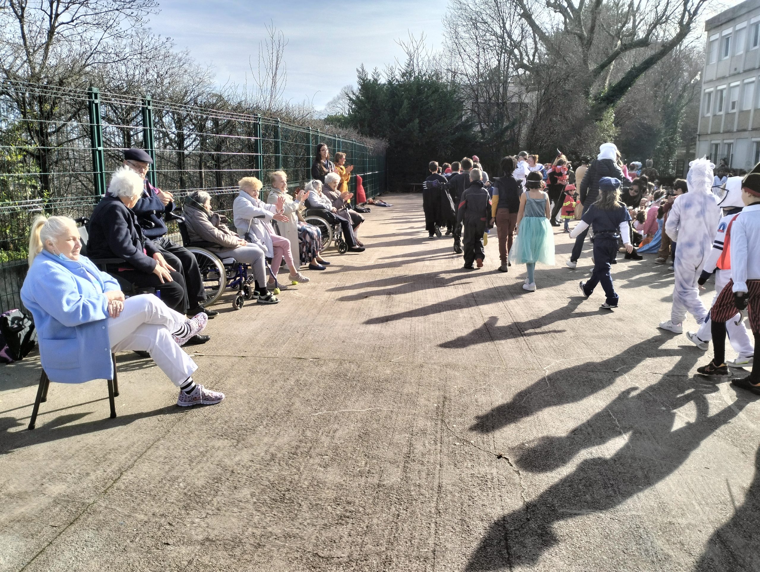 Un groupe de résidents s’est rendu à l’école St Ursule à côté des Amandines pour fêter avec eux le carnaval. Accompagnés de Feyza, Elisabeth et Clara, les résidents sont allés à pied jusqu’à la cour de l’école où se tenait le défilé. Entre musique, déguisements et goûter crêpes, l’après-midi fut animée. Les résidents installés au soleil ont profité du spectacle et se sont amusés à observer les enfants.