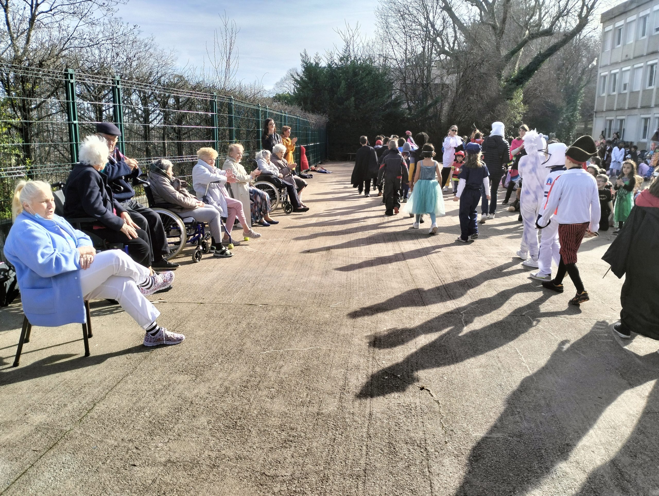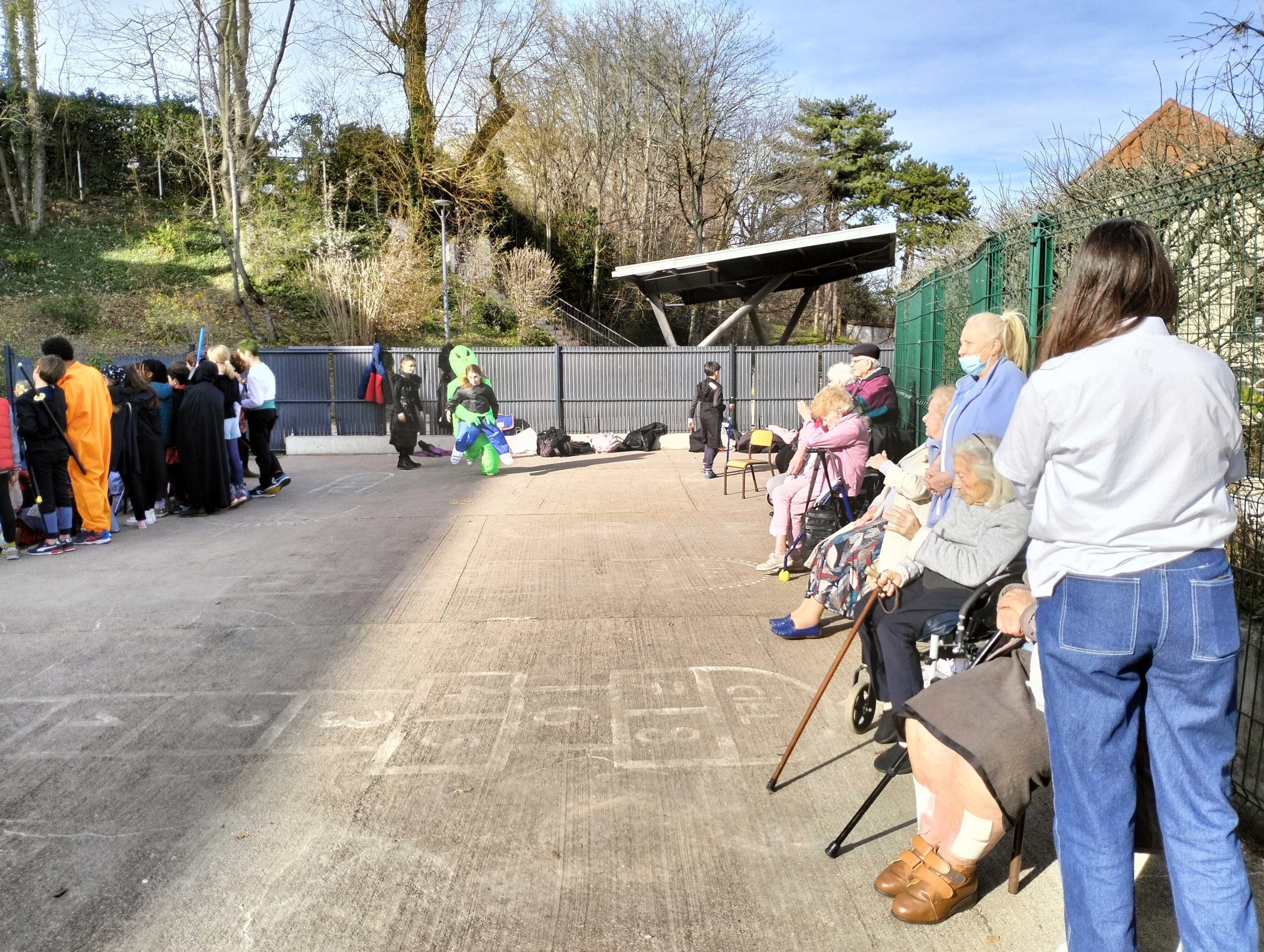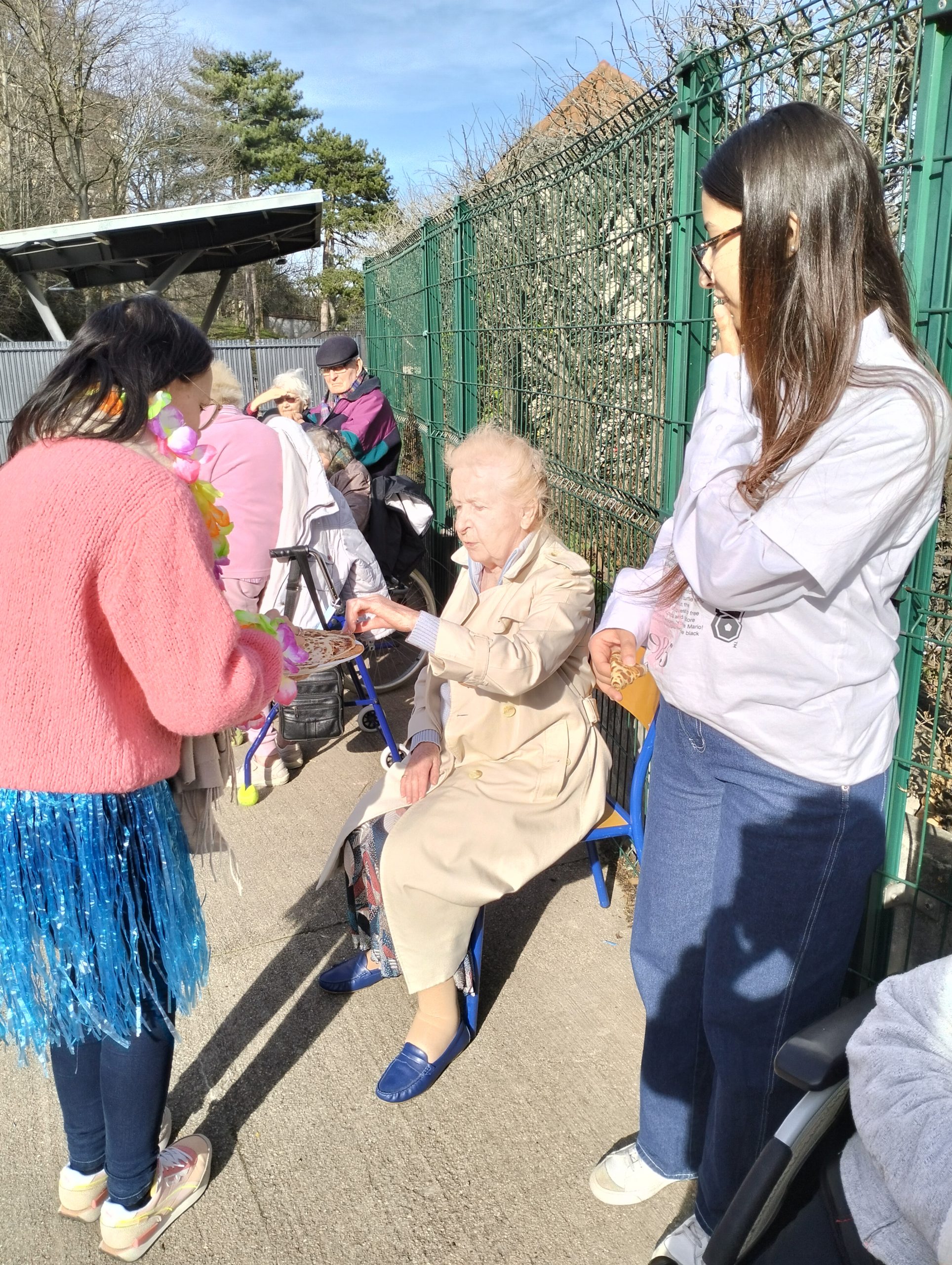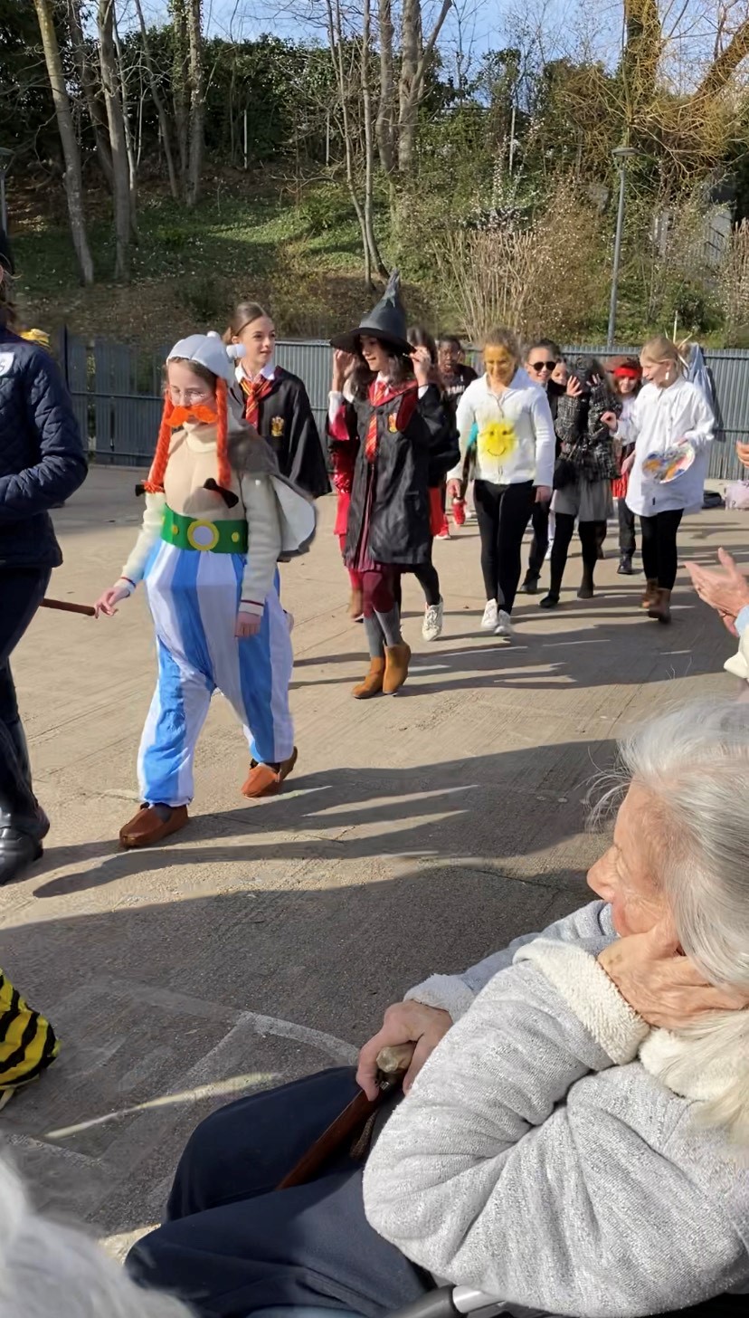 Un groupe de résidents s’est rendu à l’école St Ursule à côté des Amandines pour fêter avec eux le carnaval. Accompagnés de Feyza, Elisabeth et Clara, les résidents sont allés à pied jusqu’à la cour de l’école où se tenait le défilé. Entre musique, déguisements et goûter crêpes, l’après-midi fut animée. Les résidents installés au soleil ont profité du spectacle et se sont amusés à observer les enfants.