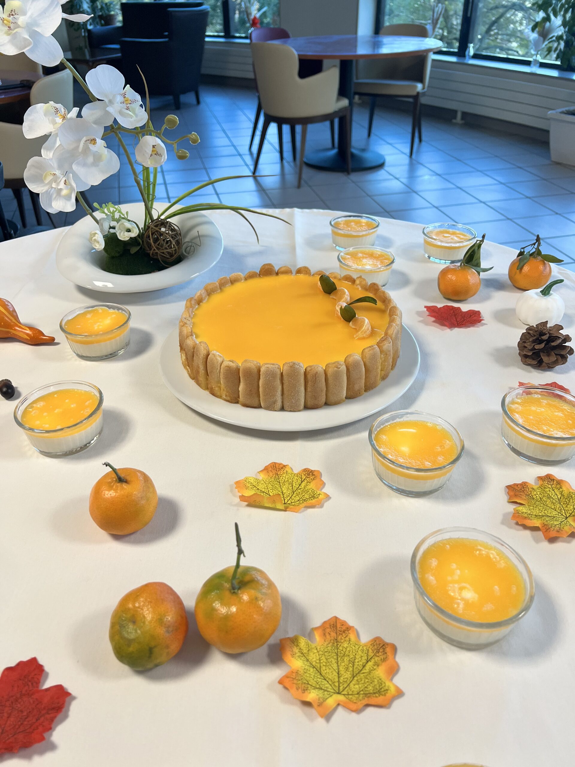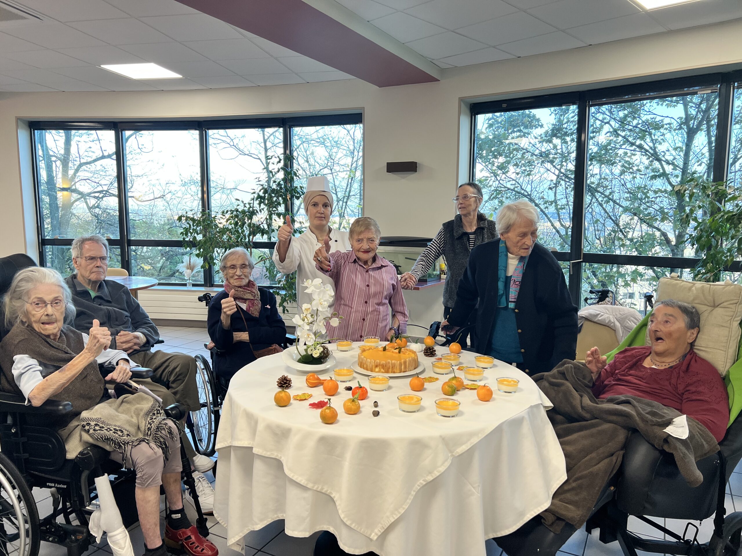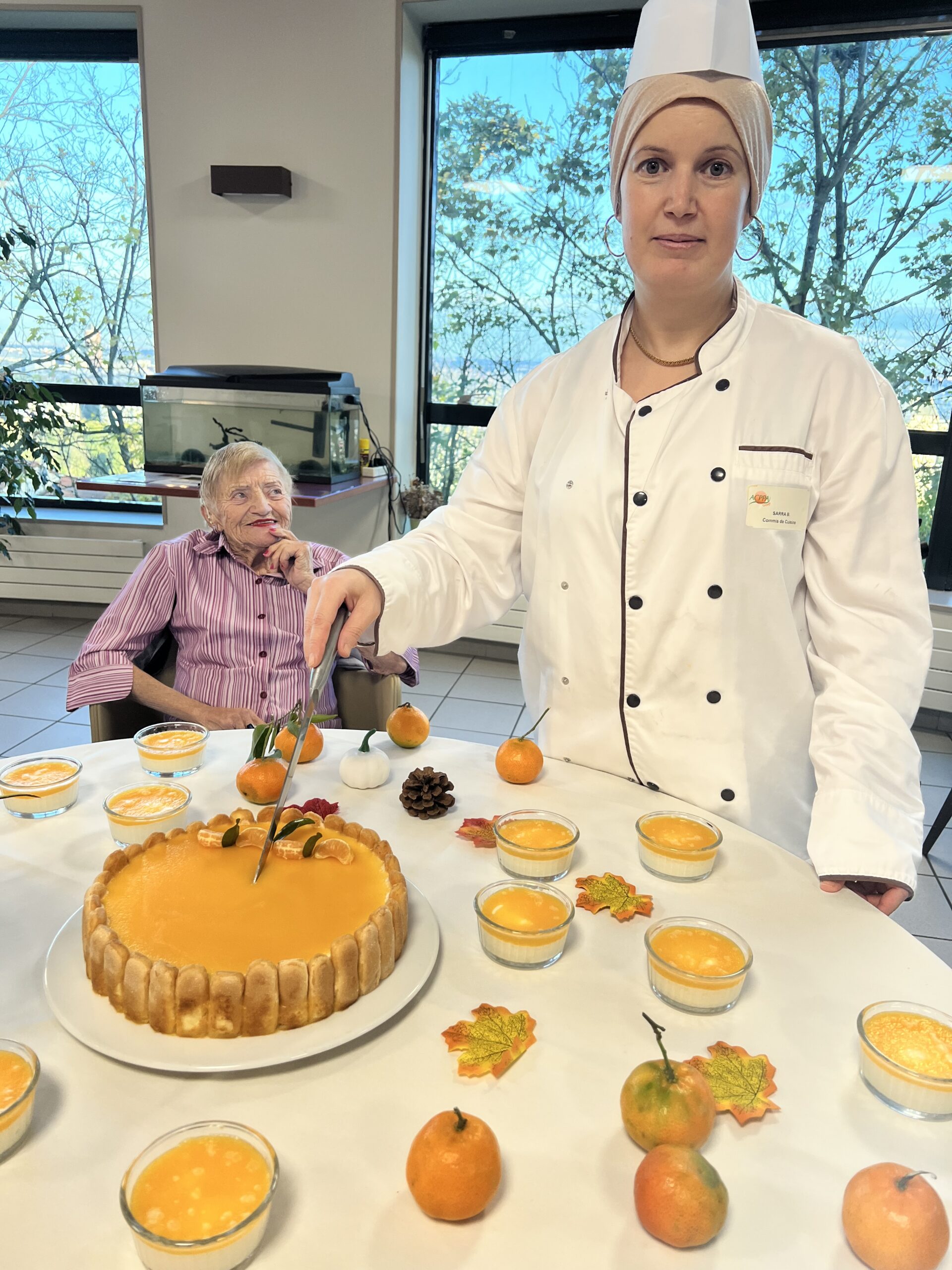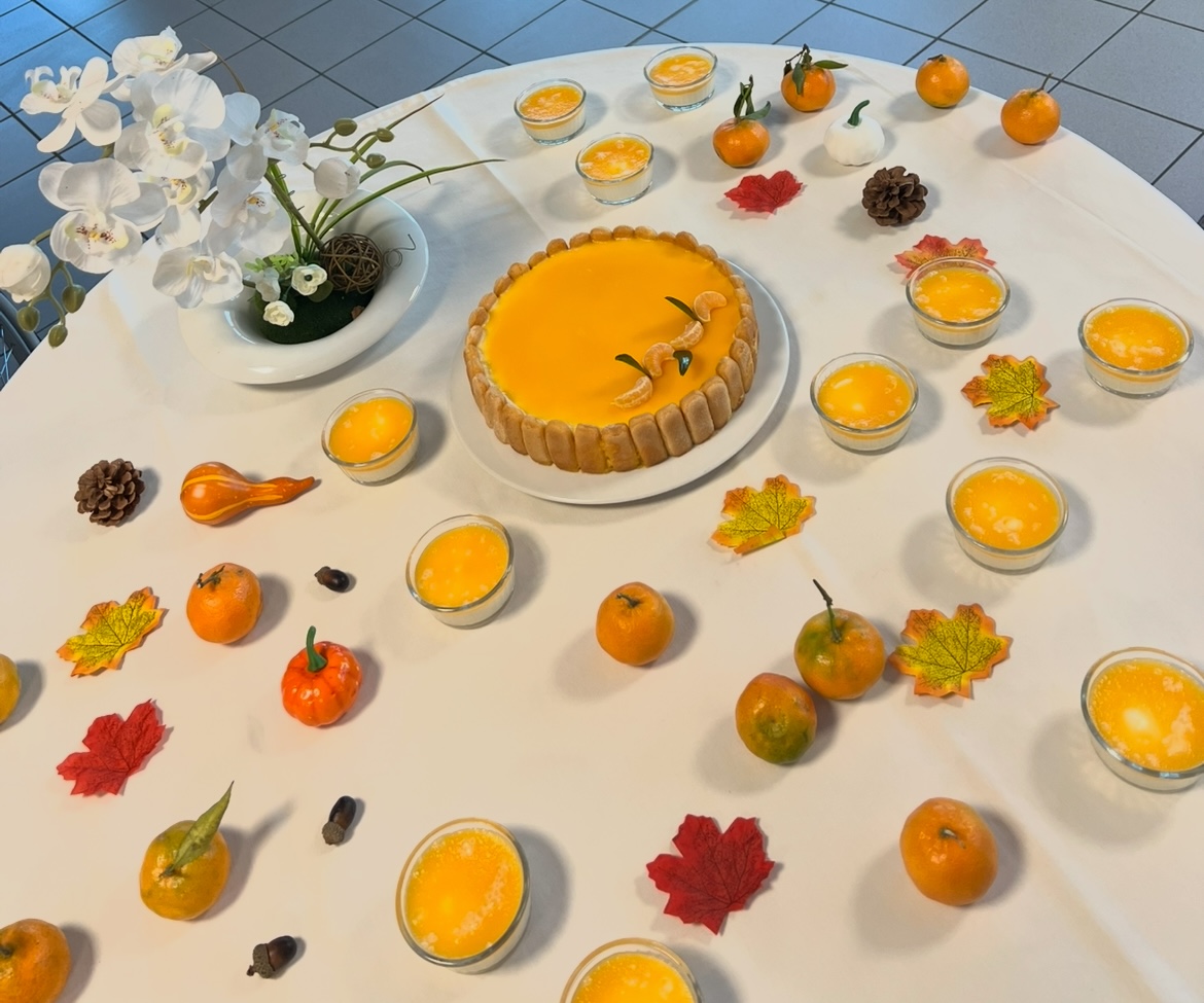 L’équipe de cuisine des Amandines a participé au challenge Un goûter presque parfait du groupe ACPPA comme les années précédentes. La proposition est un entremet de saison composé d’une génoise au chocolat, d’une mousse à la poire et d’un glaçage clémentines. Les cuisiniers dans une démarche RSO ont utilisé des fruits de l’entreprise Atypique qui valorise les fruits et légumes hors catégories. Une déclinaison a été réalisée pour les résidents en textures modifiées. Suite à cette préparation, une dégustation a été organisée avec les résidents le vendredi 22 novembre. Cette dégustation a été très appréciée par les résidents et les familles présentes. Bravo à l’équipe de cuisine des Amandines !