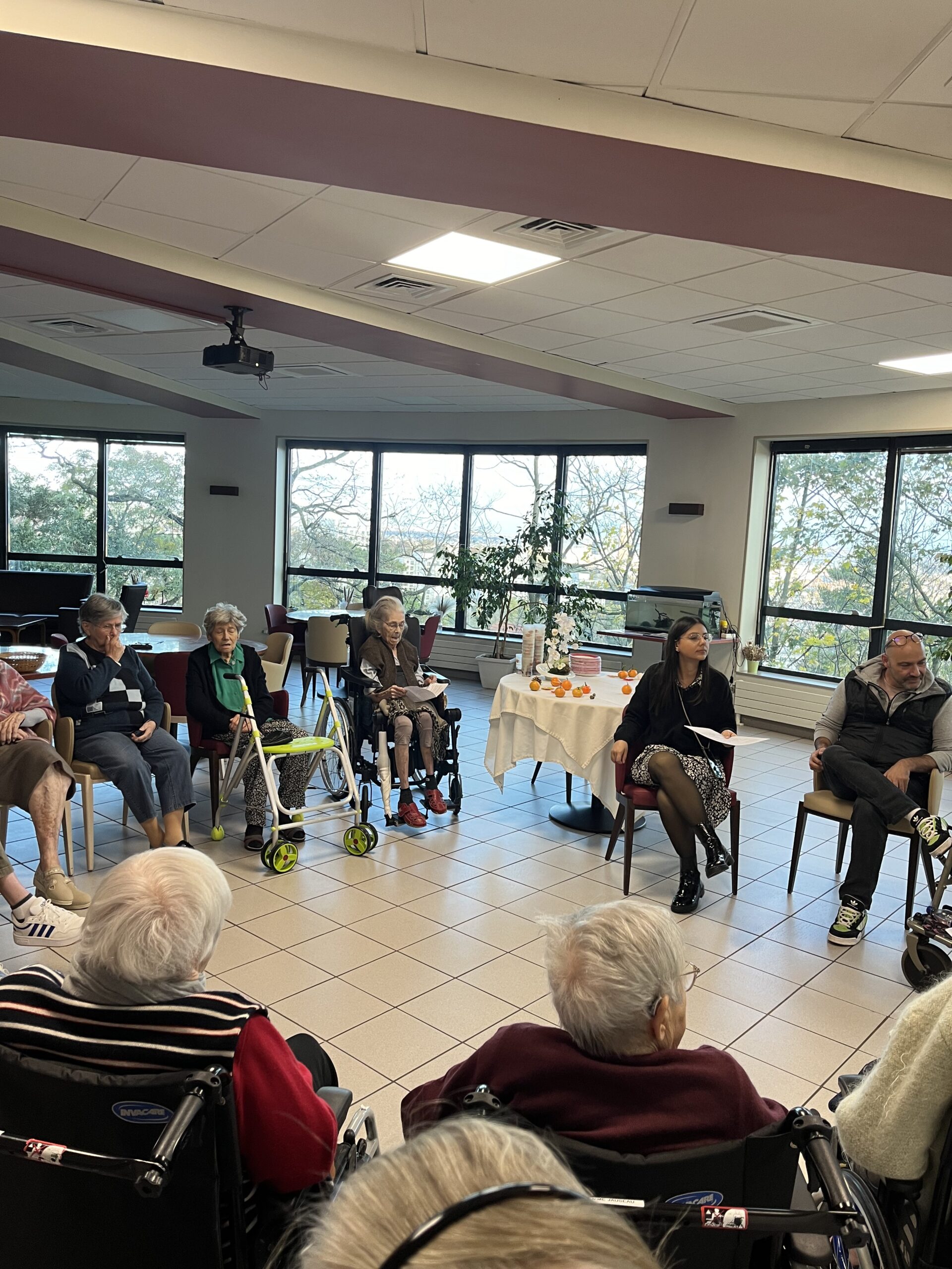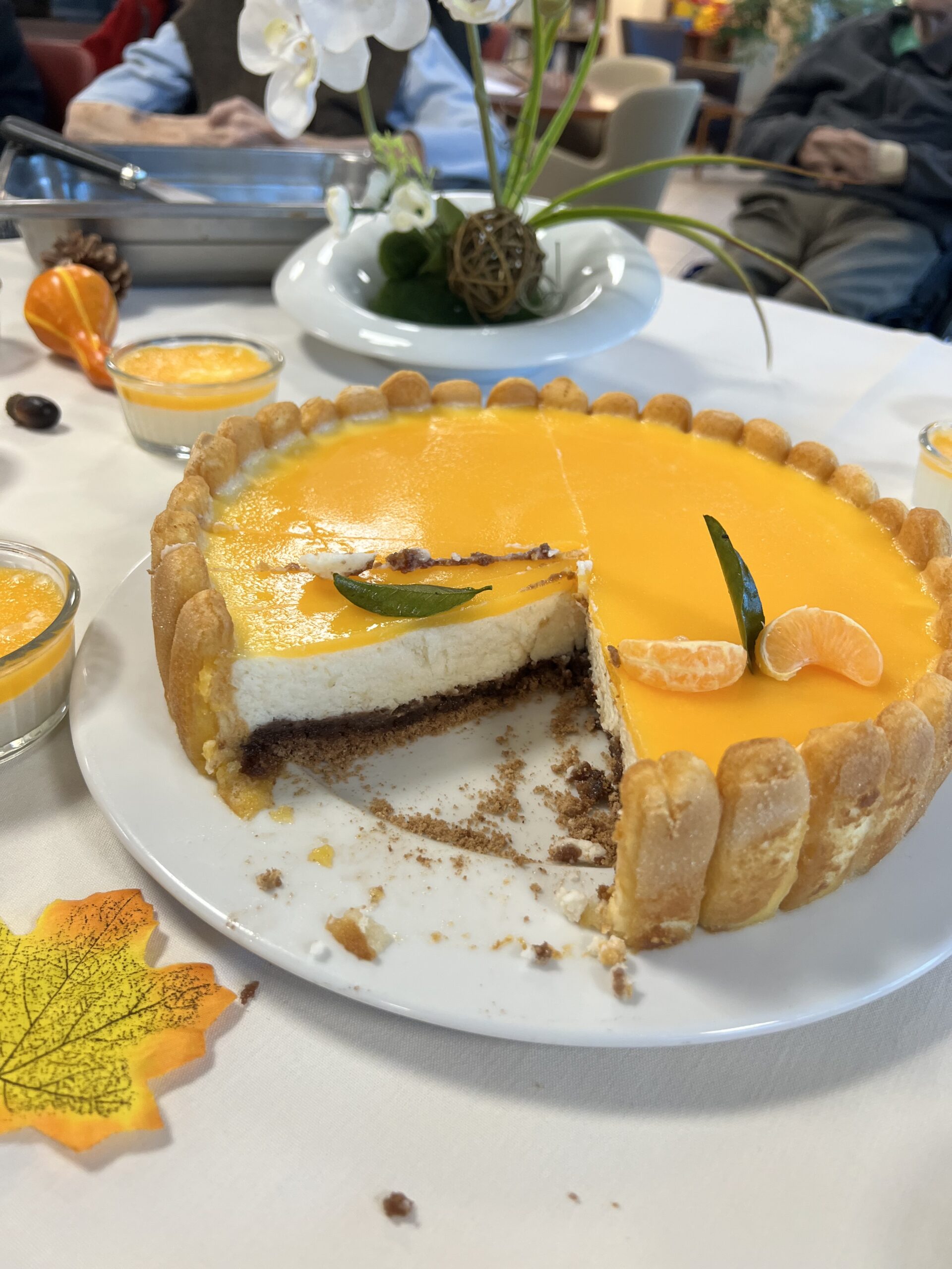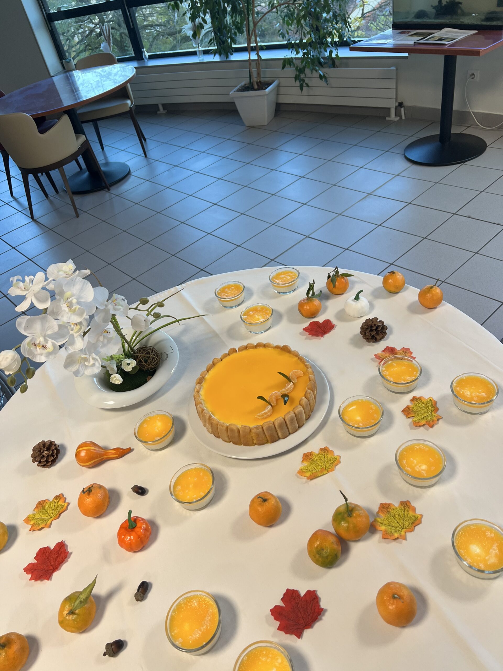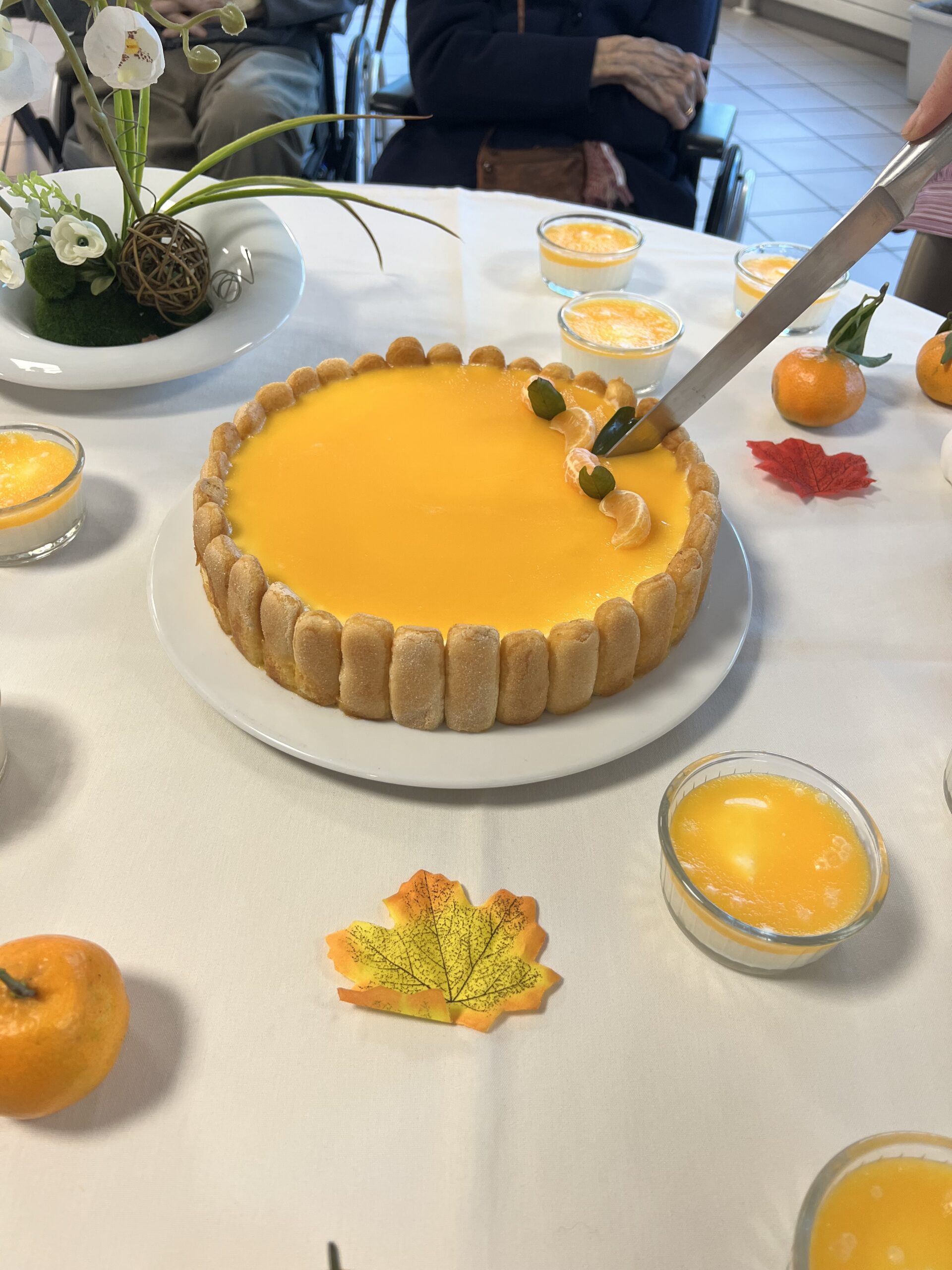L’équipe de cuisine des Amandines a participé au challenge Un goûter presque parfait du groupe ACPPA comme les années précédentes. La proposition est un entremet de saison composé d’une génoise au chocolat, d’une mousse à la poire et d’un glaçage clémentines. Les cuisiniers dans une démarche RSO ont utilisé des fruits de l’entreprise Atypique qui valorise les fruits et légumes hors catégories. Une déclinaison a été réalisée pour les résidents en textures modifiées. Suite à cette préparation, une dégustation a été organisée avec les résidents le vendredi 22 novembre. Cette dégustation a été très appréciée par les résidents et les familles présentes. Bravo à l’équipe de cuisine des Amandines !