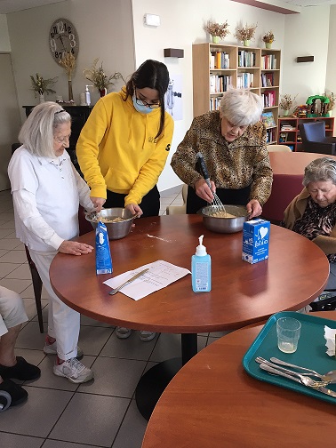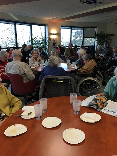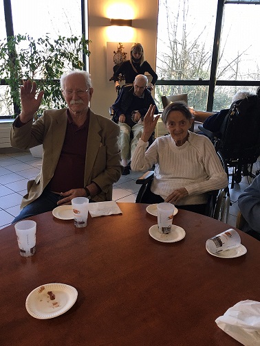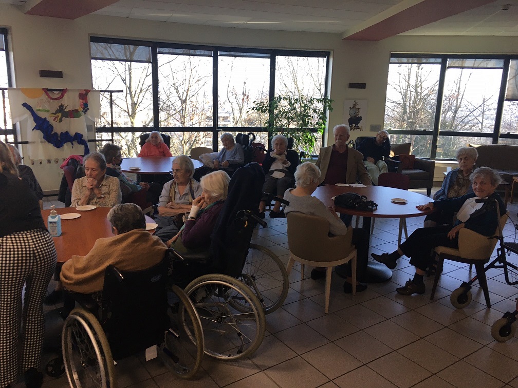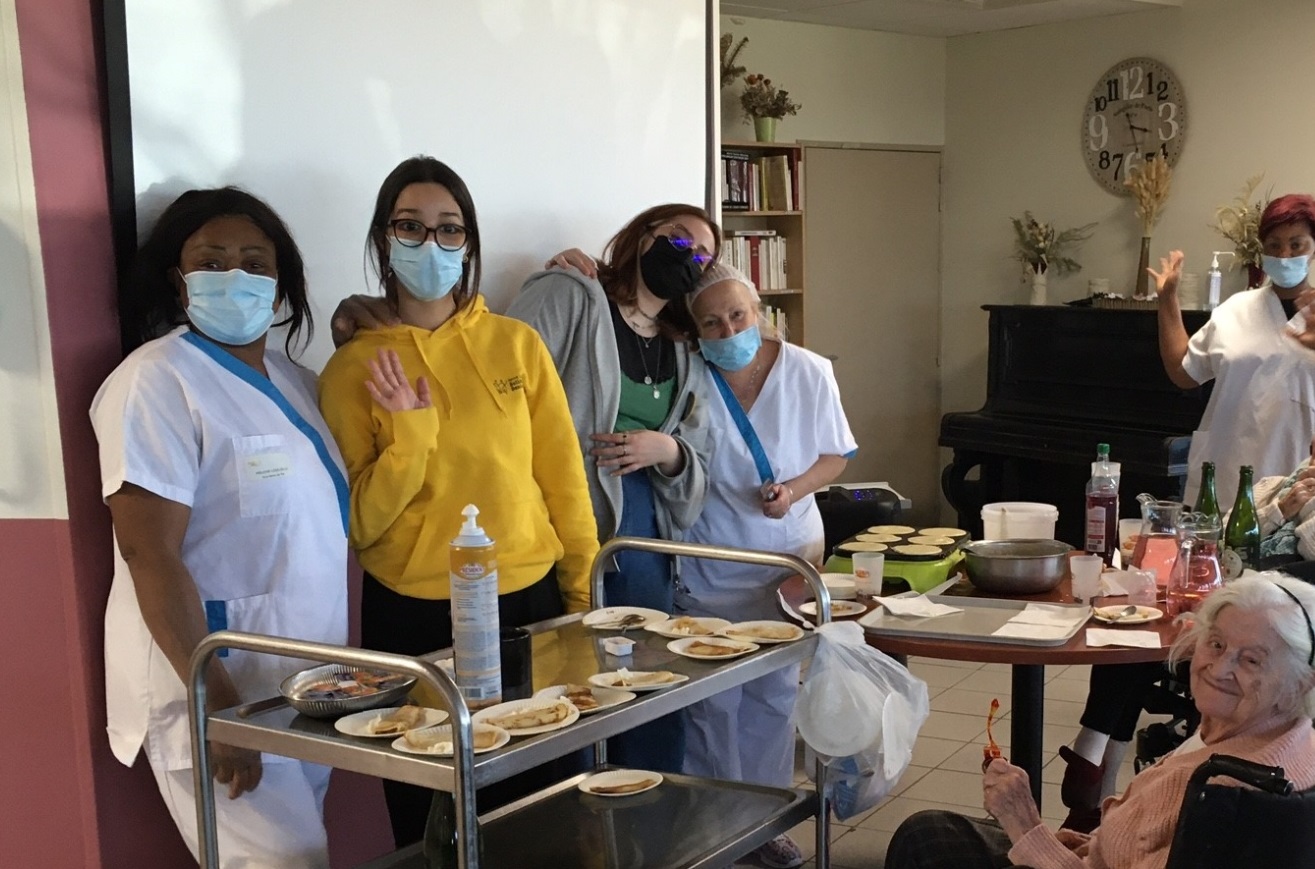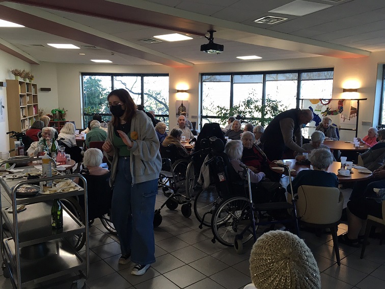 Nous nous sommes réunis vendredi 3 février pour fêter la chandeleur. Très nombreux dans le salon du Framboisier, l’ambiance était au rendez-vous avec de la musique française en fond sonore. Les crêpes ont été cuites par Elisabeth qui en a fait une centaine en chantant et en dansant. Le service a été réalisé par Chloé et Feyza, les deux jeunes filles en service civique. La pâte avait été préparée le matin pour un groupe de résidents. Un moment convivial qui a réuni salariés, familles et résidents pour trinquer au cidre.