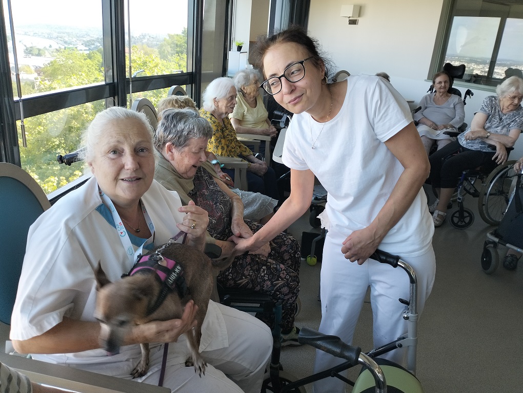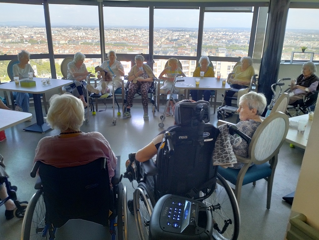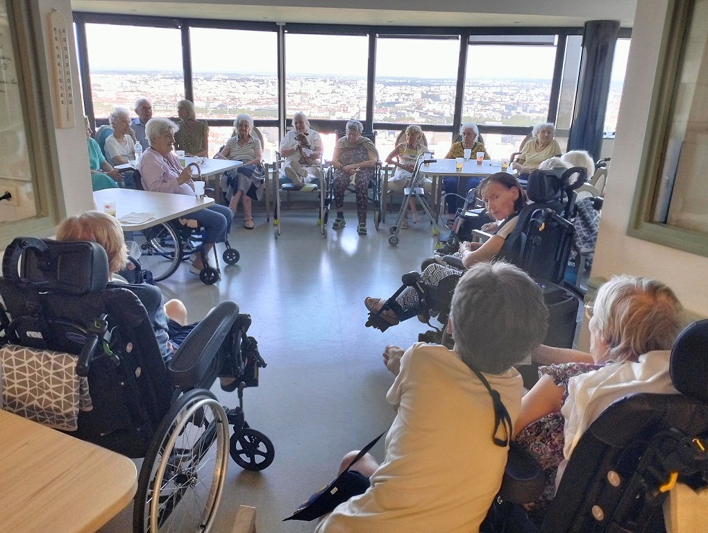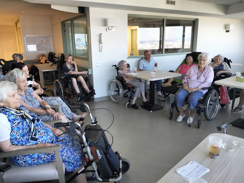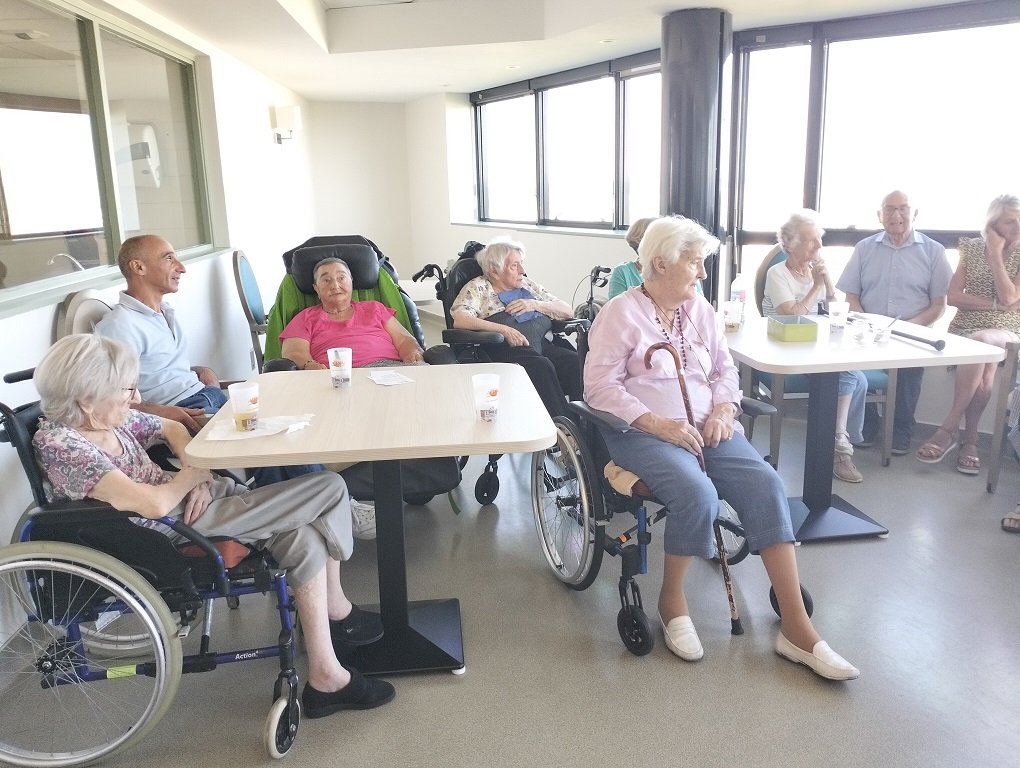 Pendant la période caniculaire, nous avons privilégié les activités en intérieur avec la climatisation. Plusieurs fois, Clara et Elisabeth ont organisé des chants et jeux de musique. En équipe avec les familles, les résidents devaient retrouver l’auteur de la chanson puis la chanter tous ensemble. Les résidents ont apprécié ces après-midis très agréables et dynamiques où tout le monde a poussé la chansonnette.