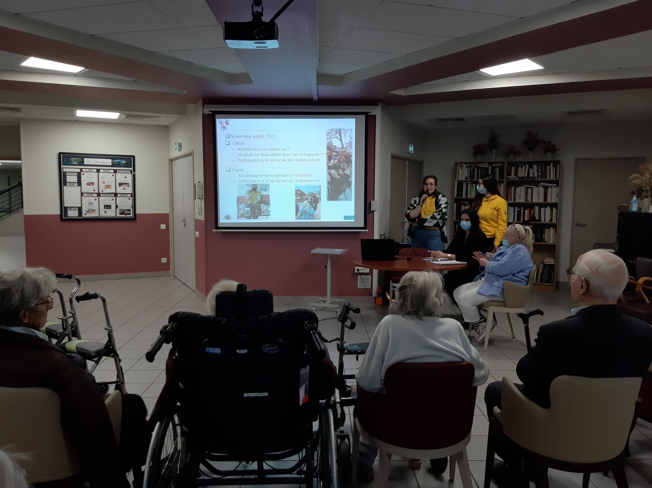 Le mercredi 25 janvier, nous avons réalisé avec Mme MARCON, Clara, Elisabeth, Feyza et Chloé notre première commission animations de l’année. Nous avons fait un bilan de l’année 2022 et présenté les nombreux projets à venir en échangeant avec les résidents sur leurs envies. Nous avons également abordé les idées de sorties extérieures. Les résidents sont très satisfaits de la vie sociale très dynamique des Amandines.