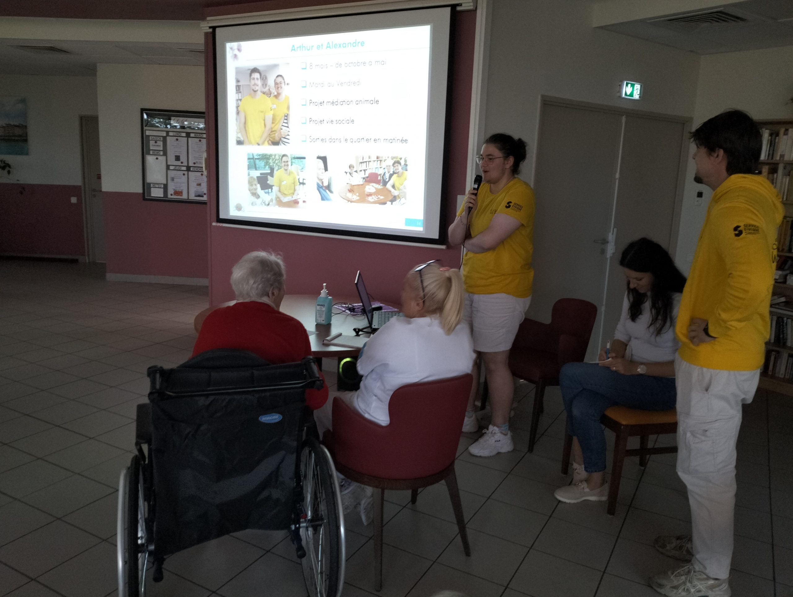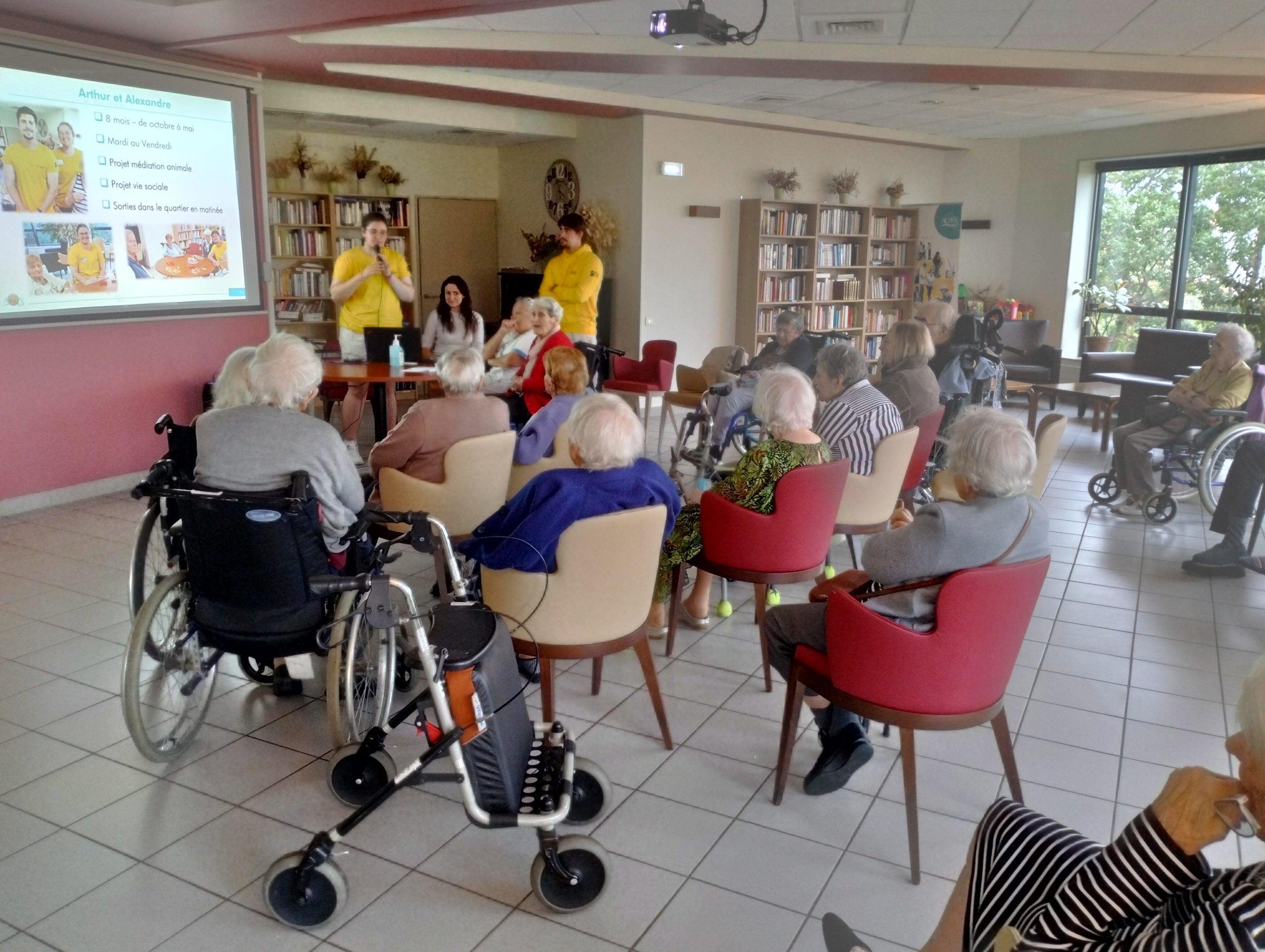 Mercredi 18 octobre, nous avons organisé notre quatrième et dernière Commission Animations de l’année 2023. Nous avons présenté les prochains projets, les prochaines sorties et les différents évènements à venir sur la fin d’année et l’année 2024. Nous en avons profité pour laisser la parole à Alexandre et Arthur le nouveau binôme de services civiques aux Amandines. Ils ont présenté leurs activités et leur projet de médiation animale. Merci à eux pour leur implication. A la fin de la réunion, nous avons réalisé un tour de tables pour avoir les retours des résidents. Ce qui est prévu semble leur faire très plaisir !