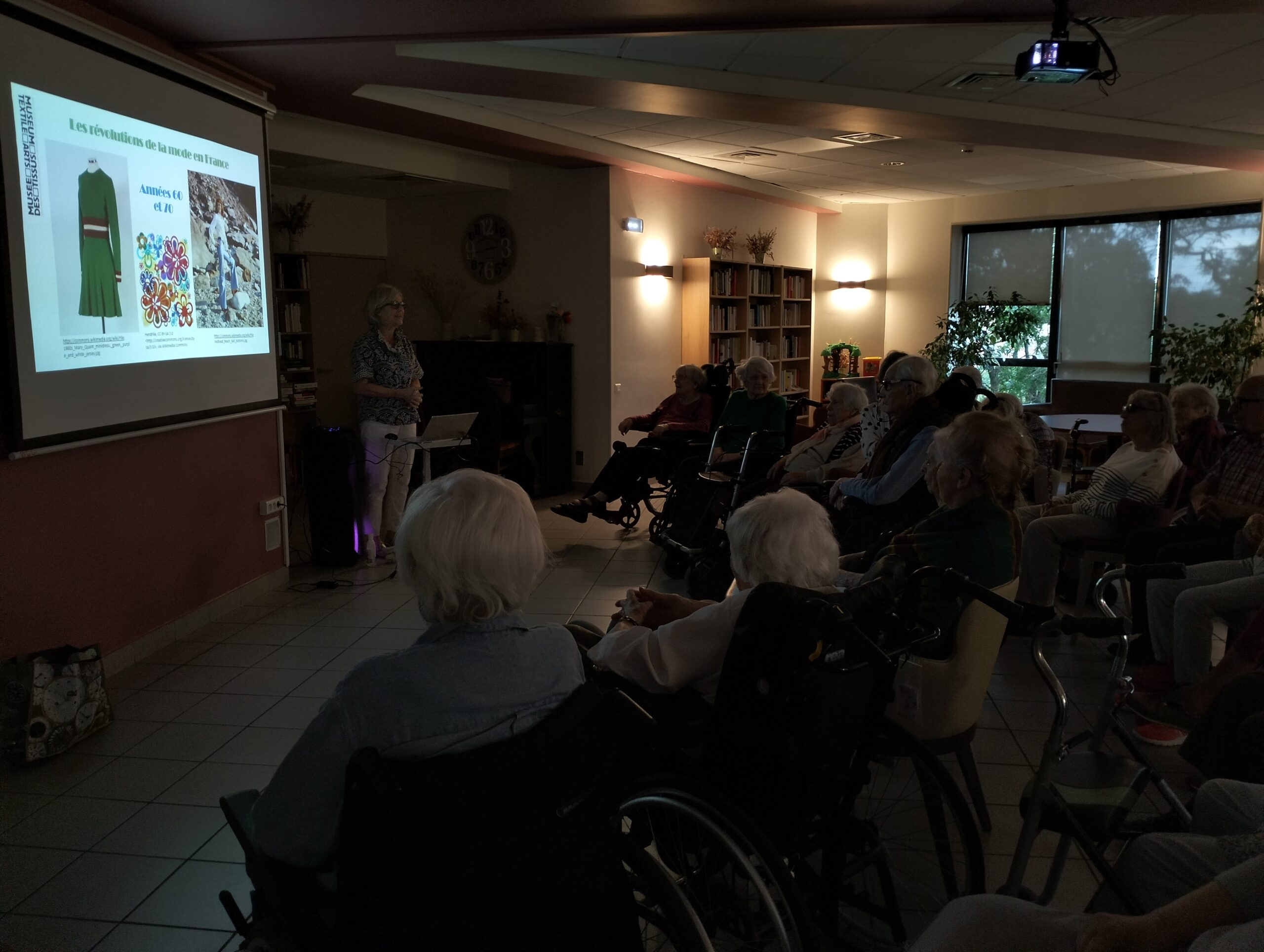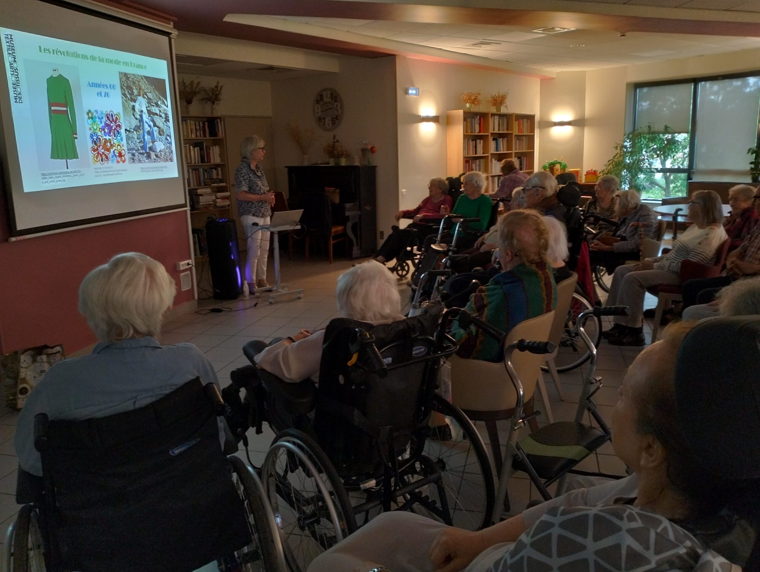 Nouvelle conférence avec le musée des tissus sur la mode des années 60 à 80 qui a rappelé de nombreux souvenirs à nos résidents. La prochaine rencontre aura lieu le 25 juin pour la restitution du projet culture et santé avec une exposition des portraits et des créations en tissus.