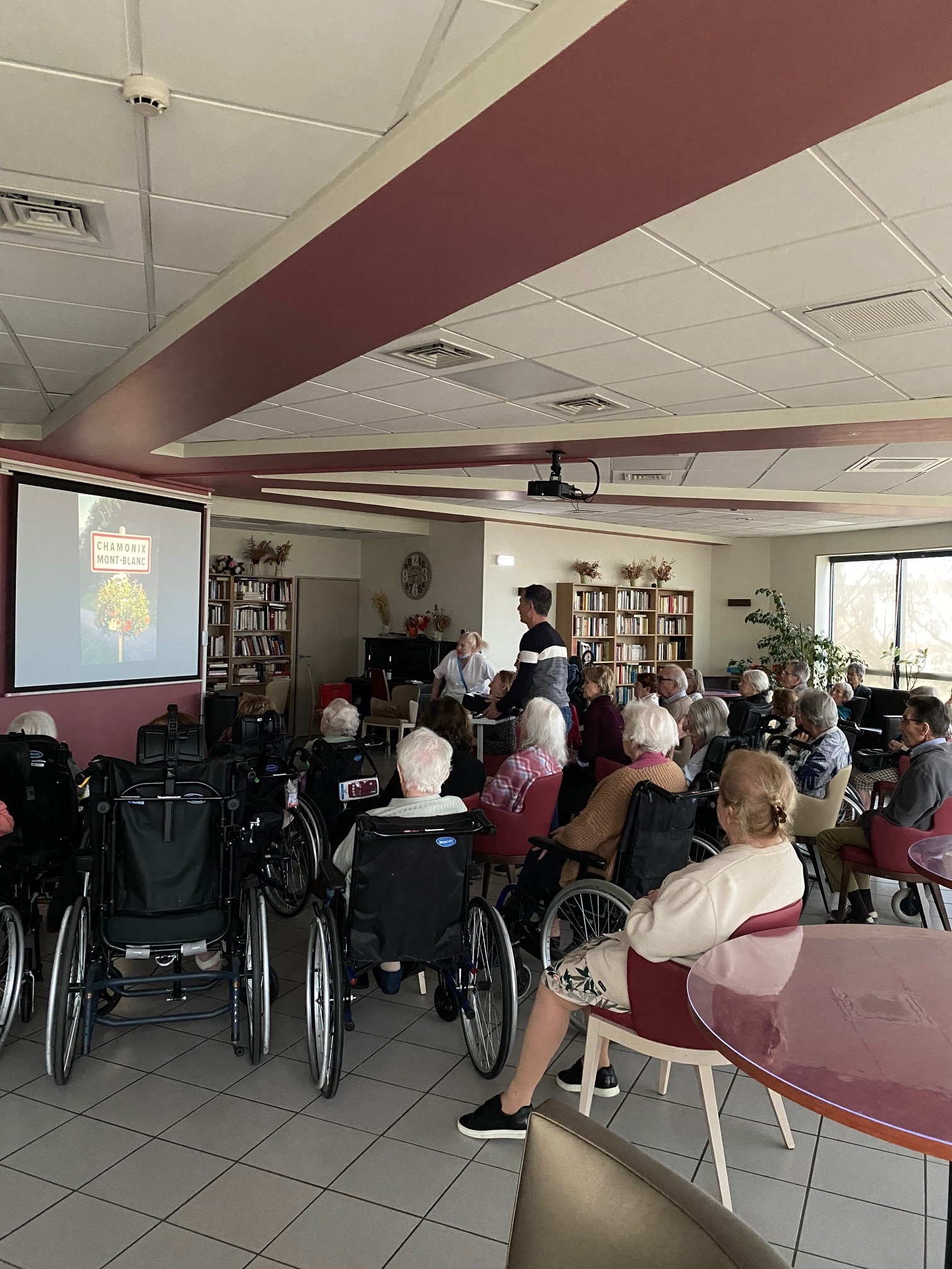 Cette semaine, mercredi, M. BOSSY est venu aux Amandines faire une conférence sur Chamonix Mont-blanc et le métier de haute montagne avec ensuite une dégustation de vin et de fromages de Savoie. Un après-midi très apprécié des résidents.