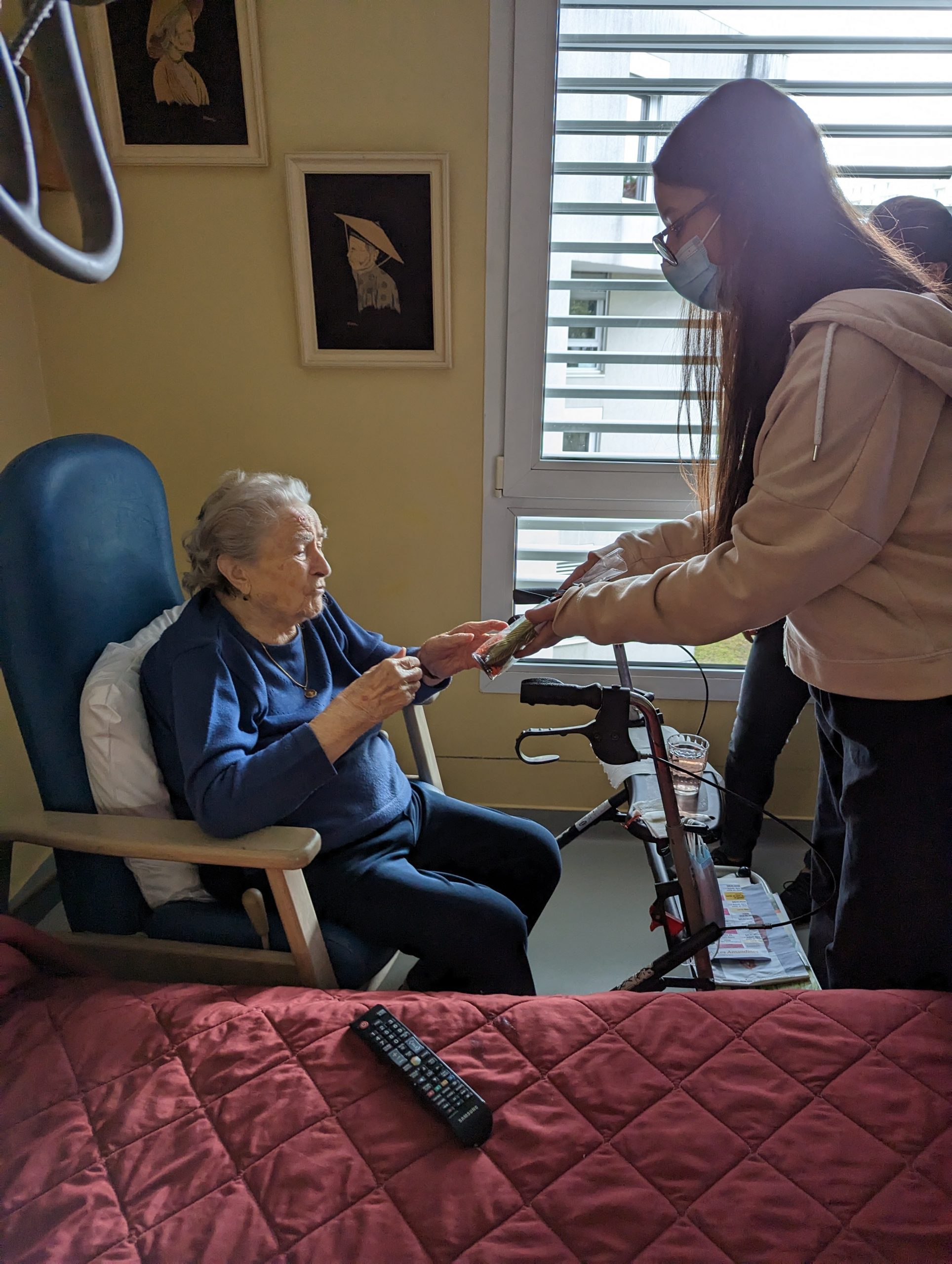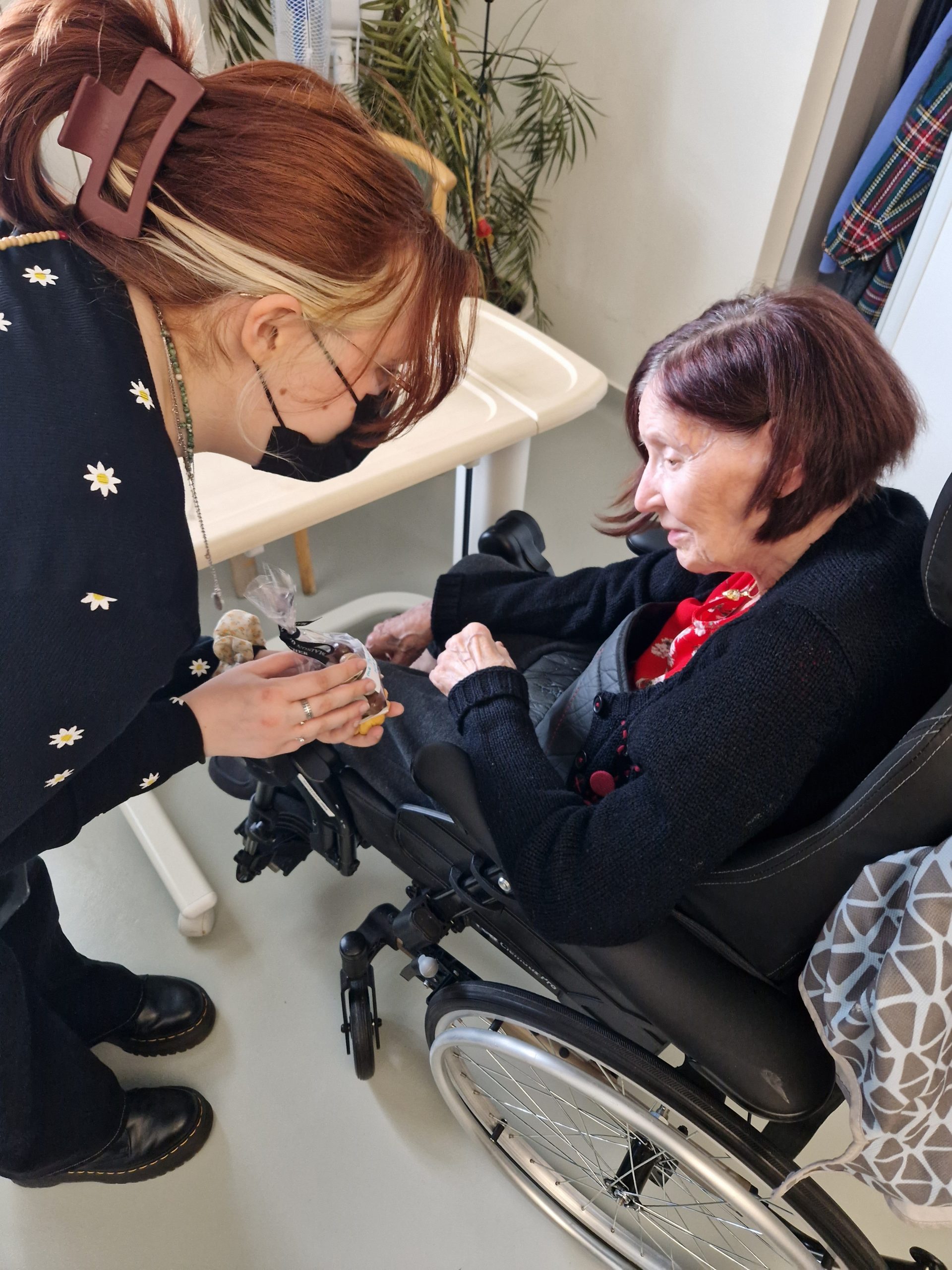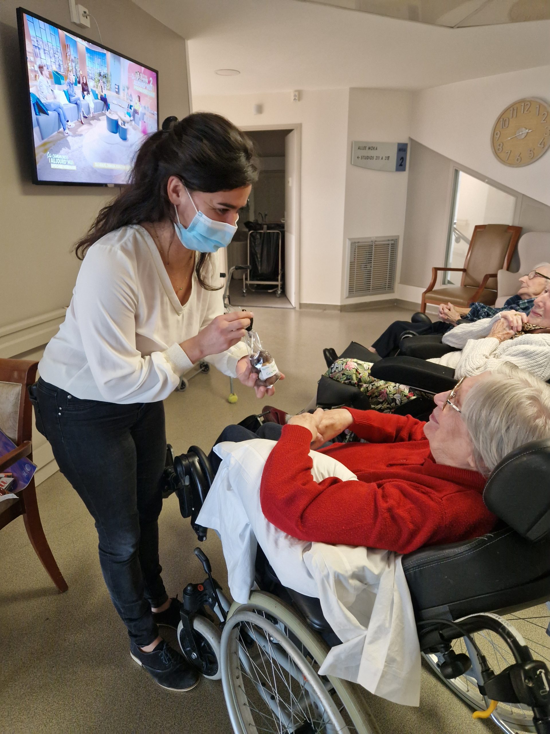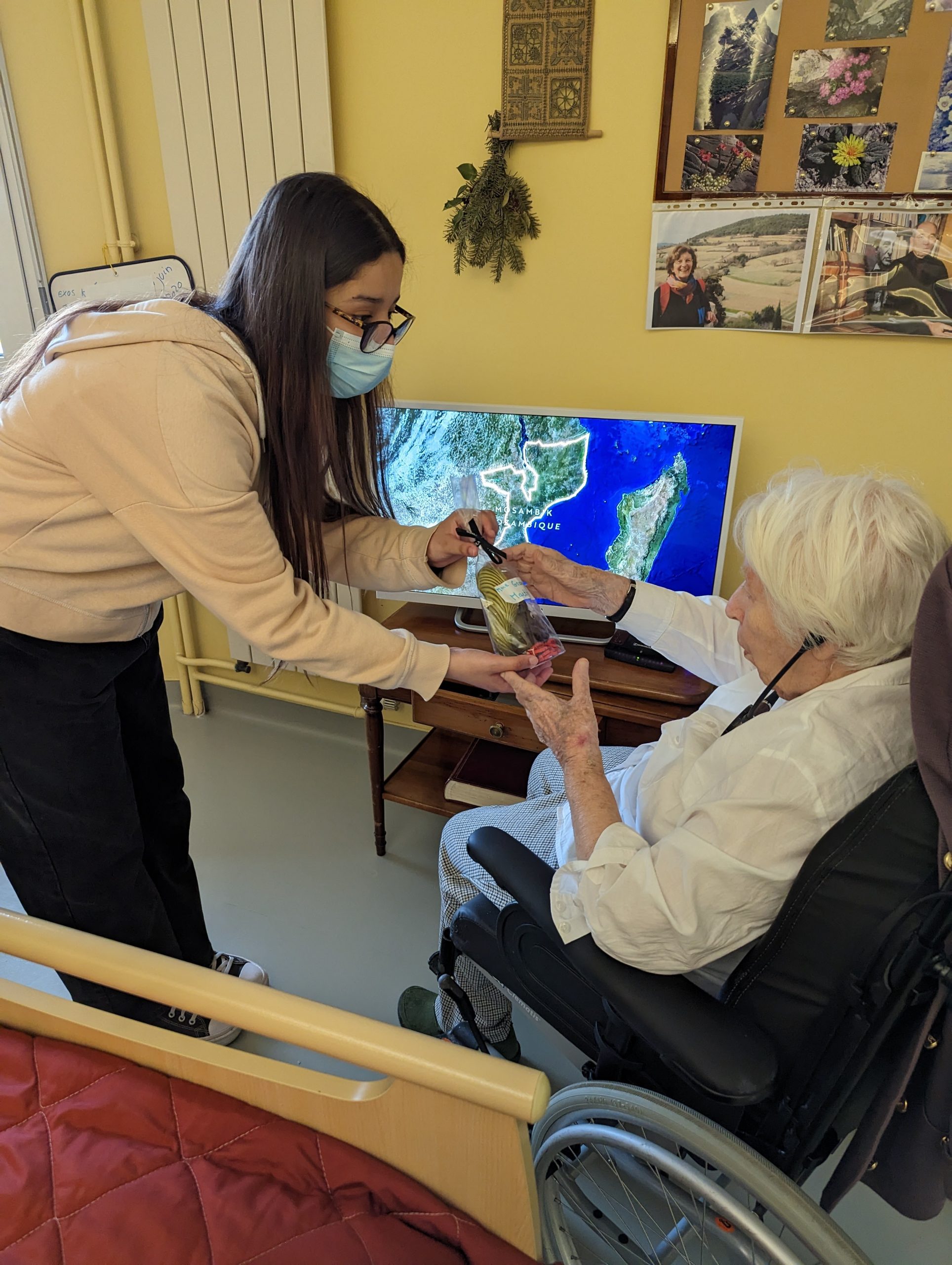 Quelques jours après la célébration de Pâques, l’EHPAD Les Amandines était toujours dans l’atmosphère festive de cette fête traditionnelle. Les résidents attendaient avec impatience cette distribution de chocolats. Cette année, Mme MARCON a fait une commande auprès de la chocolaterie Gaucher dans la Loire. Les deux services civiques Chloé et Feyza, Clara et les professionnels ont distribué mercredi 12 avril avec joie les chocolats apportant une douce dose de gourmandise. Ce moment convivial a permis aux résidents de partager des souvenirs, d’échanger des anecdotes et de savourer ces délicieuses sucreries dans une bonne ambiance.