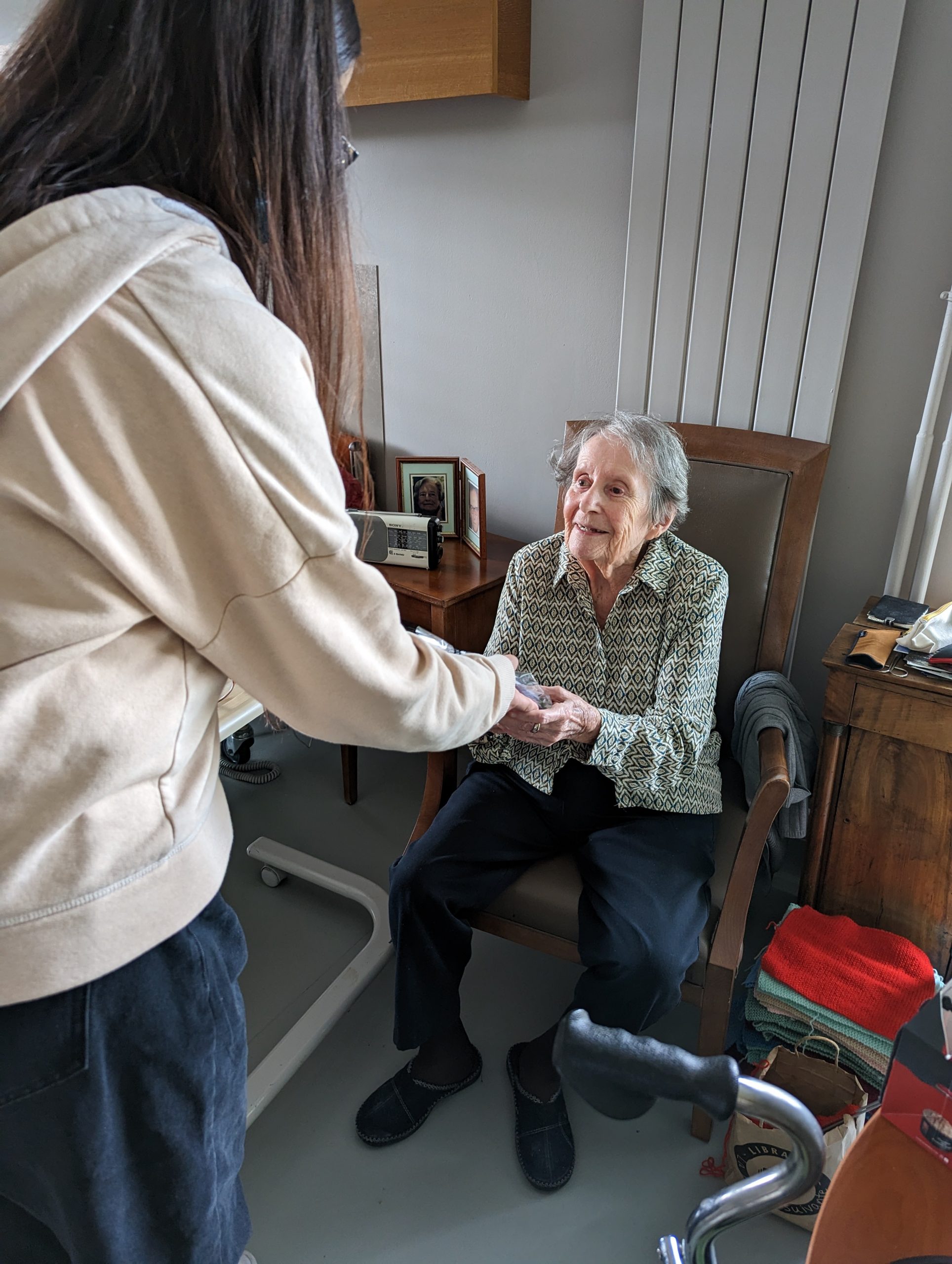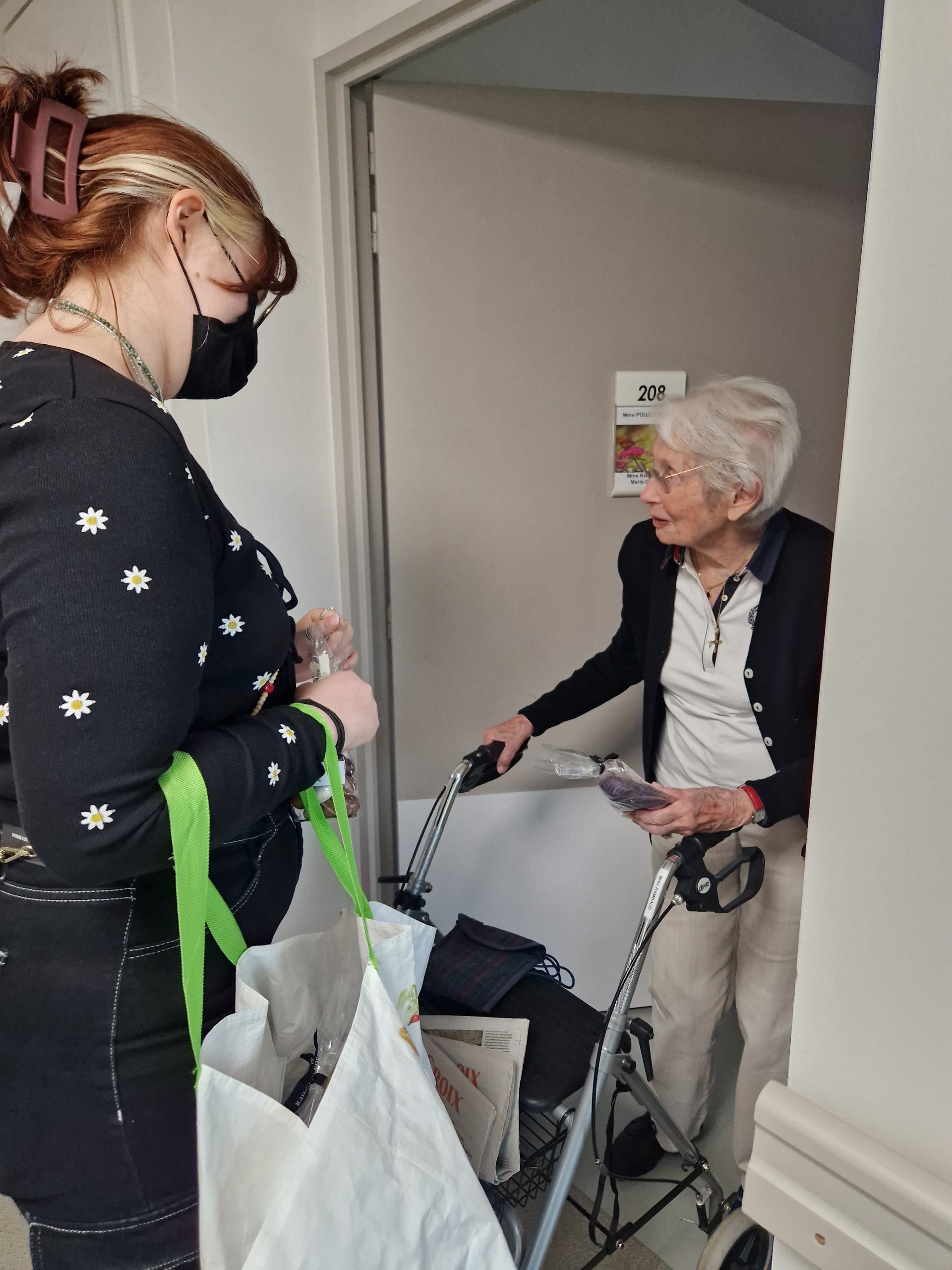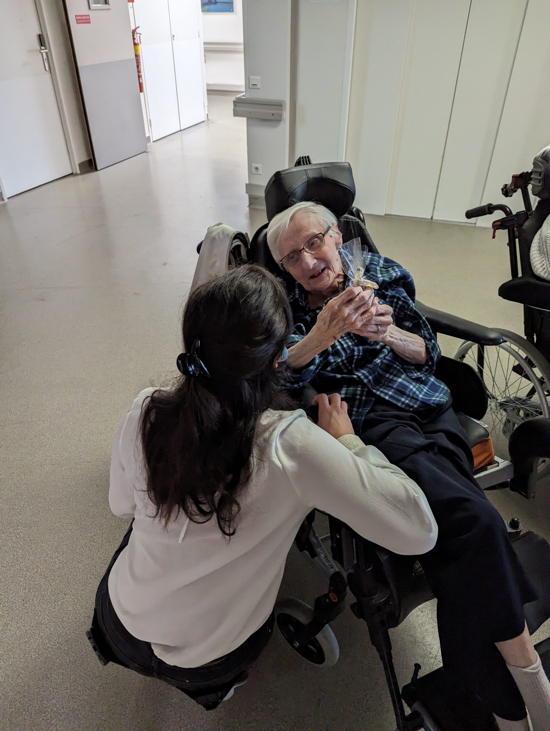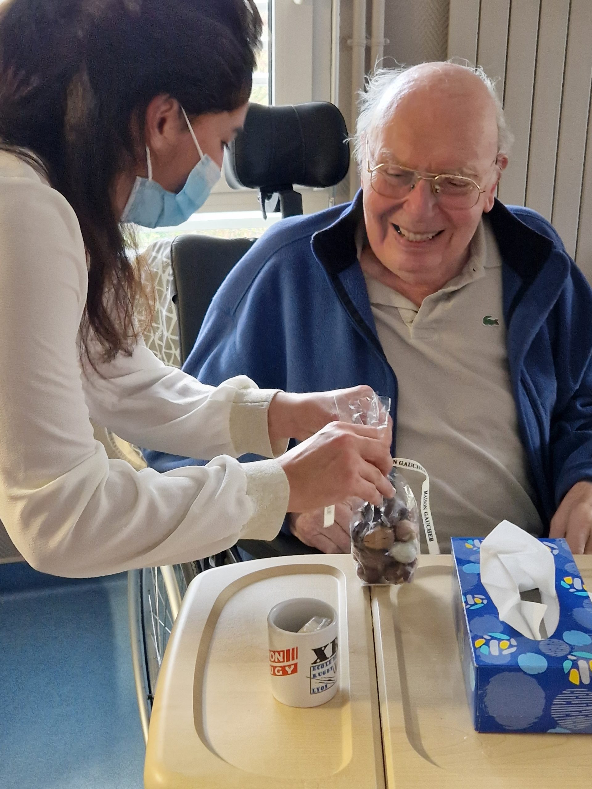 Quelques jours après la célébration de Pâques, l’EHPAD Les Amandines était toujours dans l’atmosphère festive de cette fête traditionnelle. Les résidents attendaient avec impatience cette distribution de chocolats. Cette année, Mme MARCON a fait une commande auprès de la chocolaterie Gaucher dans la Loire. Les deux services civiques Chloé et Feyza, Clara et les professionnels ont distribué mercredi 12 avril avec joie les chocolats apportant une douce dose de gourmandise. Ce moment convivial a permis aux résidents de partager des souvenirs, d’échanger des anecdotes et de savourer ces délicieuses sucreries dans une bonne ambiance.