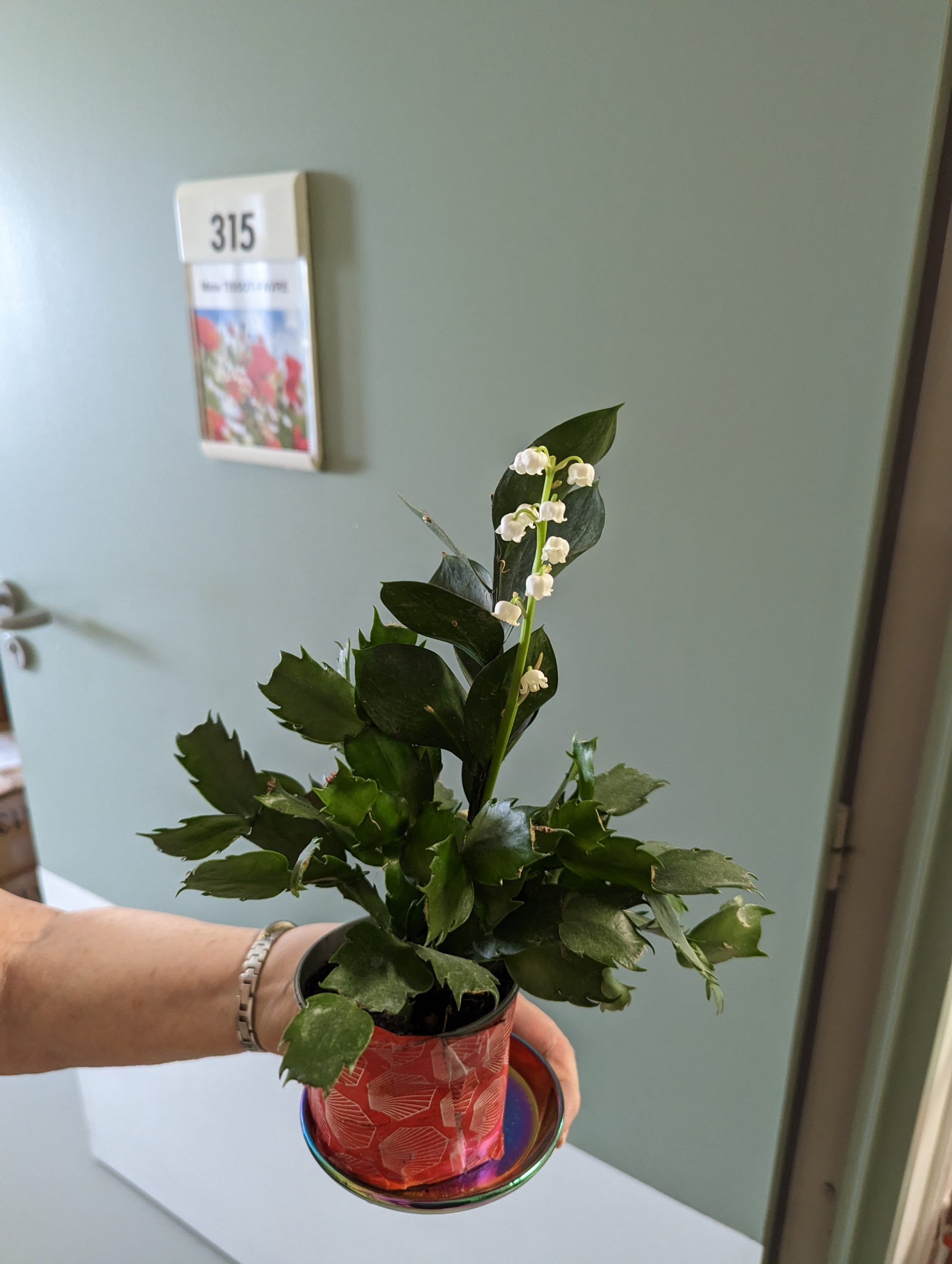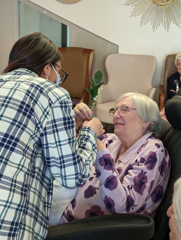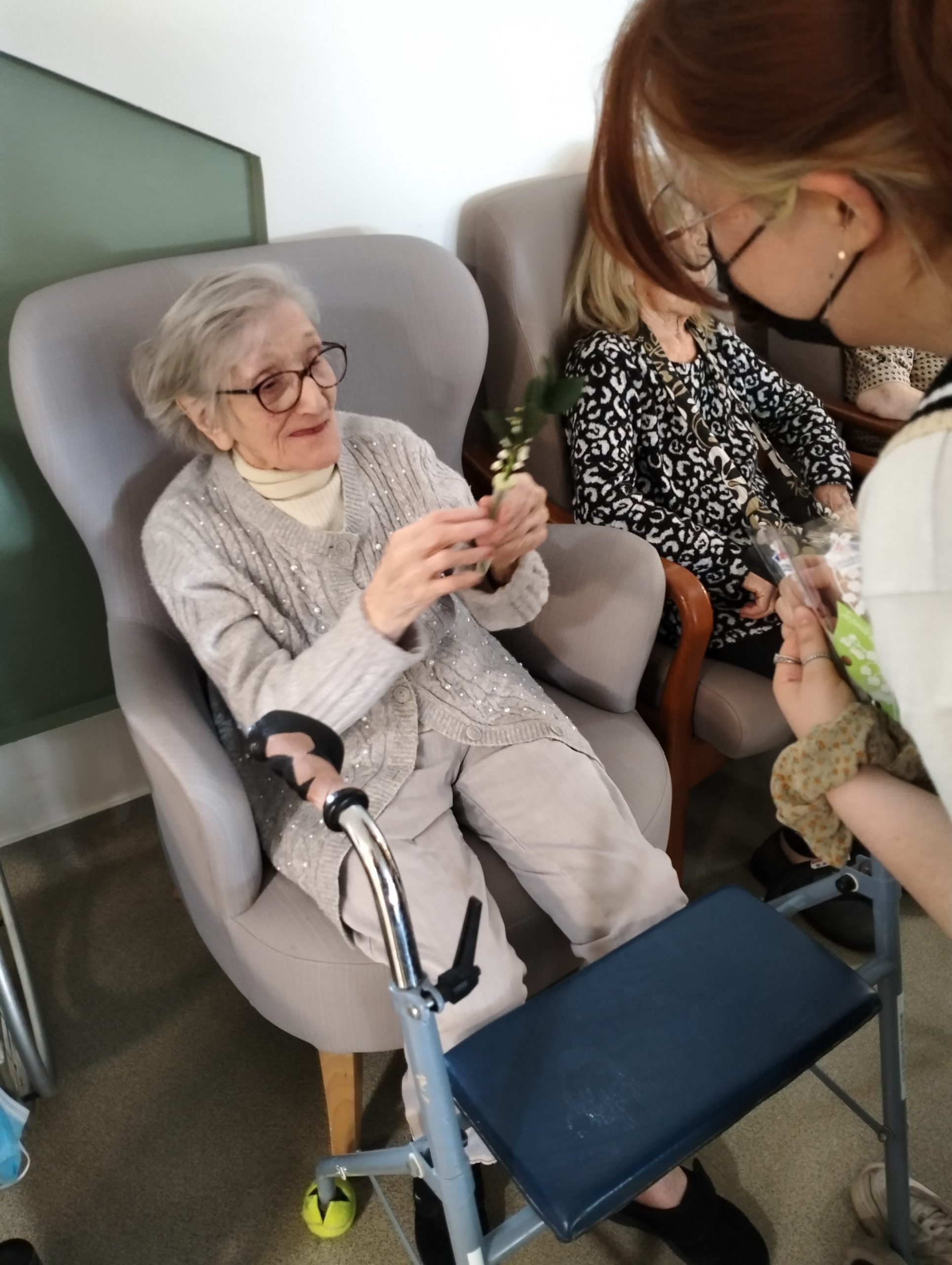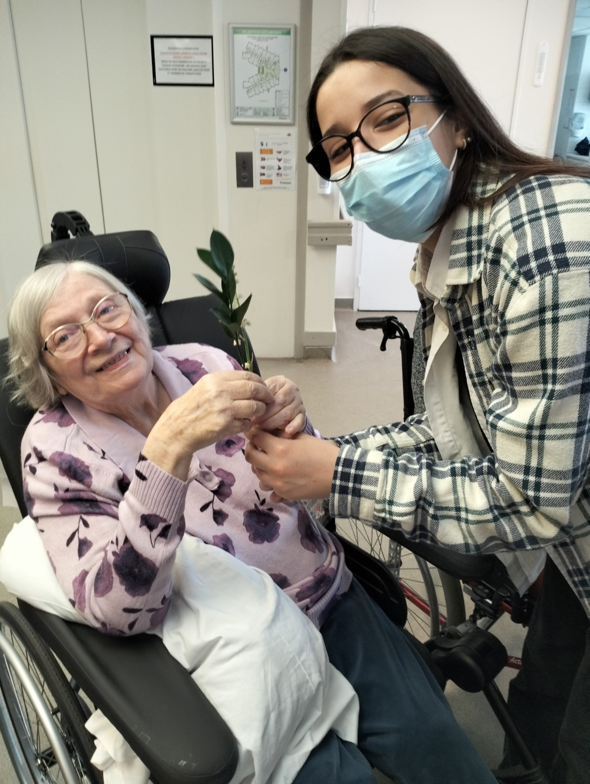 Vendredi 28 avril, une distribution de brins de muguet a été réalisée auprès des résidents par les deux services civiques Chloé et Feyza et Clara. Les douces odeurs du muguet ont égayé les résidents pour fêter le 1er mai en avance. Un moment de discussion et de convivialité dans la maison qui a ravi les résidents.