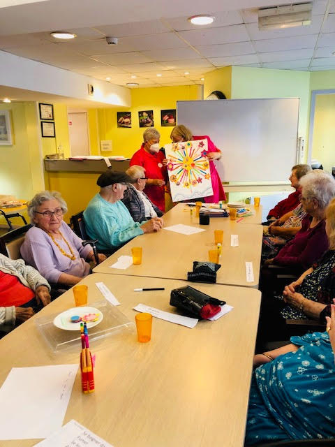 Nous avons ensuite rencontré des résidents de l’EHPAD l’Etoile du jour où nous nous sommes rendus deux fois dans la semaine pour participer à des ateliers sur les petites joies du quotidien pour confectionner un arbre en activité manuelle. Ces ateliers nous ont permis d’échanger avec d’autres résidents. Nous avons apprécié rencontrer d’autres personnes que nous allons par la suite inviter aux Amandines.