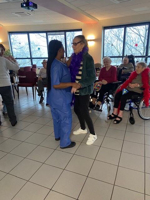 Le 31 décembre après-midi, nous avons organisé un goûter festif avec de la musique et des danses.