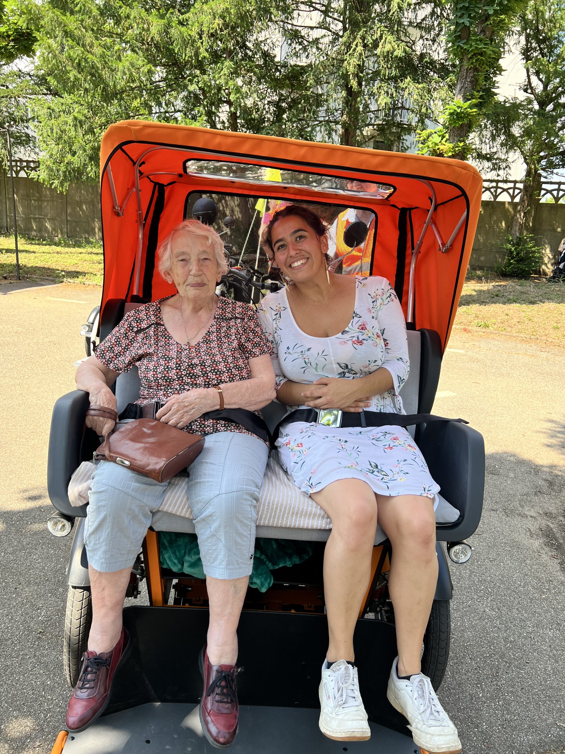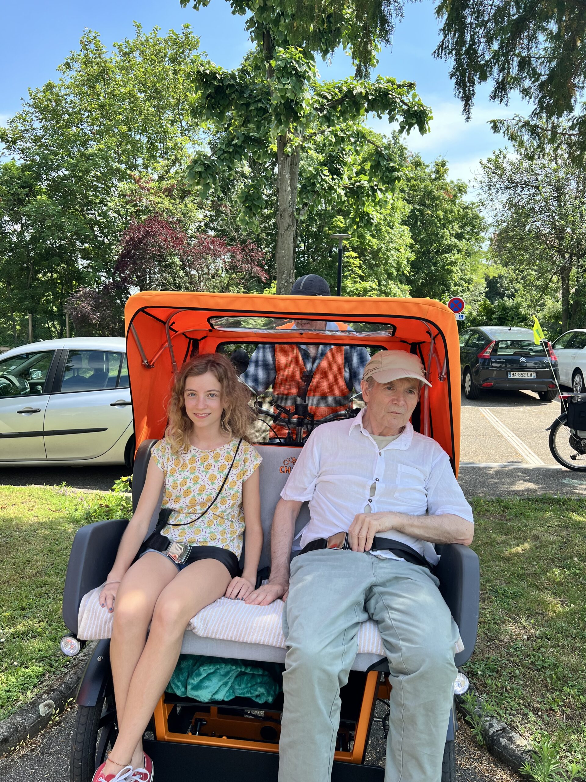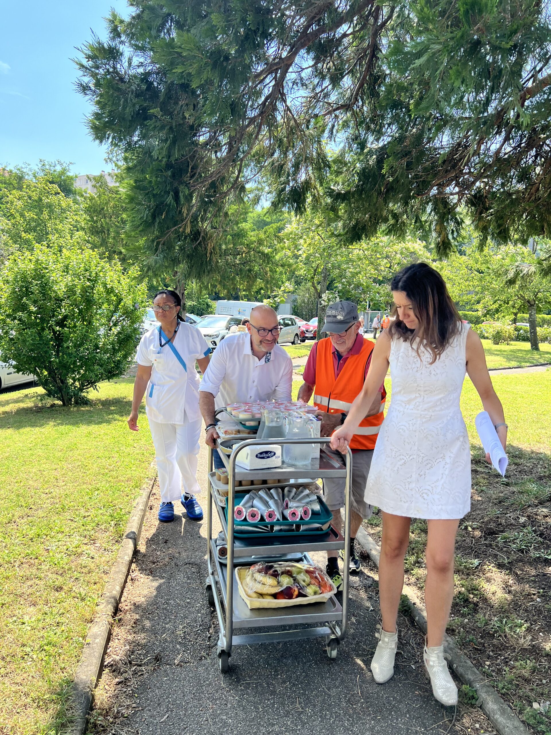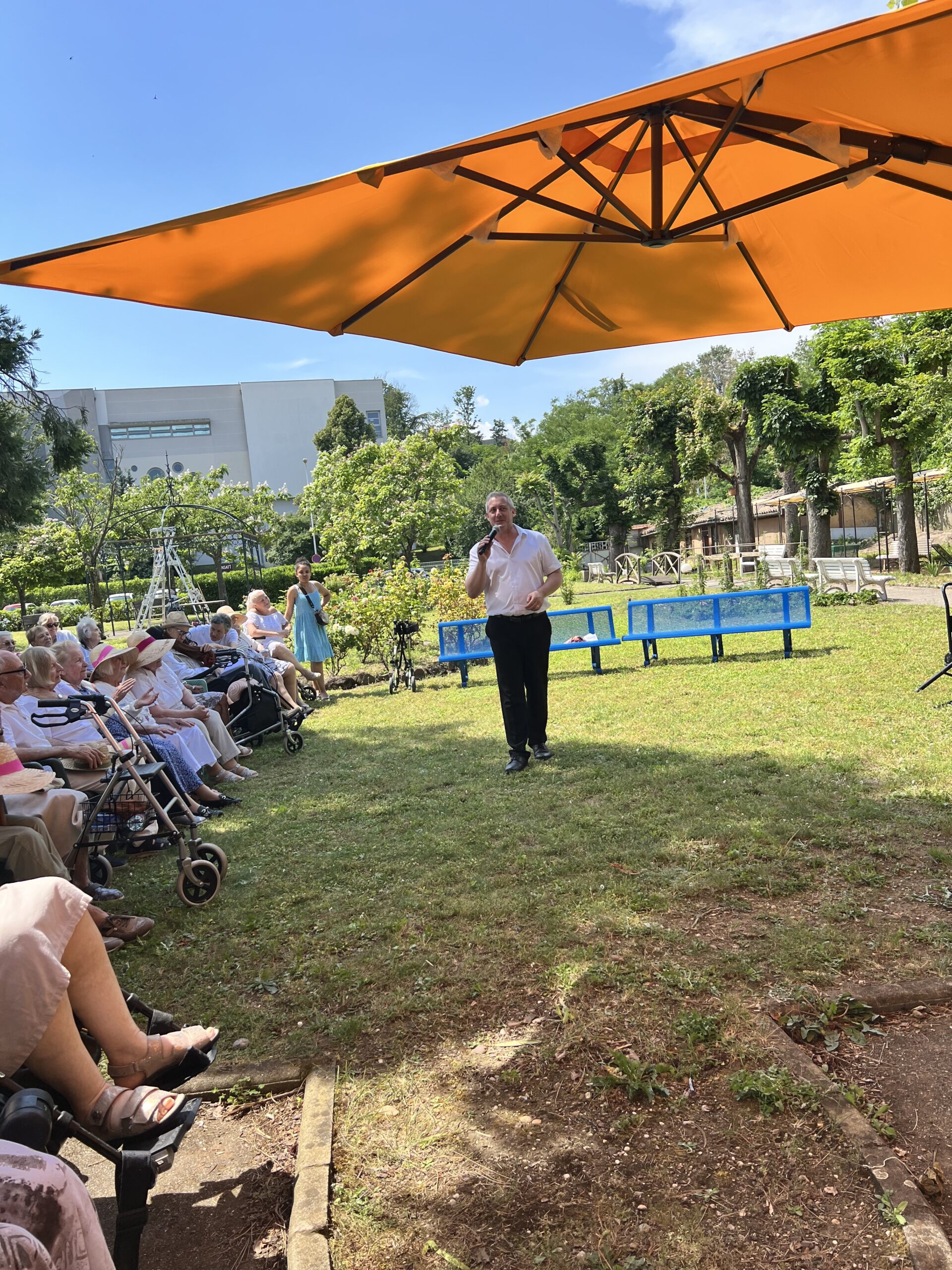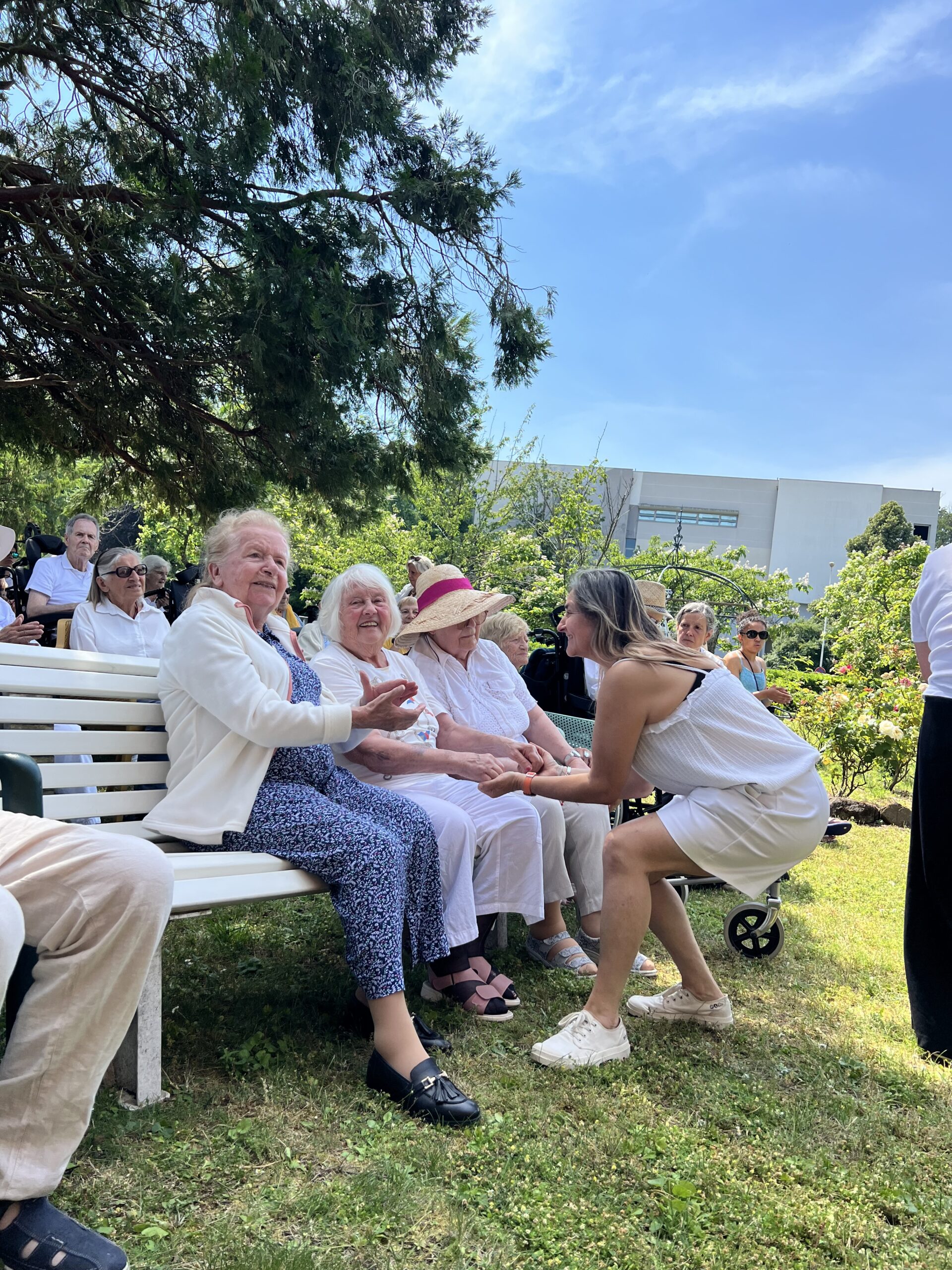 Pour notre fête de l’été, un chanteur apprécié des résidents Nicolas Reyno est venu animer l’après-midi avec des medleys de chansons françaises des années 60-80. Code couleur blanc cette année. Les familles, résidents et salariés ont joué le jeu ce qui a donné un rendu très sympa. Nous avons invité à cette fête, les bénévoles de l’association A vélo sans âge pour proposer des balades à vélo dans le parc sur l’après-midi aux résidents et familles. Pour le goûter, salades de fruits et glaces proposées à tout le monde, ce qui a ravi les gourmands.