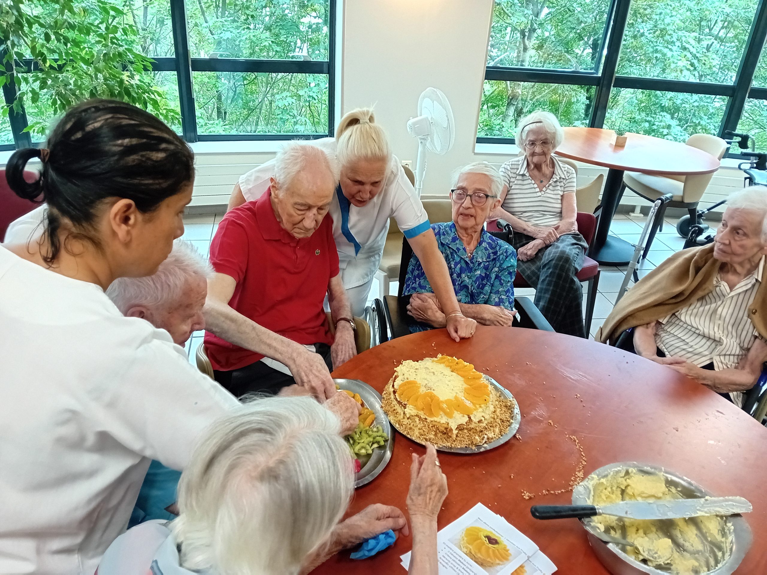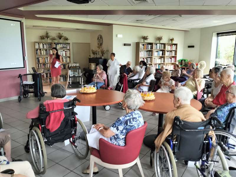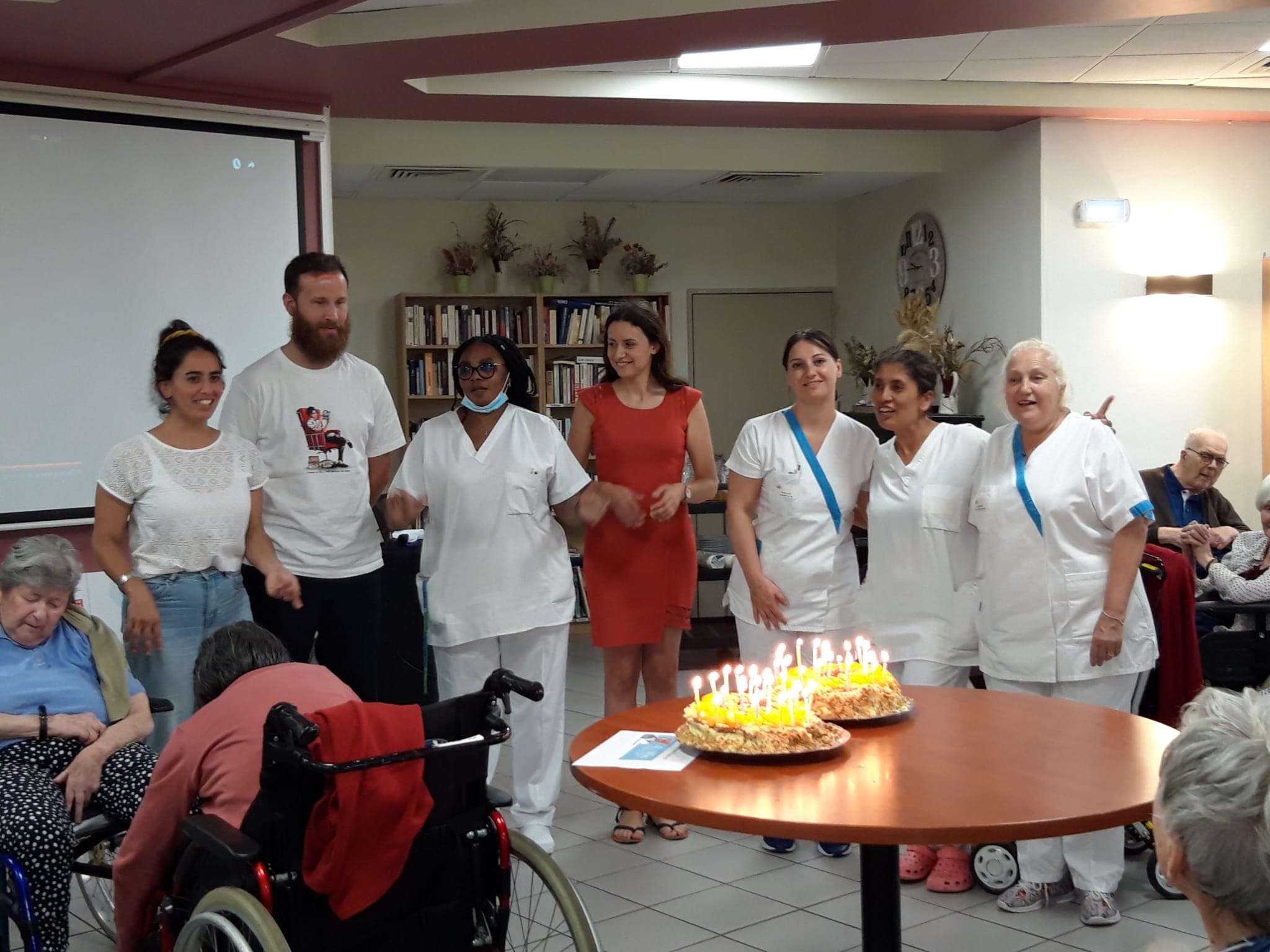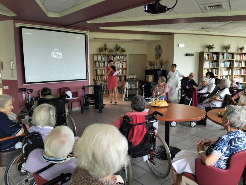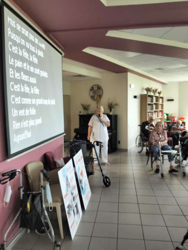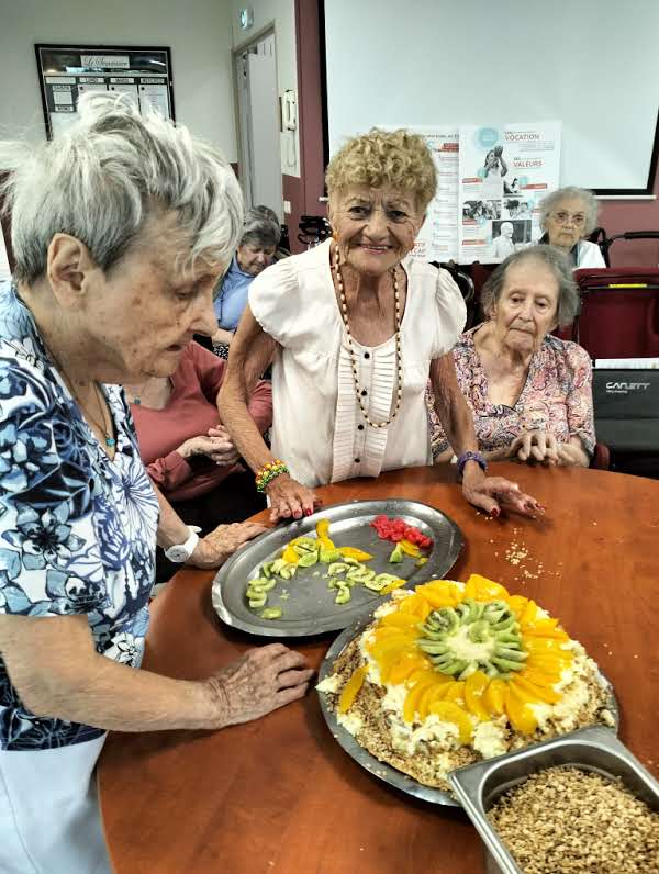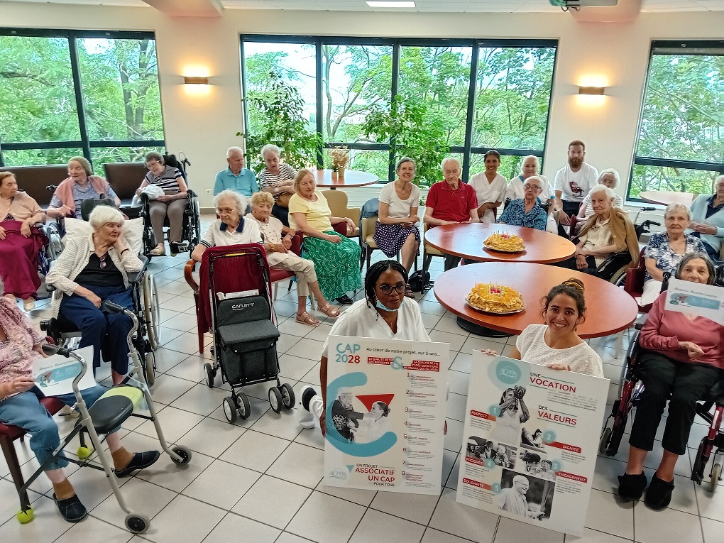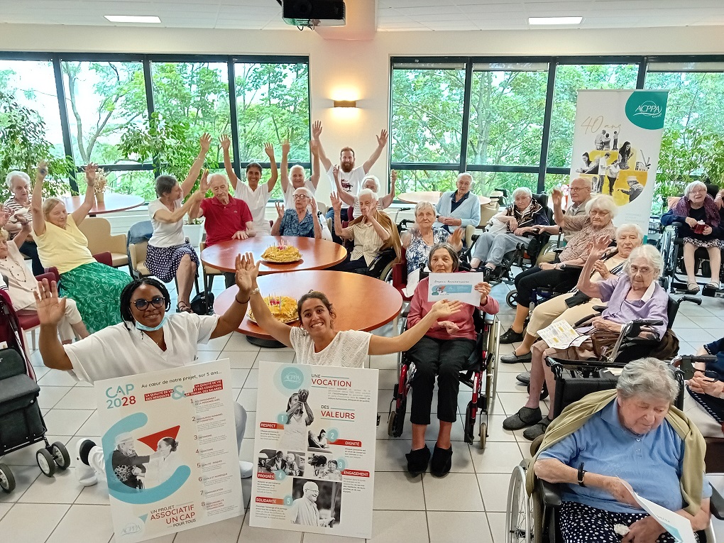 Le groupe ACPPA dont fait partie les Amandines célèbre ses 40 ans d’existence. Pour l’occasion, nous avons organisé une après-midi festive le vendredi 9 juin. L’après-midi a débuté par la préparation du goûter en atelier participatif de deux gâteaux à la génoise, crème pâtissière et fruits. Tous les résidents ont participé à cette préparation. Une présentation du nouveau projet associatif CAP2028 du groupe a été faite par Mme MARCON. Puis, nous avons diffusé la vidéo du film d’anniversaire du groupe ACPPA. On y voit des salariés, résidents et service civique des Amandines. Enfin, nous avons fini l’après-midi en soufflant les 40 bougies et en chantant des chansons en karaoké. Une superbe ambiance, un très beau moment passé tous ensemble !
