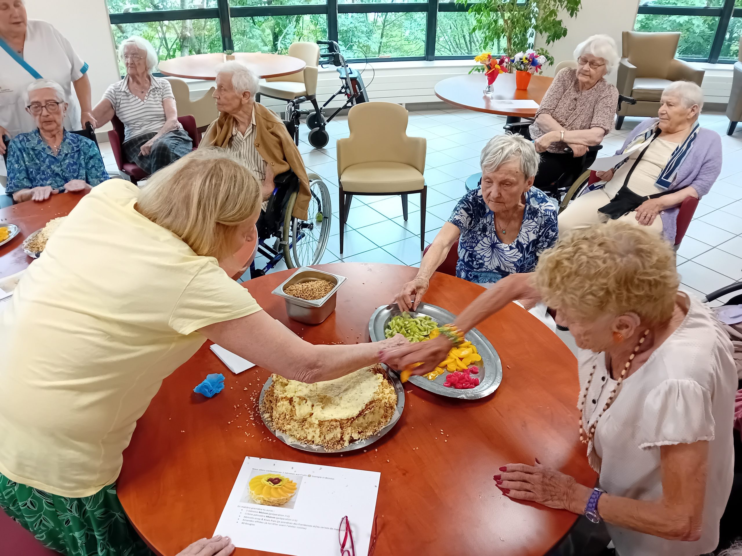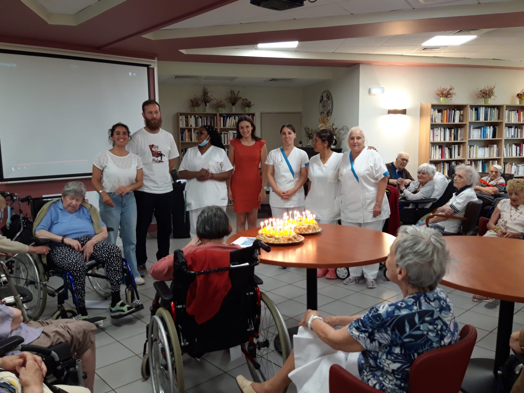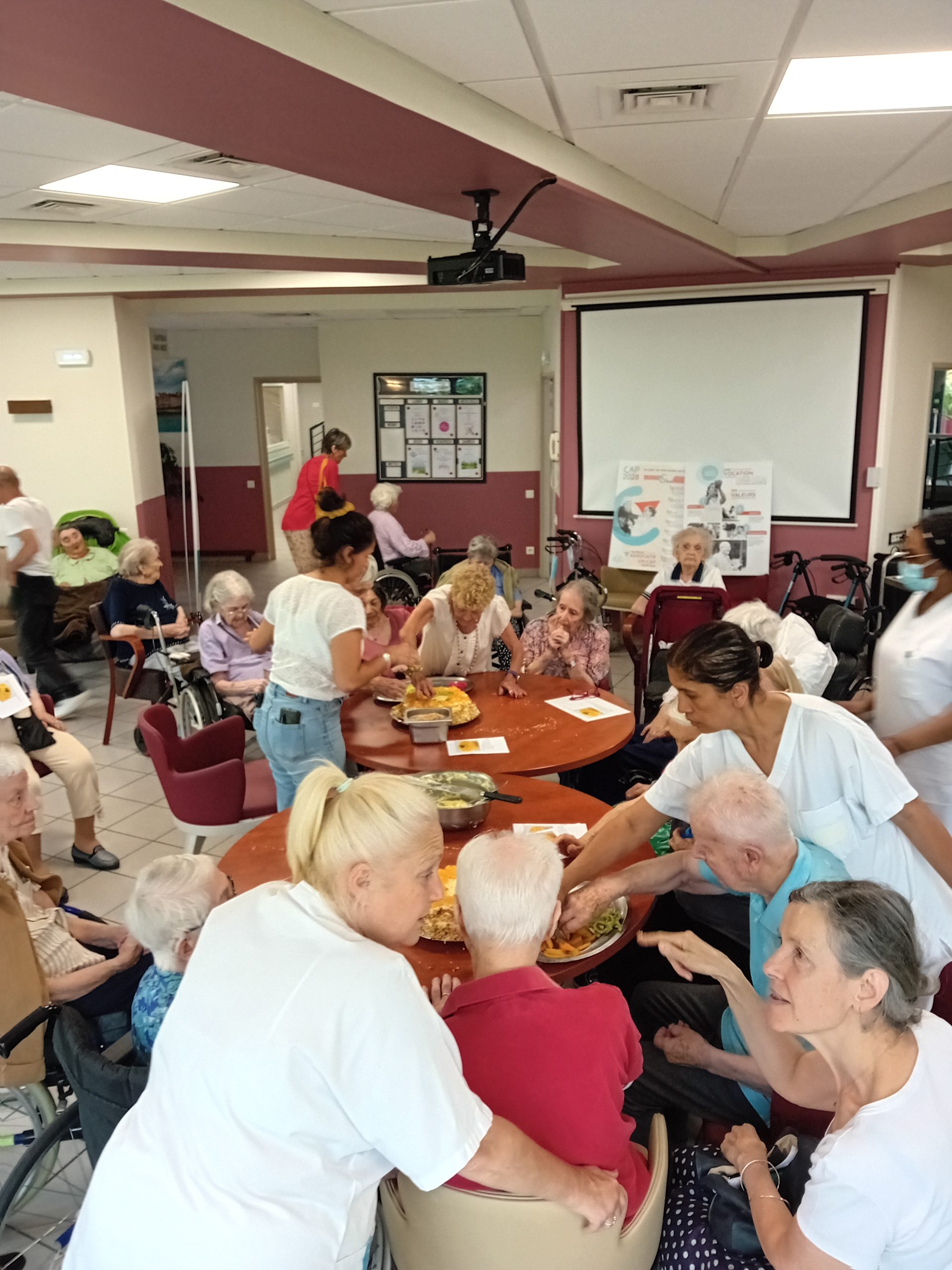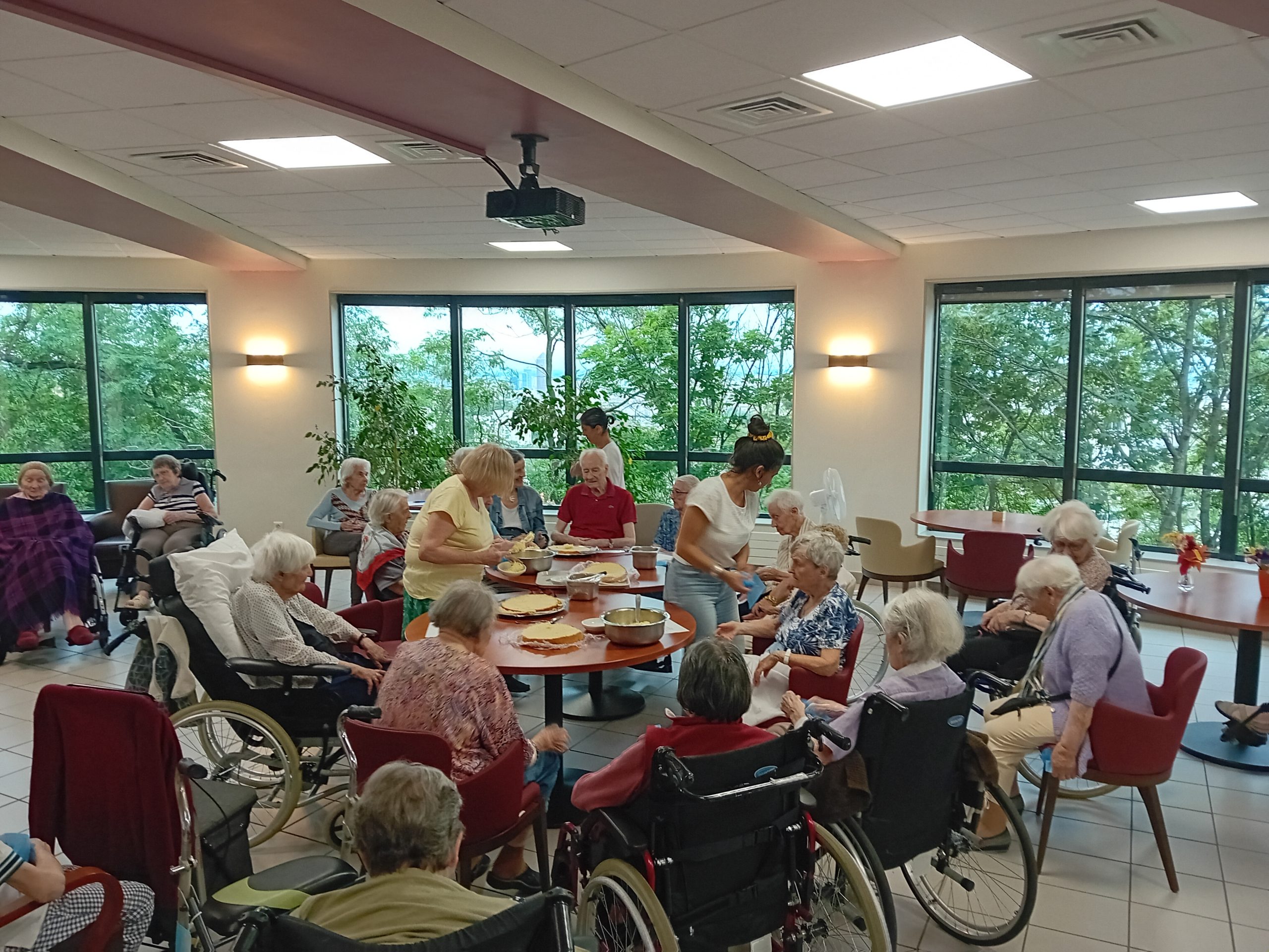 Le groupe ACPPA dont fait partie les Amandines célèbre ses 40 ans d’existence. Pour l’occasion, nous avons organisé une après-midi festive le vendredi 9 juin. L’après-midi a débuté par la préparation du goûter en atelier participatif de deux gâteaux à la génoise, crème pâtissière et fruits. Tous les résidents ont participé à cette préparation. Une présentation du nouveau projet associatif CAP2028 du groupe a été faite par Mme MARCON. Puis, nous avons diffusé la vidéo du film d’anniversaire du groupe ACPPA. On y voit des salariés, résidents et service civique des Amandines. Enfin, nous avons fini l’après-midi en soufflant les 40 bougies et en chantant des chansons en karaoké. Une superbe ambiance, un très beau moment passé tous ensemble !