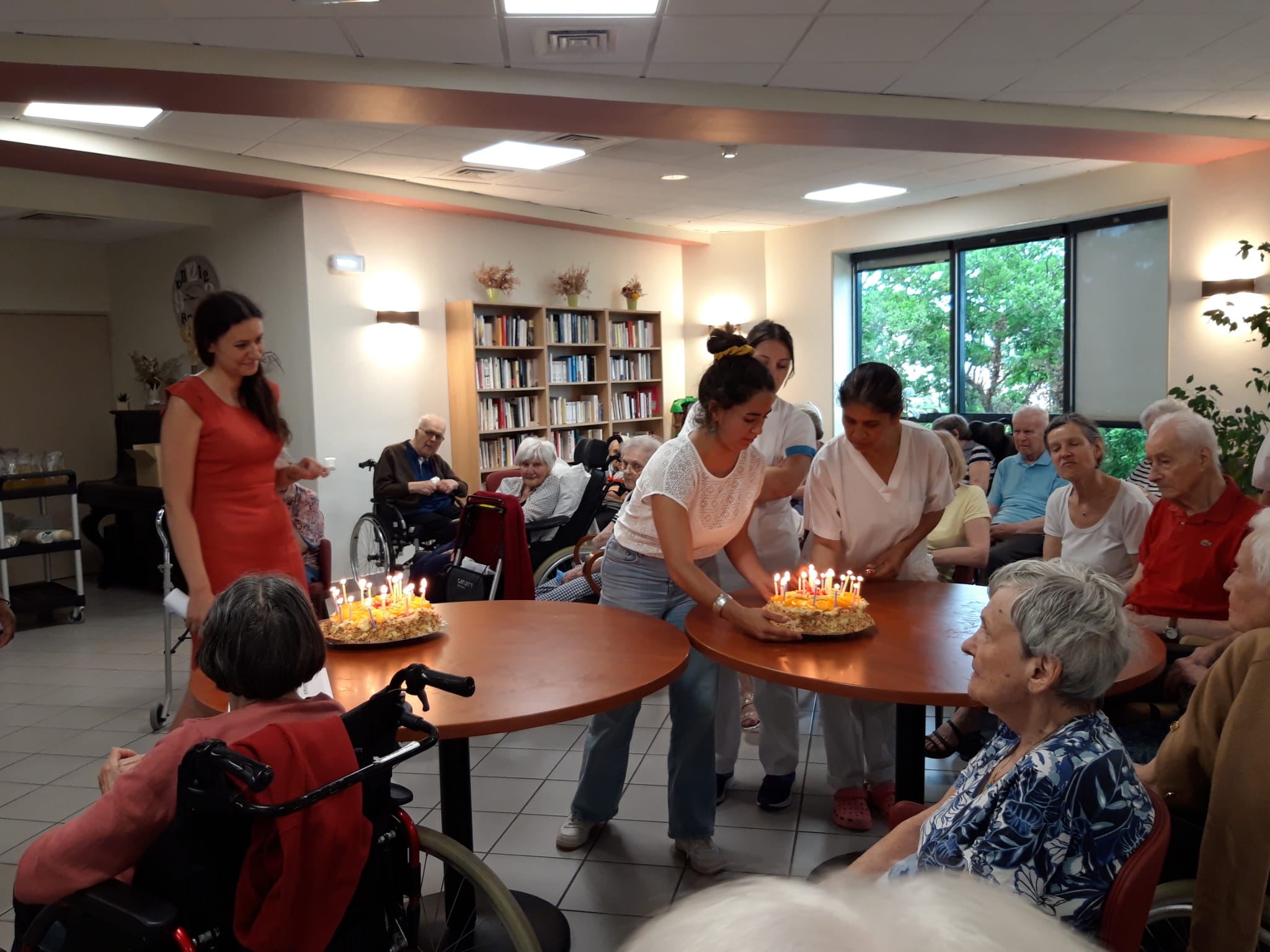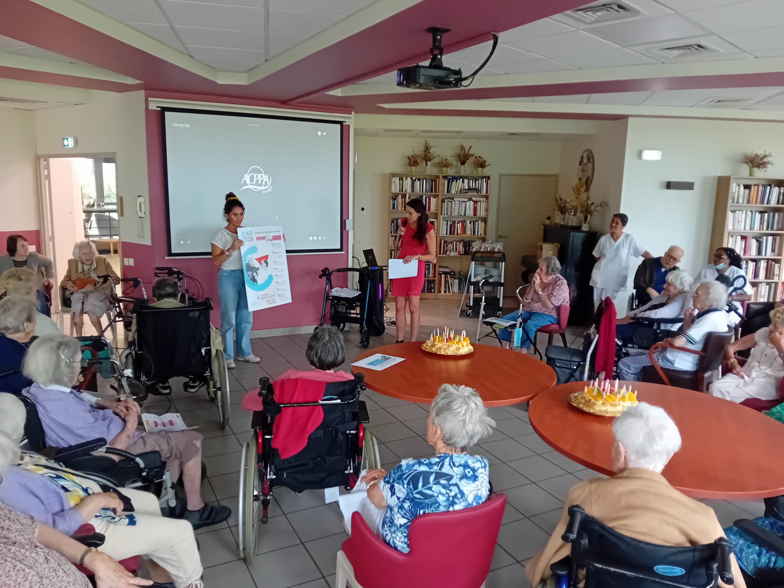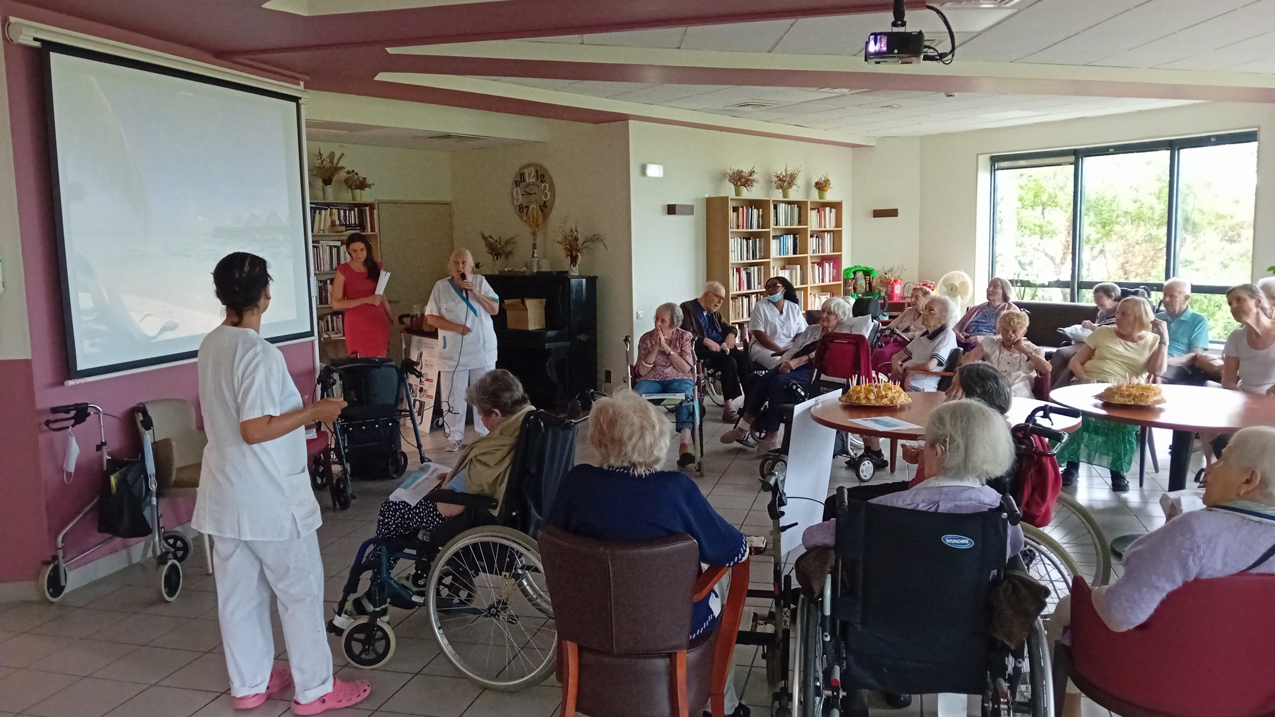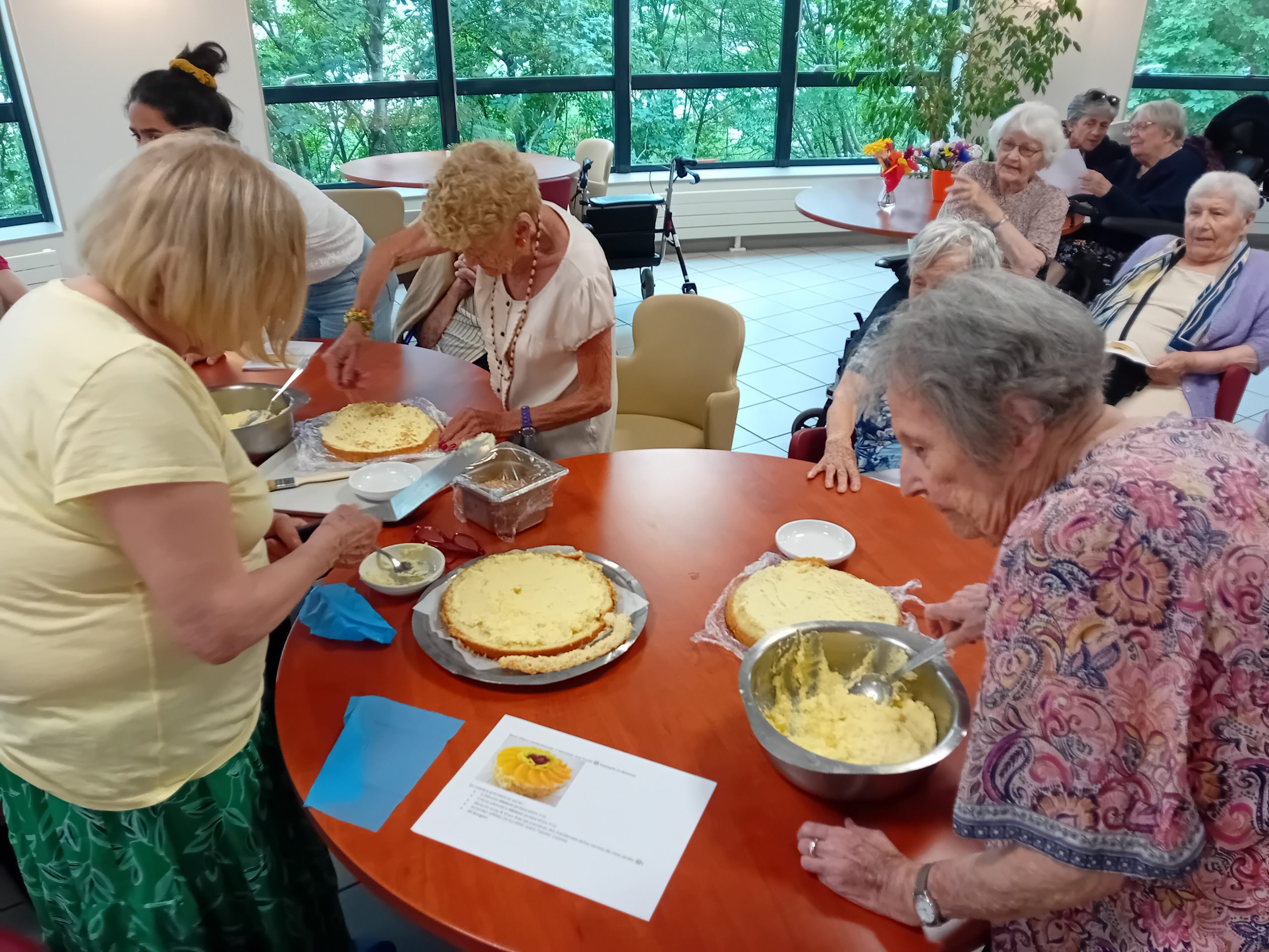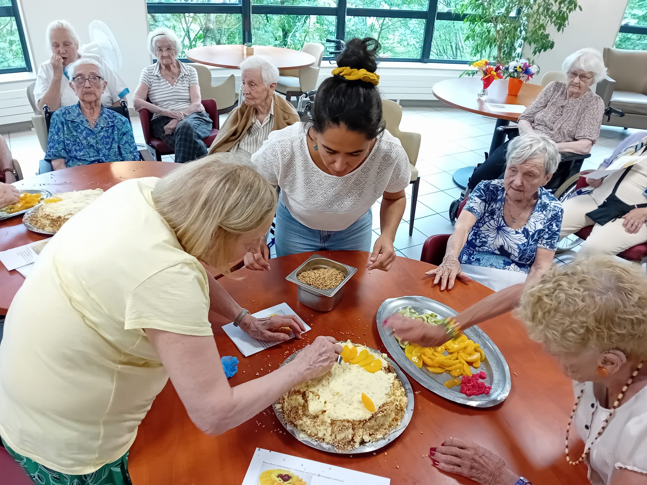 Le groupe ACPPA dont fait partie les Amandines célèbre ses 40 ans d’existence. Pour l’occasion, nous avons organisé une après-midi festive le vendredi 9 juin. L’après-midi a débuté par la préparation du goûter en atelier participatif de deux gâteaux à la génoise, crème pâtissière et fruits. Tous les résidents ont participé à cette préparation. Une présentation du nouveau projet associatif CAP2028 du groupe a été faite par Mme MARCON. Puis, nous avons diffusé la vidéo du film d’anniversaire du groupe ACPPA. On y voit des salariés, résidents et service civique des Amandines. Enfin, nous avons fini l’après-midi en soufflant les 40 bougies et en chantant des chansons en karaoké. Une superbe ambiance, un très beau moment passé tous ensemble !