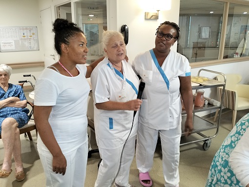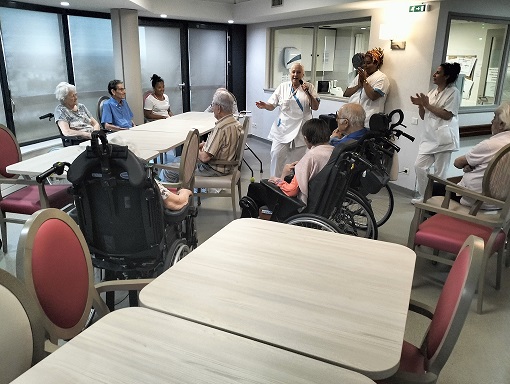 Mardi 22 août, les résidents ont fêté les anniversaires dans les salles climatisées des étages. Musique tout l’après-midi avec la distribution des cadeaux. Résidents, familles et salariés étaient contents de ce moment festif. Merci à Elisabeth d’avoir animé en chansons l’après-midi.
