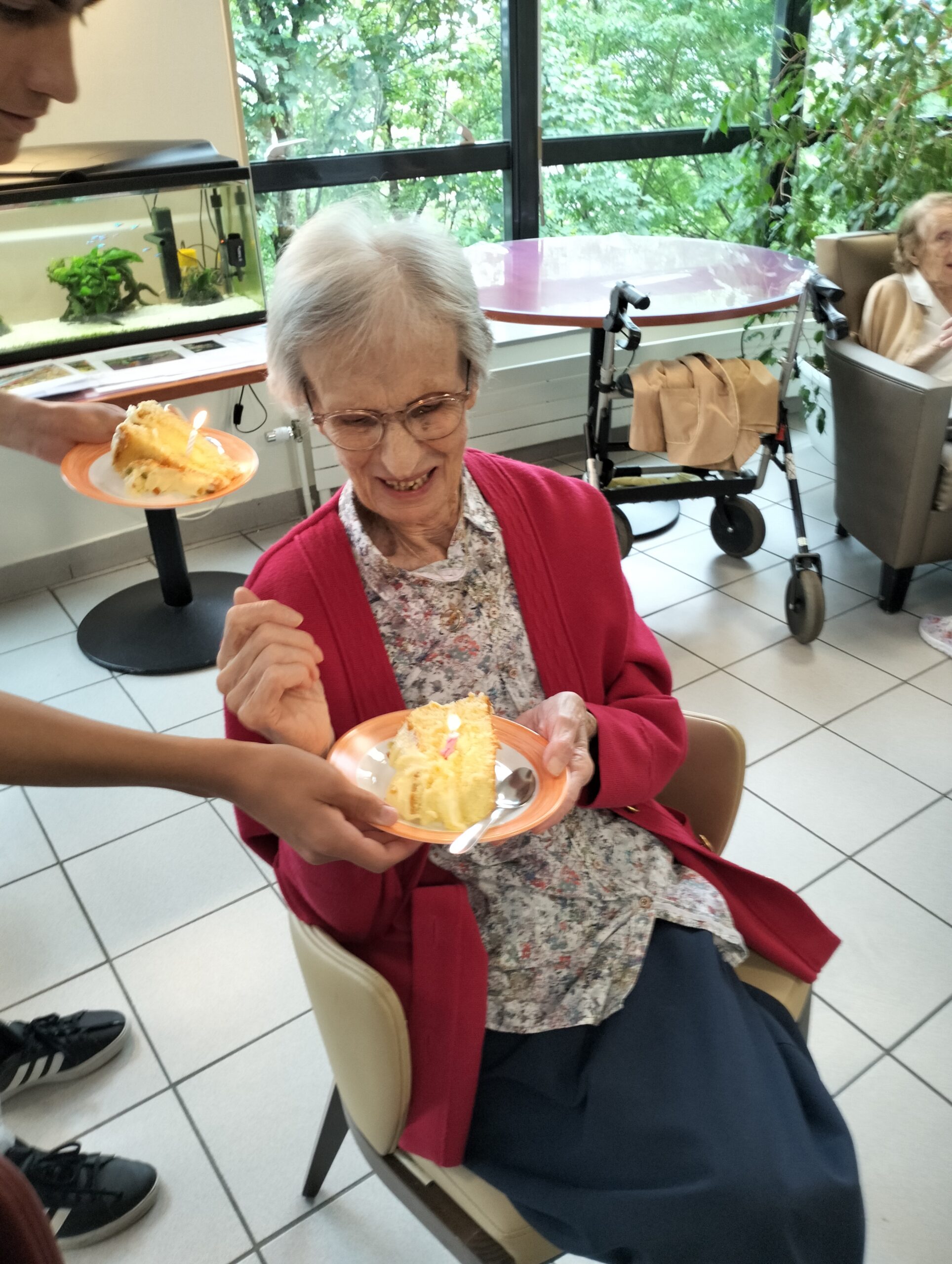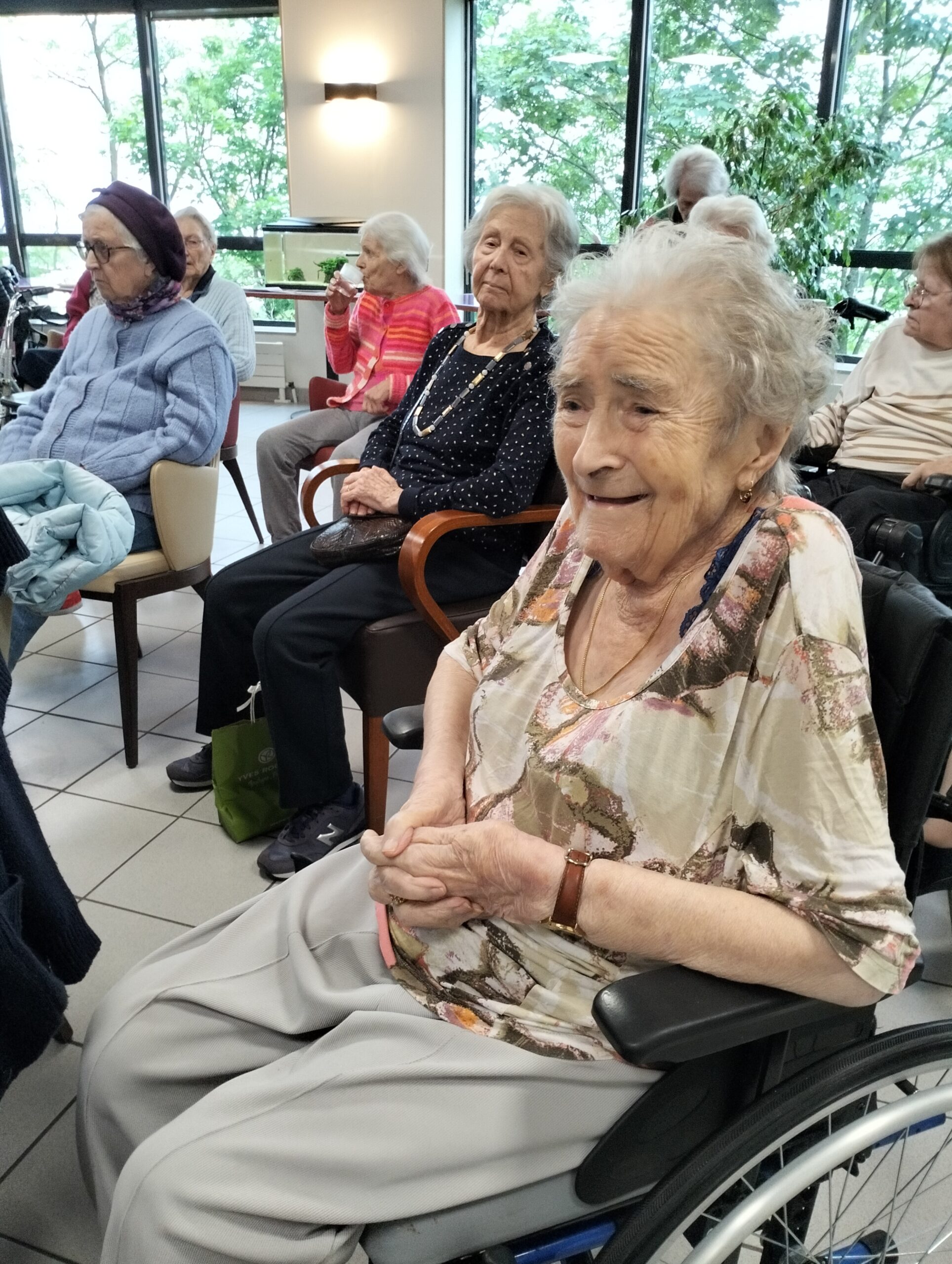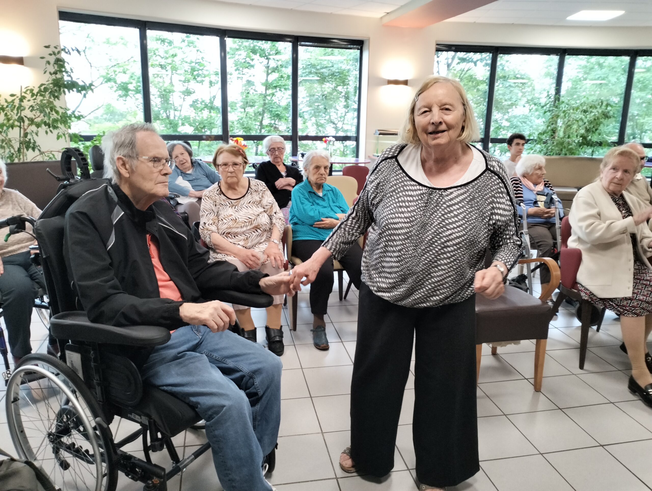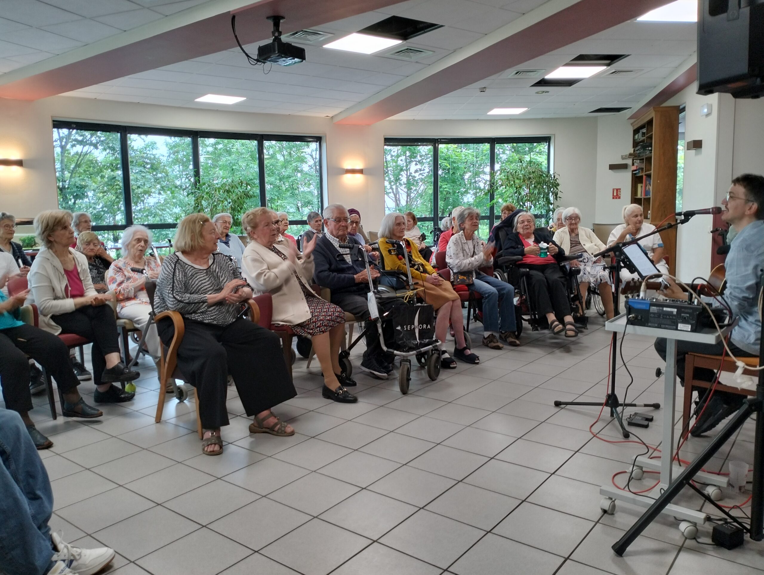 Pour les anniversaires du mois de mai, chants et guitare au programme. Résidents, familles et salariés sont heureux de se retrouver pour les fêtes des anniversaires. Merci aux cuisiniers des Amandines pour la préparation des gâteaux appréciés de tous.