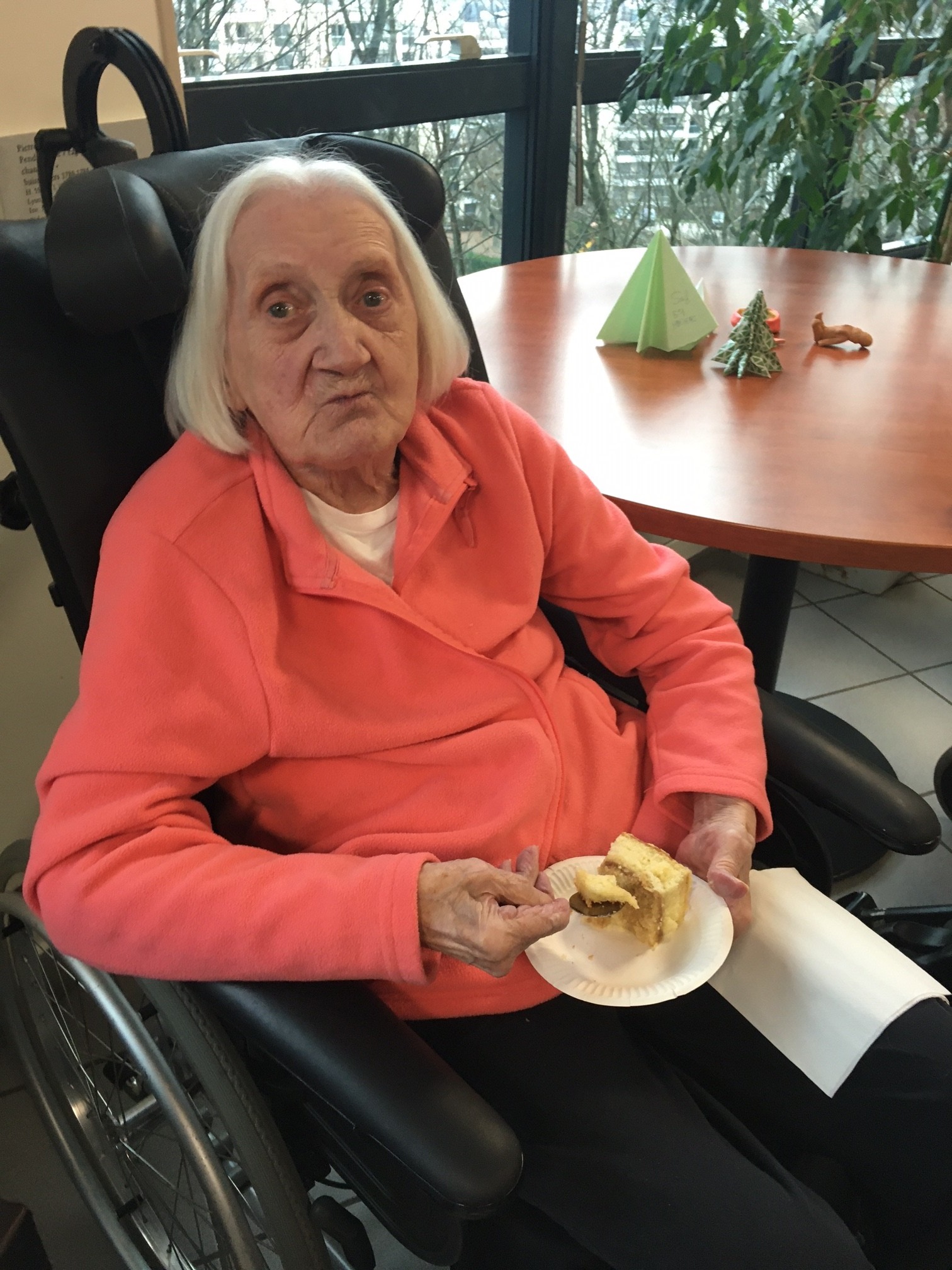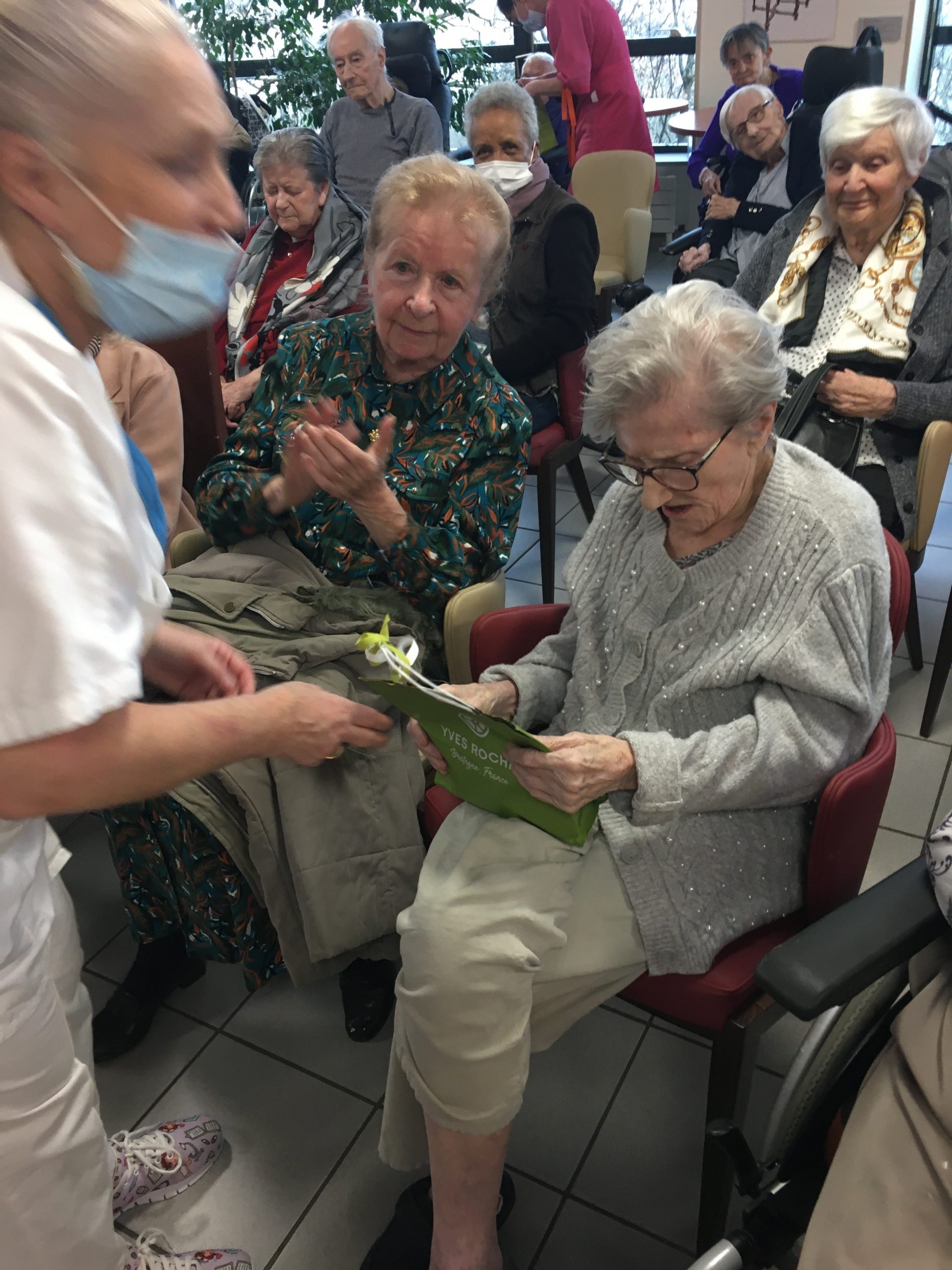 Sur le mois de janvier, nous avons fêté l’anniversaire de notre doyenne de la maison qui a eu 103 ans. Nous avons eu le plaisir d’accueillir un journaliste du Progrès pour un très bel article avec une très belle photographie d’elle et de son petit-fils qui vient lui rendre régulièrement visite aux Amandines.