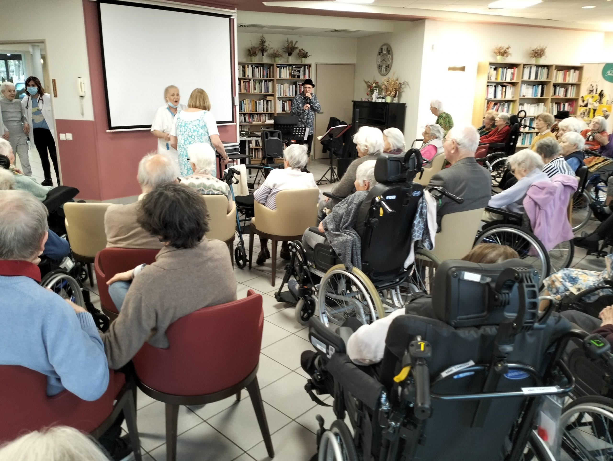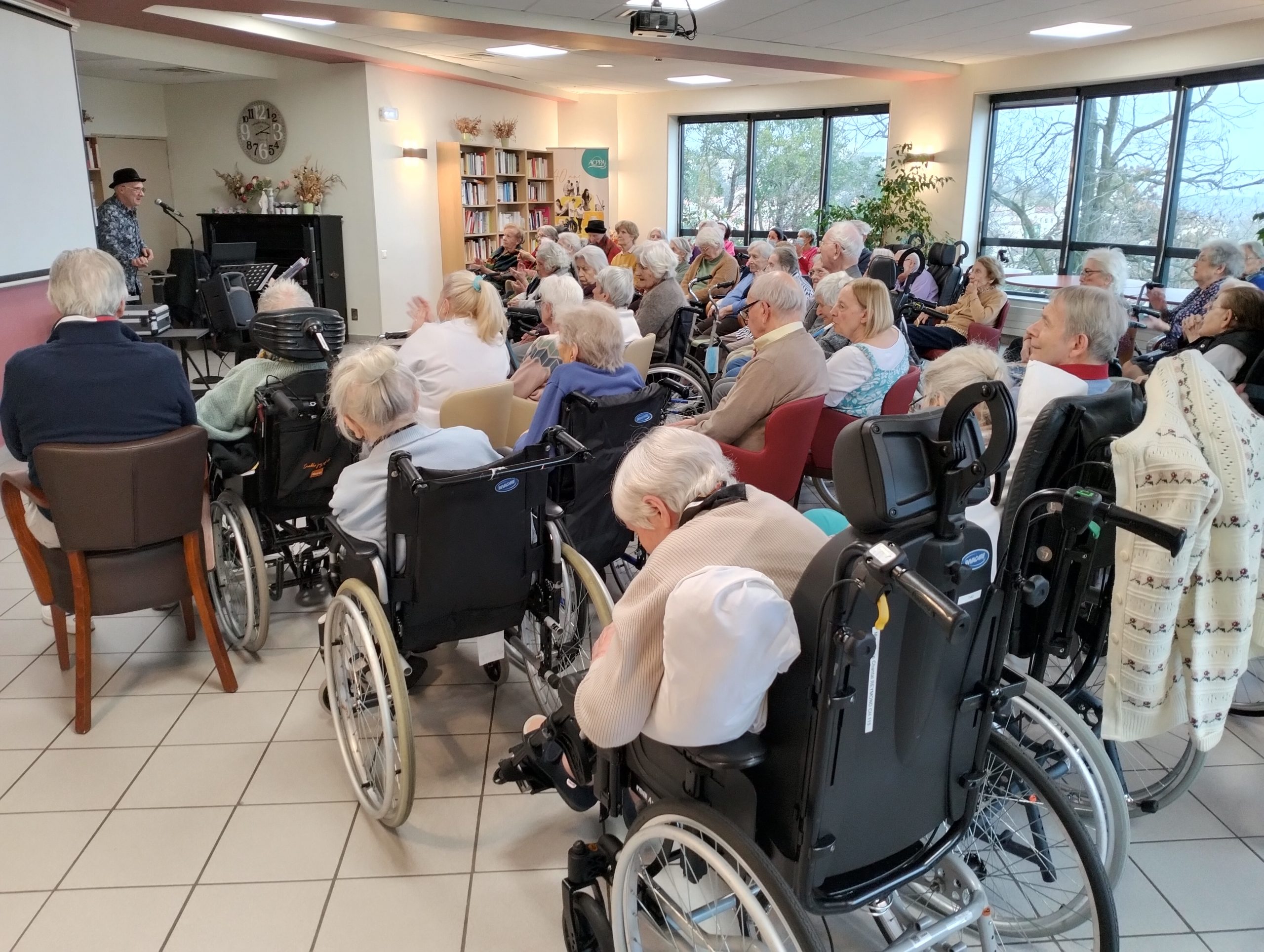 Pour la fête des anniversaires du mois de janvier, un chanteur est venu animer l’après-midi en revisitant de la musique française. Les résidents apprécient cette fête mensuelle qui permet de se réunir dans la joie et de souhaiter les anniversaires. Ce mois-ci, six résidents étaient à l’honneur. Une bonne charlotte à l’ananas et à la mangue a été préparée par nos cuisiniers. Un après-midi très sympathique !