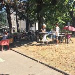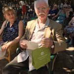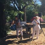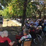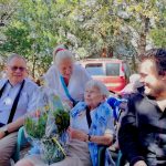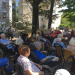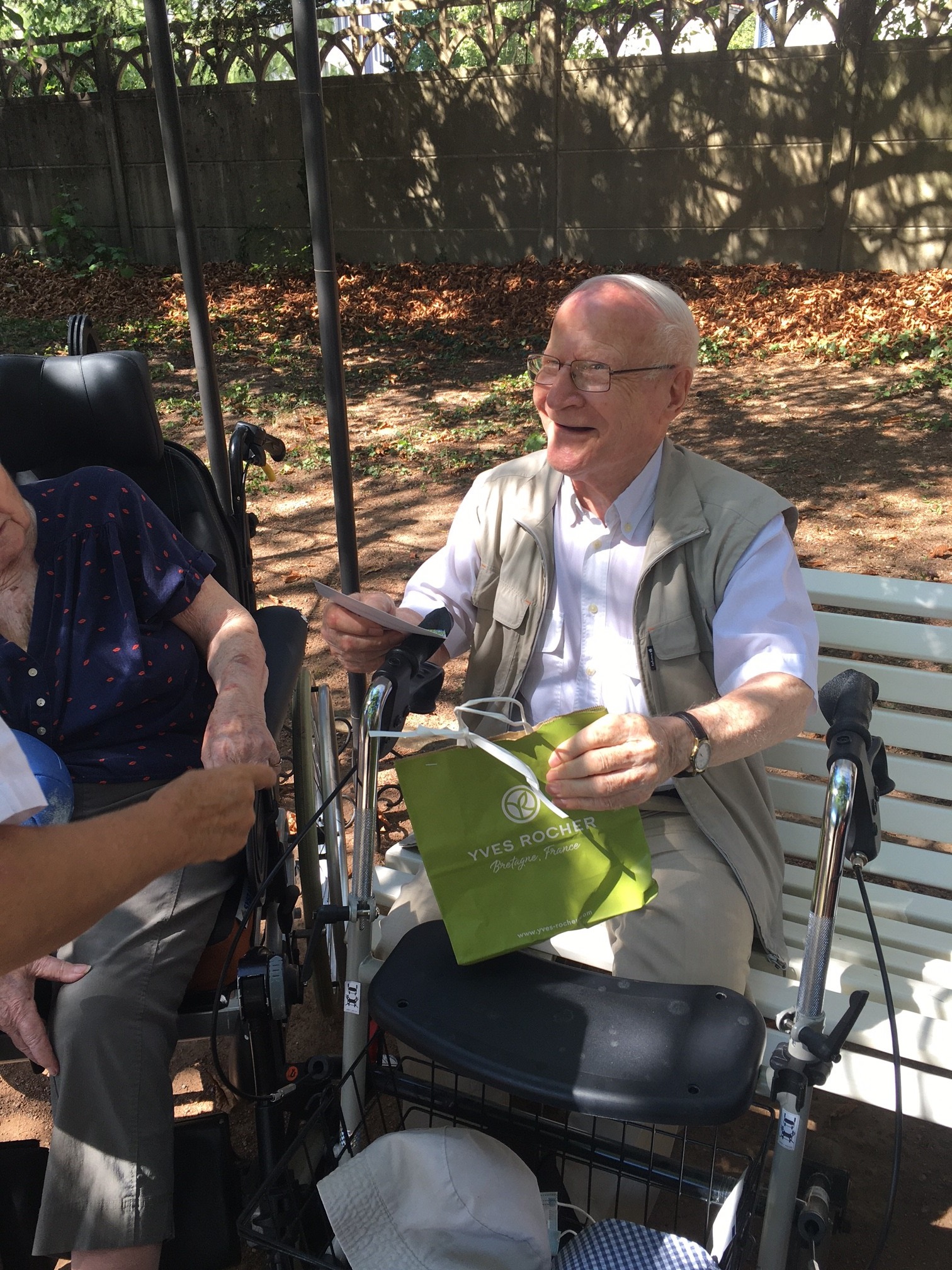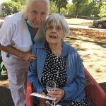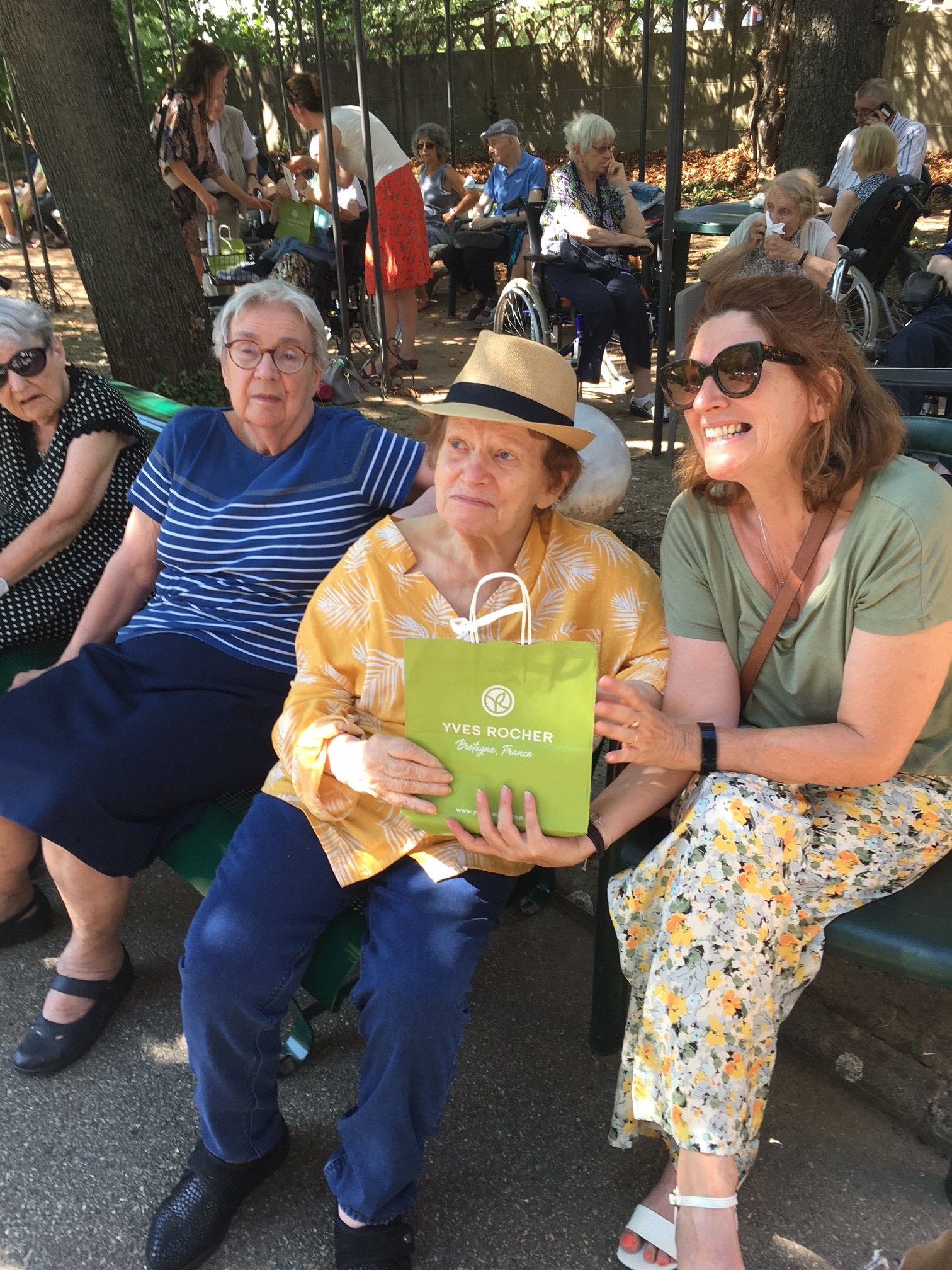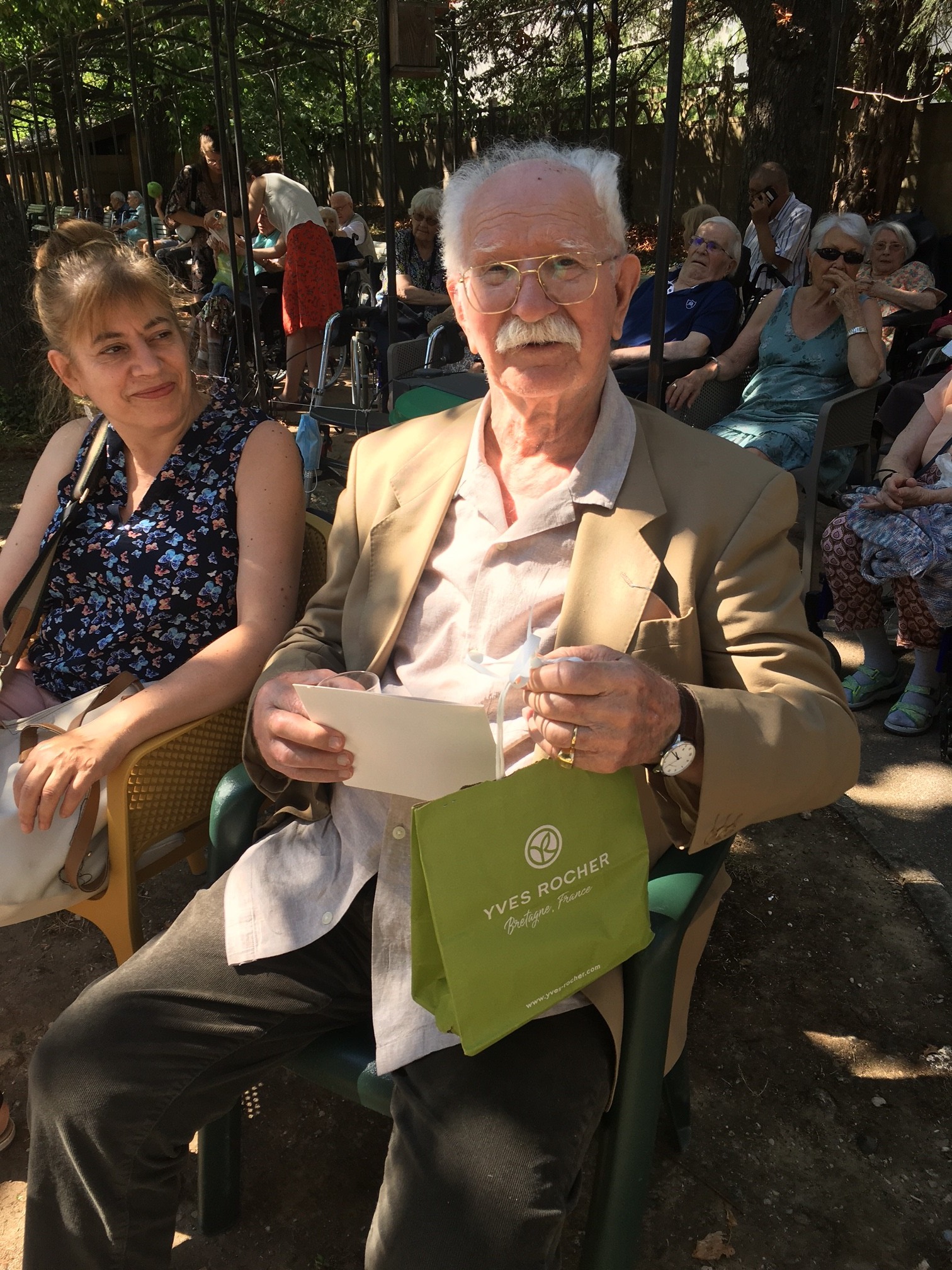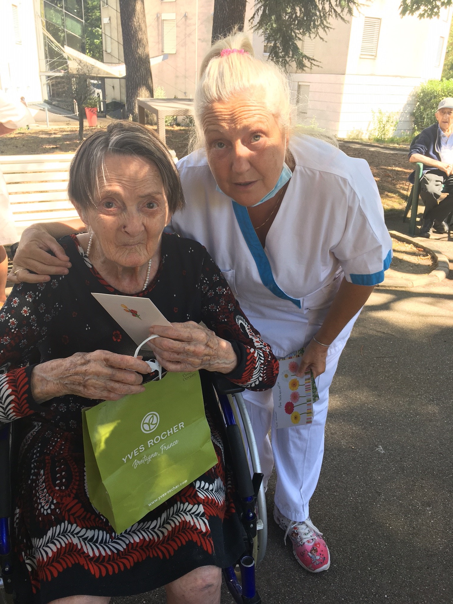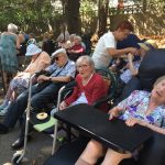 Mercredi 27 juillet, pour fêter les anniversaires du mois de juillet, nous avons profité du parc en compagnie d’un duo de chanteurs Léandre un jeune homme de 15 ans et de Suzanne. Belle performance des chanteurs qui nous ont animé l’après-midi. Beaucoup de cadeaux à distribuer ce jour car de nombreux résidents sont nés en juillet. Cette journée est tombée le jour des 100 ans d’une résidente. Nous en avons profité pour lui porter une attention particulière avec un beau bouquet de fleurs. La cuisine nous a gâté avec de belles mini tartelettes aux fruits. Merci aux familles présentes qui nous ont aidé. Encore un bon moment partagé tous ensemble !