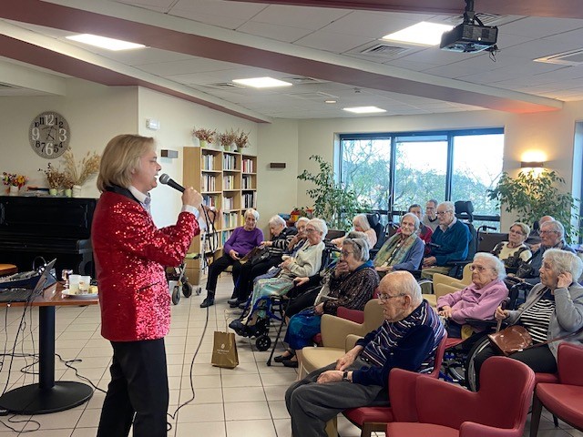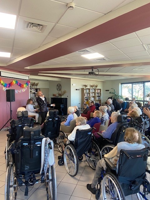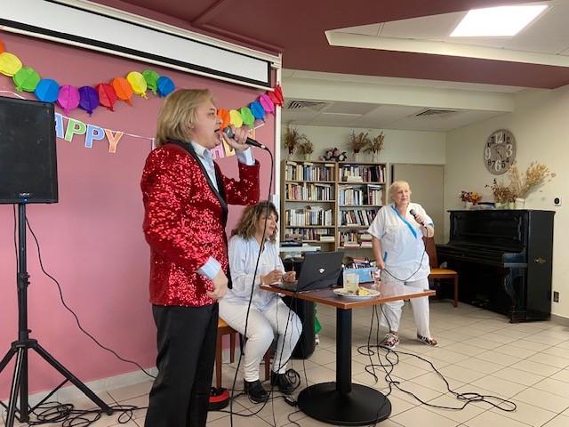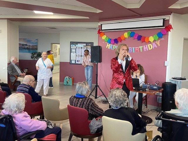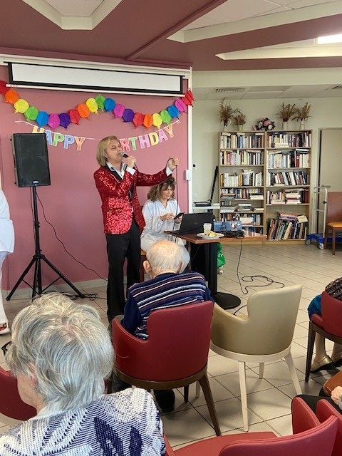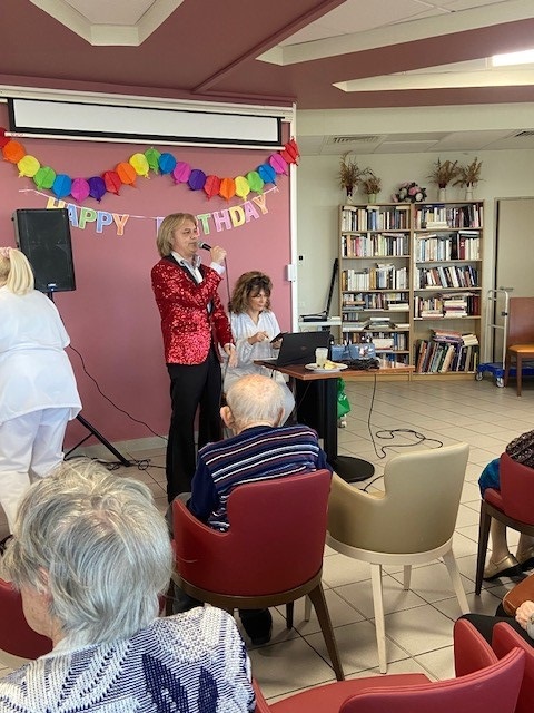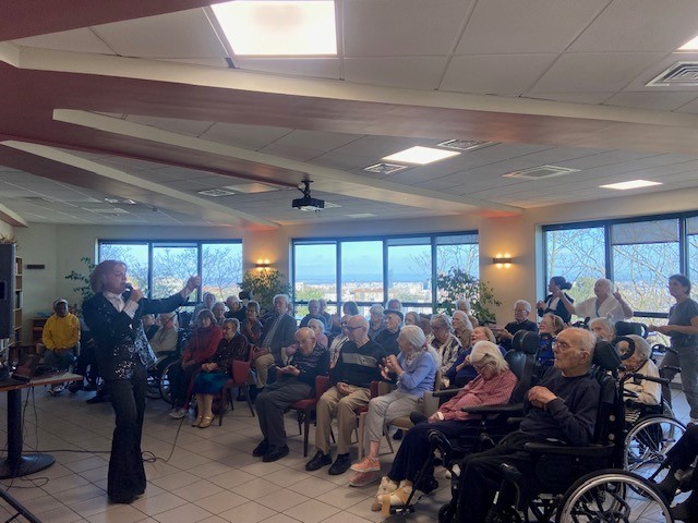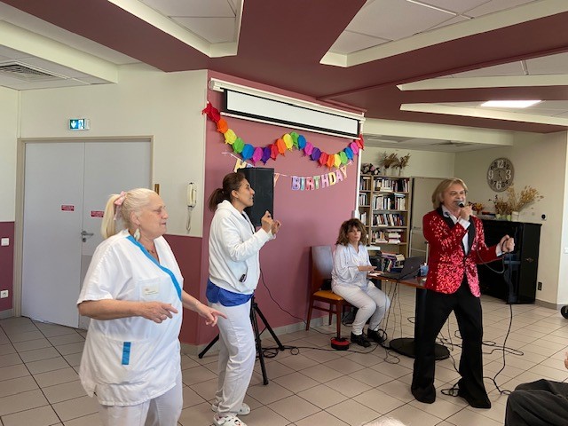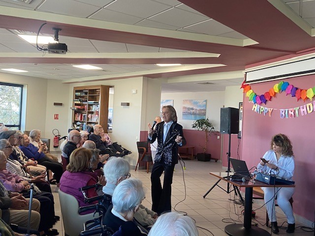 Le mardi 18 mars, nous avons fêté les anniversaires avec la venue d’un sosie de Claude François. Un après-midi très festif.