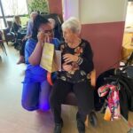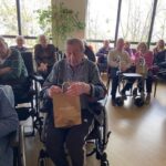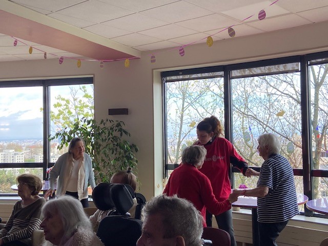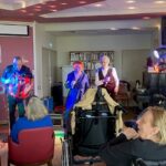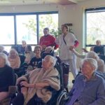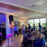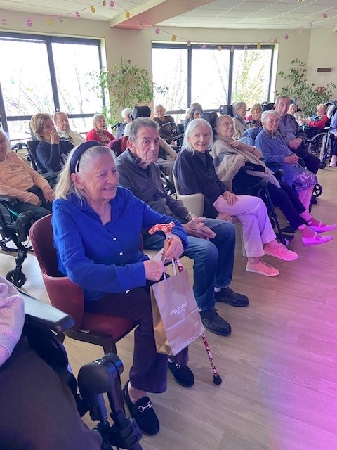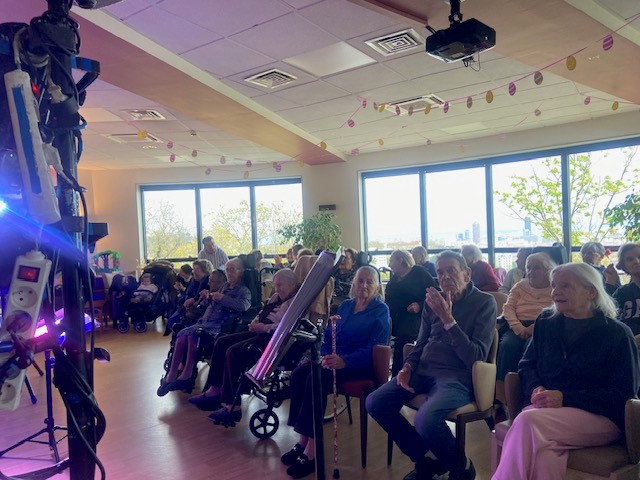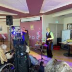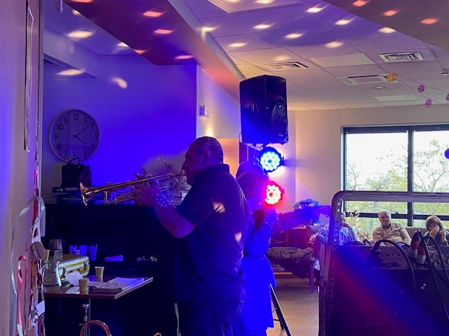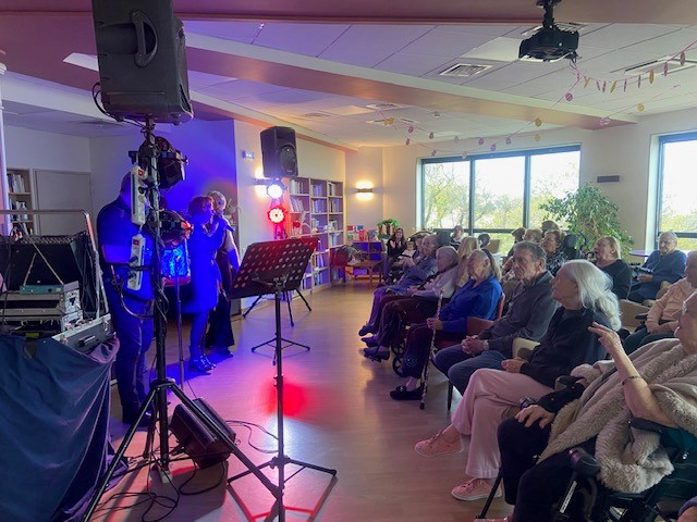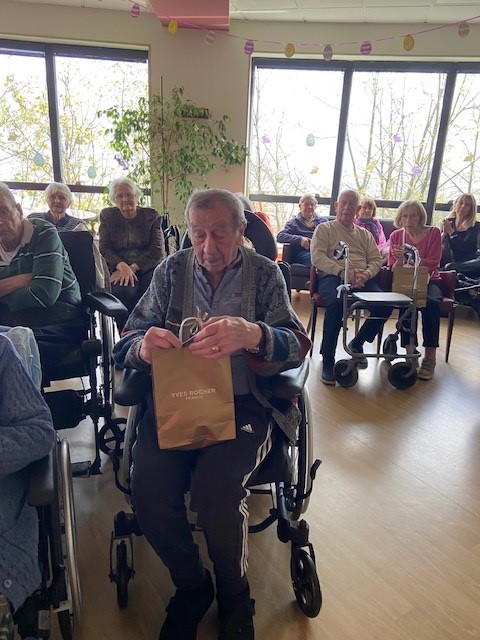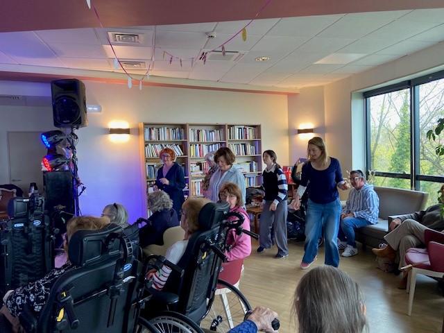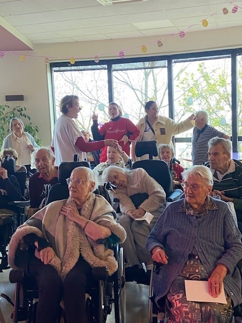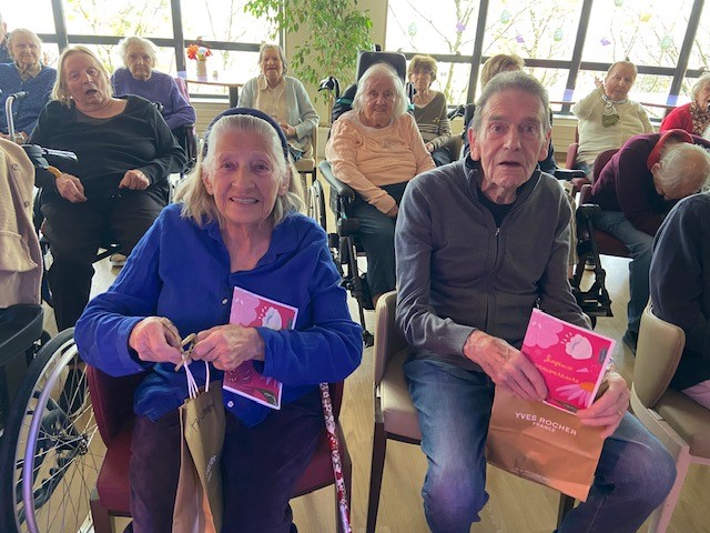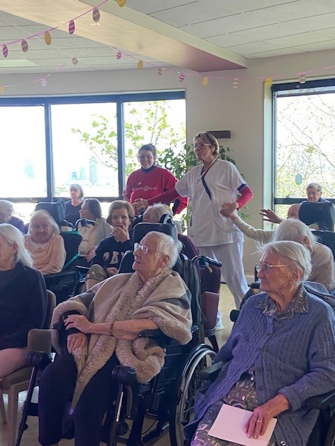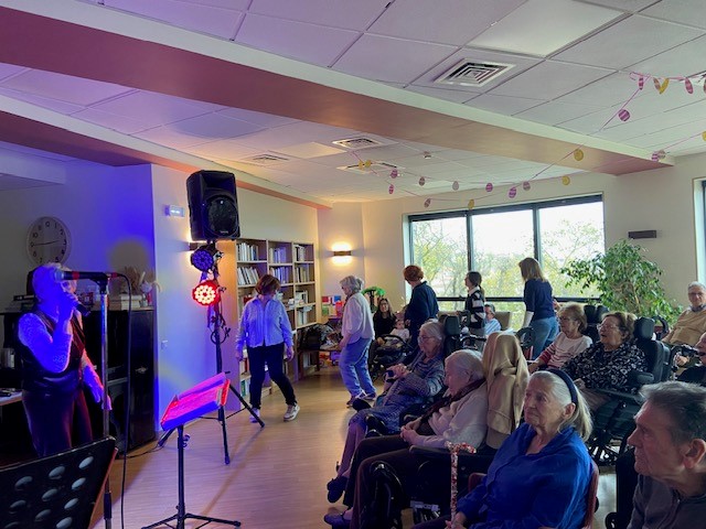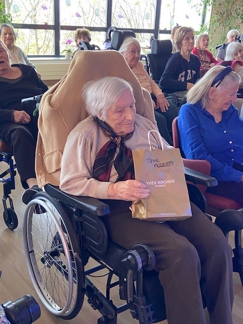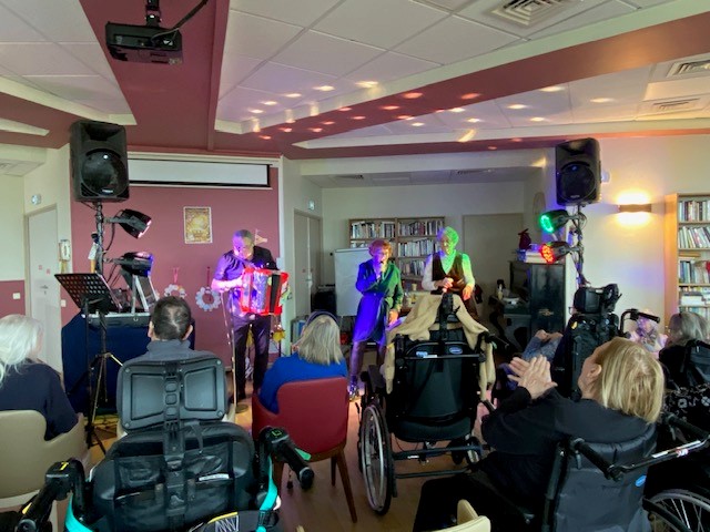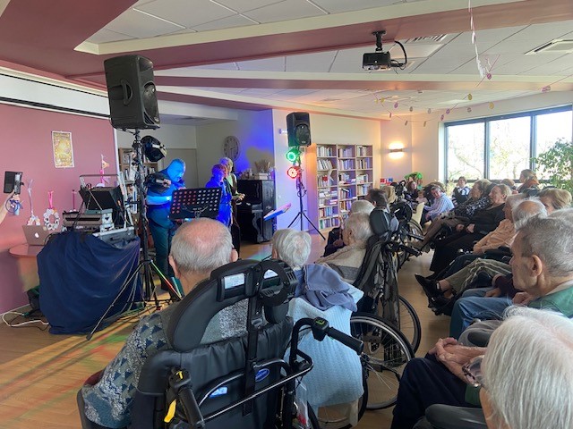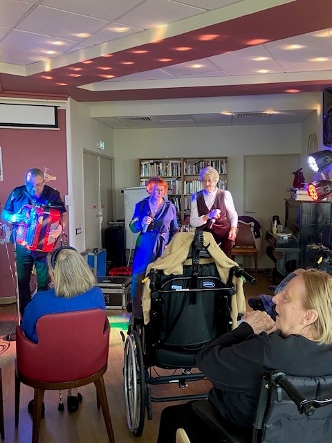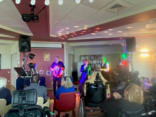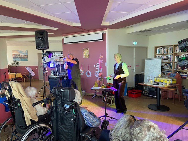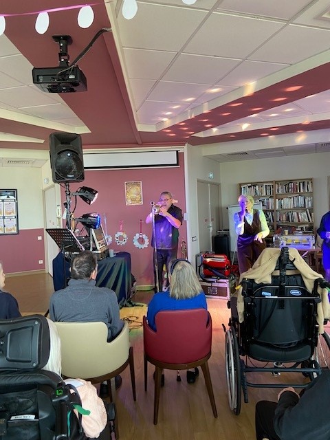 Tous les mois, nous réalisons aux Amandines une fête des anniversaires. Cette fête collective permet de valoriser chacun, tout en créant un moment de partage chaleureux. L’ambiance est joyeuse et conviviale. L’arrivée du chanteur ajoute une touche particulière à cette journée. Dès les premières notes, l’atmosphère se transforme : les regards s’illuminent, les mains battent et les sourires se multiplient. Un voyage musical au cœur des souvenirs !