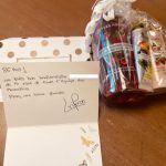 La directrice est venue annoncer au micro les anniversaires du mois et remettre à chacun une carte d’anniversaire et un coffret Yves Rocher de la part de la maison, de toute l’équipe des Amandines.