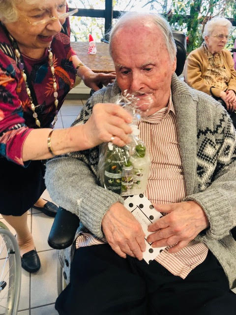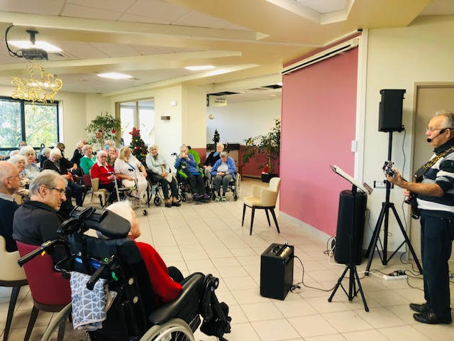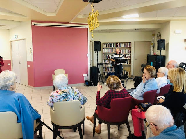 Pour fêter les anniversaires des résidents nés en novembre, le mardi 23 novembre, un bénévole est venu jouer de la guitare et nous faire chanter.