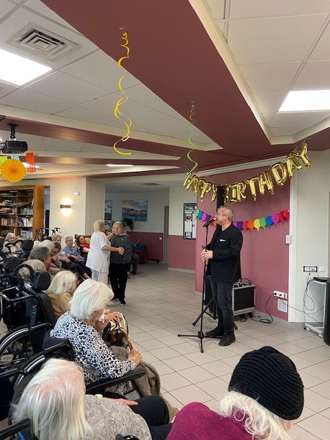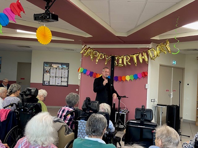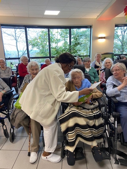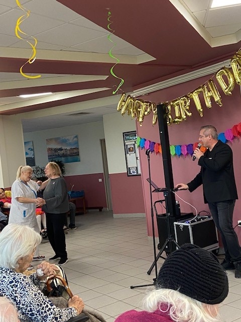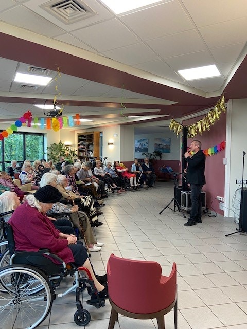 Le mardi 22 octobre, nous avons organisé la fête des anniversaires du mois d’octobre avec un chanteur, de très bons gâteaux préparés par l’équipe de cuisine et la remise d’une carte d’anniversaire et d’un coffret bien-être à tous les résidents nés ce mois-ci. Un moment festif et convivial !