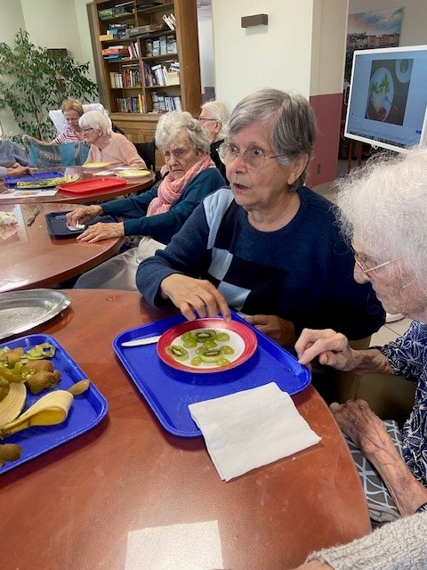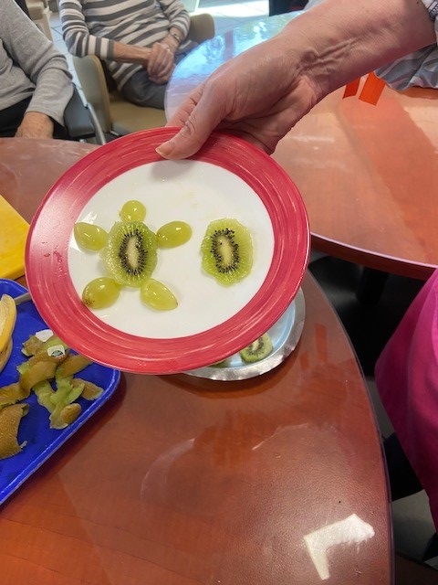 A l’occasion de la semaine du goût du 14 au 20 octobre, nous avons organisé un atelier Food art. Les résidents devaient créer une tortue, un palmier et un escargot en utilisant uniquement des fruits.