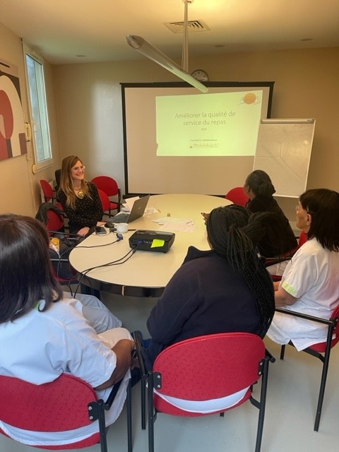 Les 26 et 27 octobre, nous avons eu la présence d’Eva MILESI, Diététicienne extérieure à l’établissement pour réaliser cette formation. Elle a observé les pratiques des professionnels (équipe et contre-équipe) et a ensuite réalisé l’après-midi un retour aux salariés en identifiant les bonnes pratiques et les points de vigilance. Cette formation a été très appréciée par les professionnels et l’équipe d’encadrement.