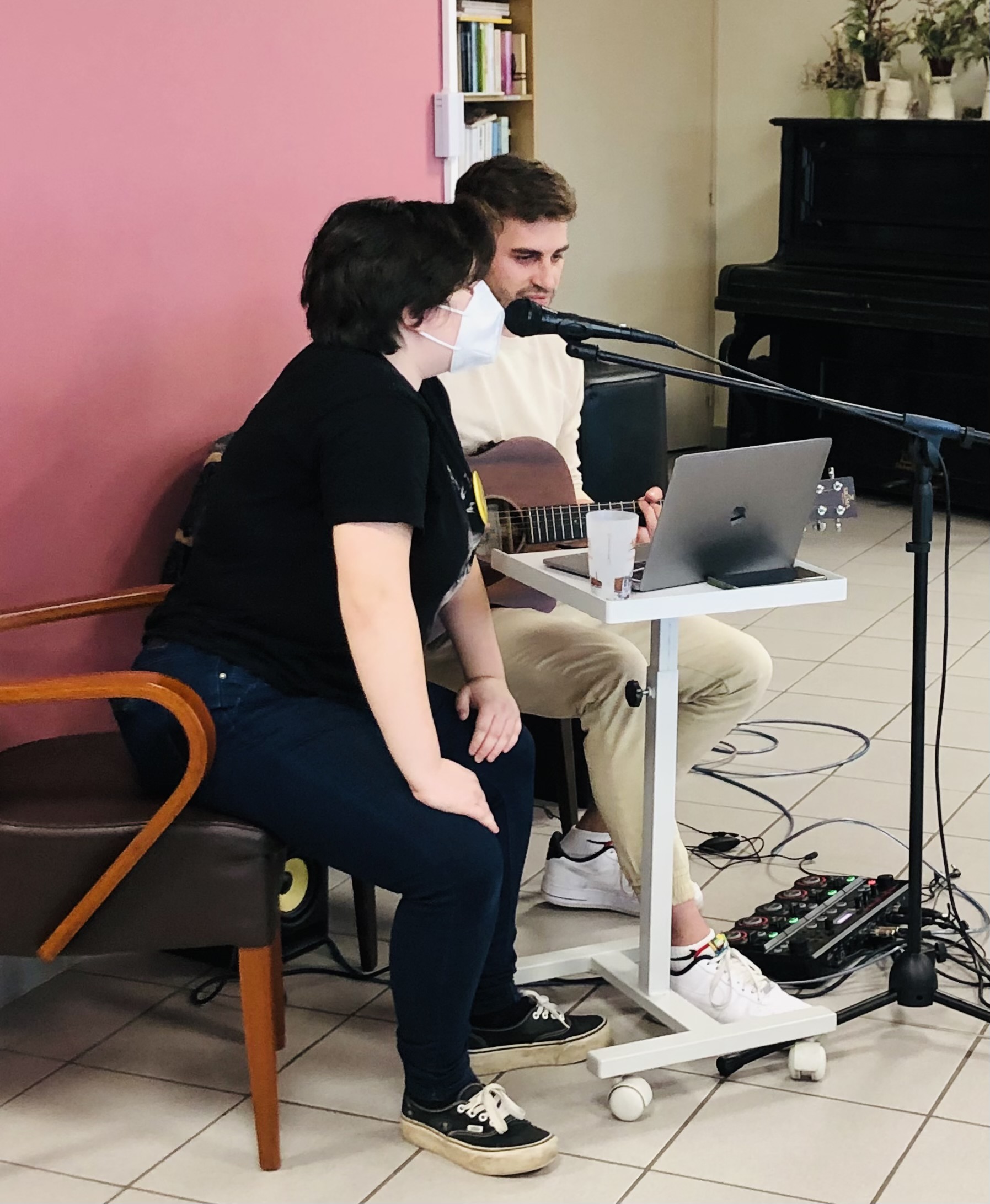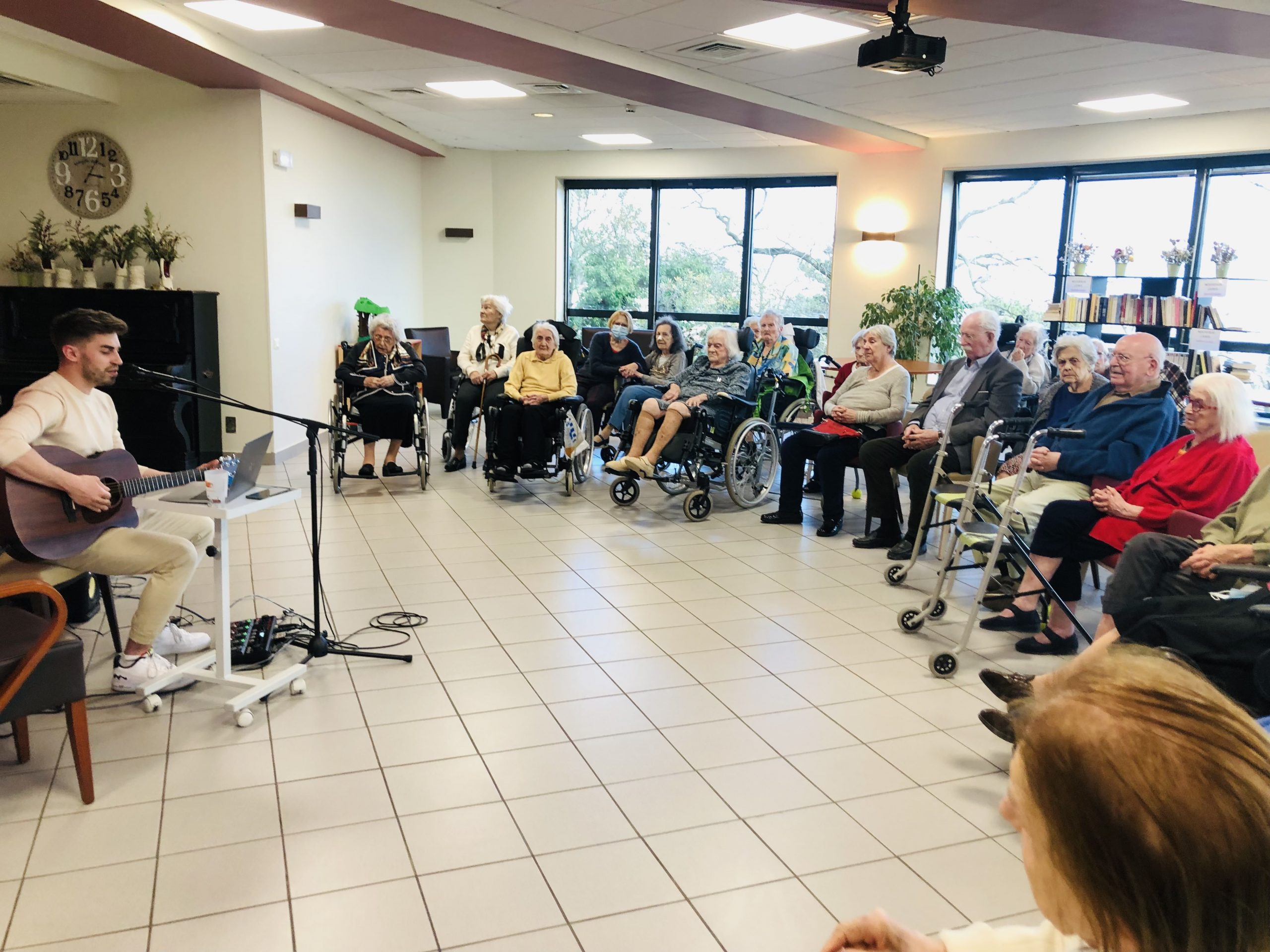 Fabrice PONSODA, un des kinésithérapeutes intervenant aux Amandines nous a mis de l’ambiance en chantant et en jouant de la guitare pour fêter les anniversaires des résidents nés sur le mois de janvier. Merci à lui 🤗