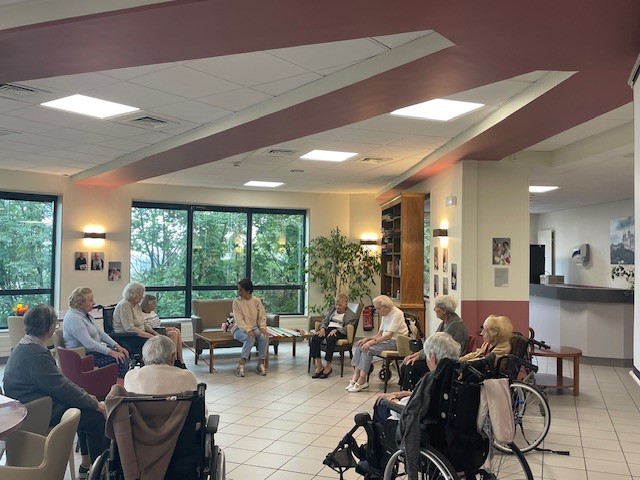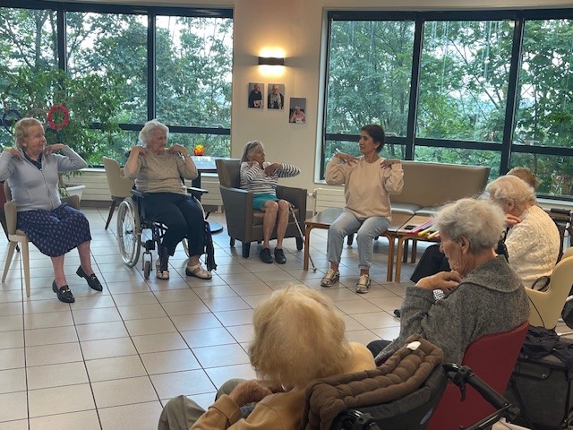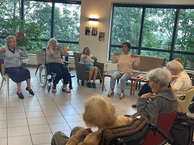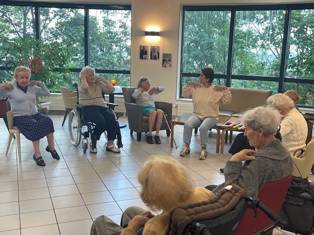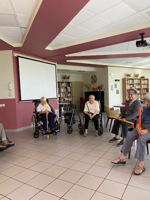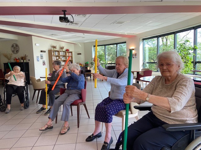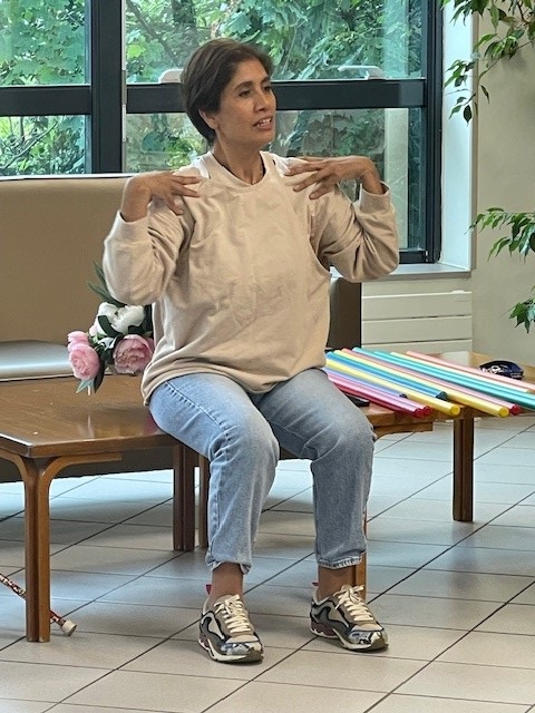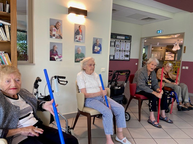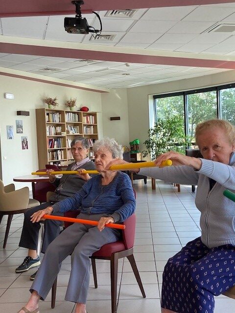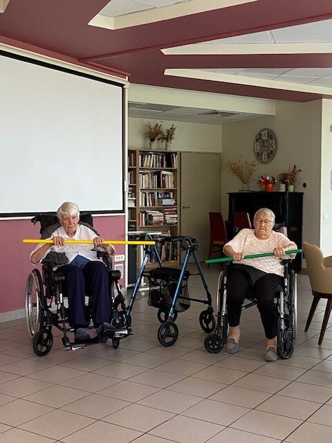 Tous les mardis matin, c’est atelier de gymnastique douce avec Habiba. Un matin sportif !