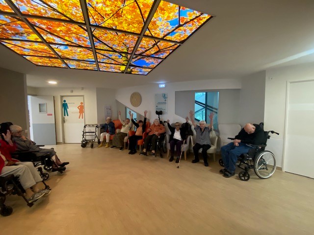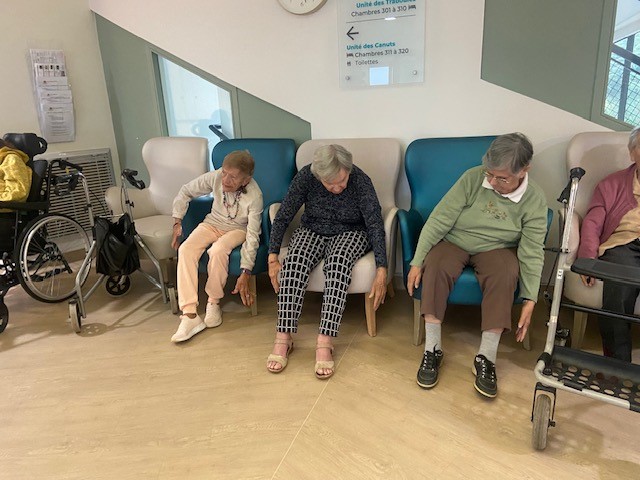 Tous les mardis matin, nos salons se transforment en véritable bulle de détente. La gymnastique douce est une activité à la fois conviviale et bénéfique pour le corps et l’esprit. Ces ateliers ont pour objectif de favoriser la mobilité, la coordination et la respiration, tout en respectant le rythme de chacun. Assis ou debout, les participants enchainent des mouvements simples :  étirements, petits exercices d’équilibre, assouplissements des bras et des jambes. L’accent est mis sur le plaisir du mouvement et la bienveillance, loin de toute performance. Au-delà des bienfaits physiques, ces séances sont aussi un moment de partage et de lien social.