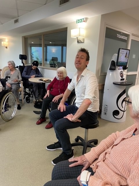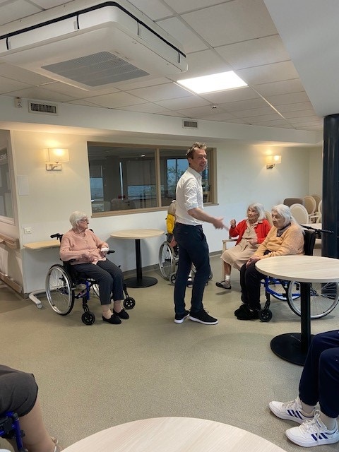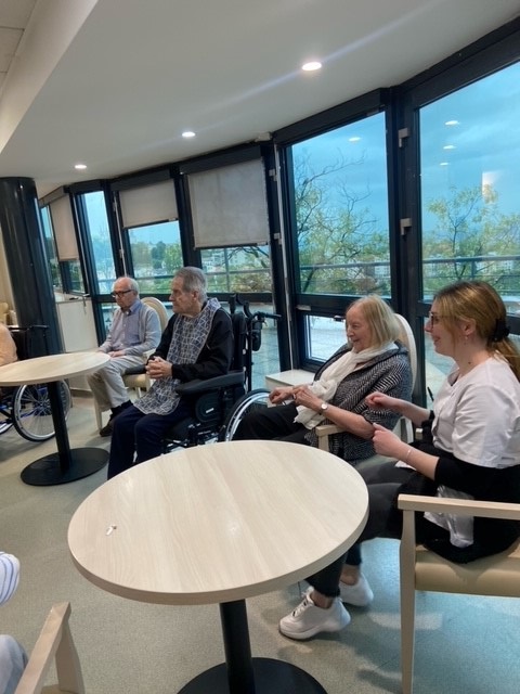 M CHAPOTTON, Kinésithérapeute et Mme BLACHON, Ergothérapeutes réalisent dorénavant tous les lundis en fin de matinée un atelier de gymnastique douce avec les résidents de l’UPDP.