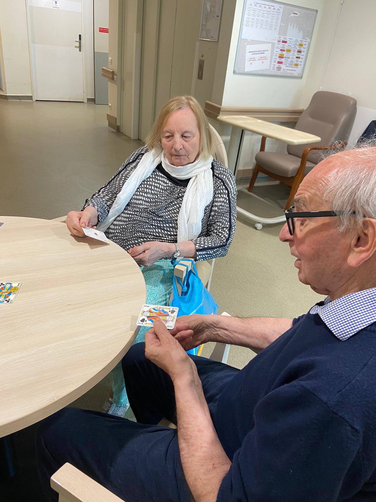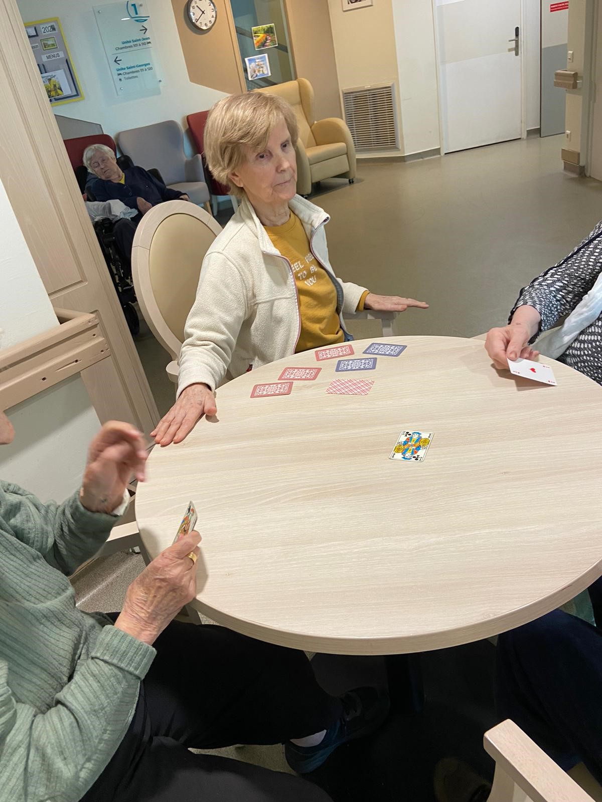 Tous les après-midis sur l’UPDP, les soignants organisent des activités, des temps thérapeutiques. Les jeux de cartes sont appréciés.