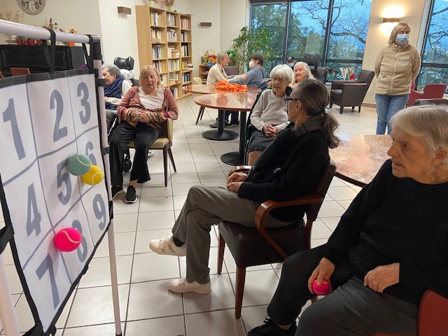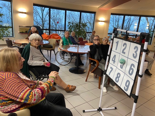 Des jeux de lancer sont organisés avec les résidents de l’UPDP.